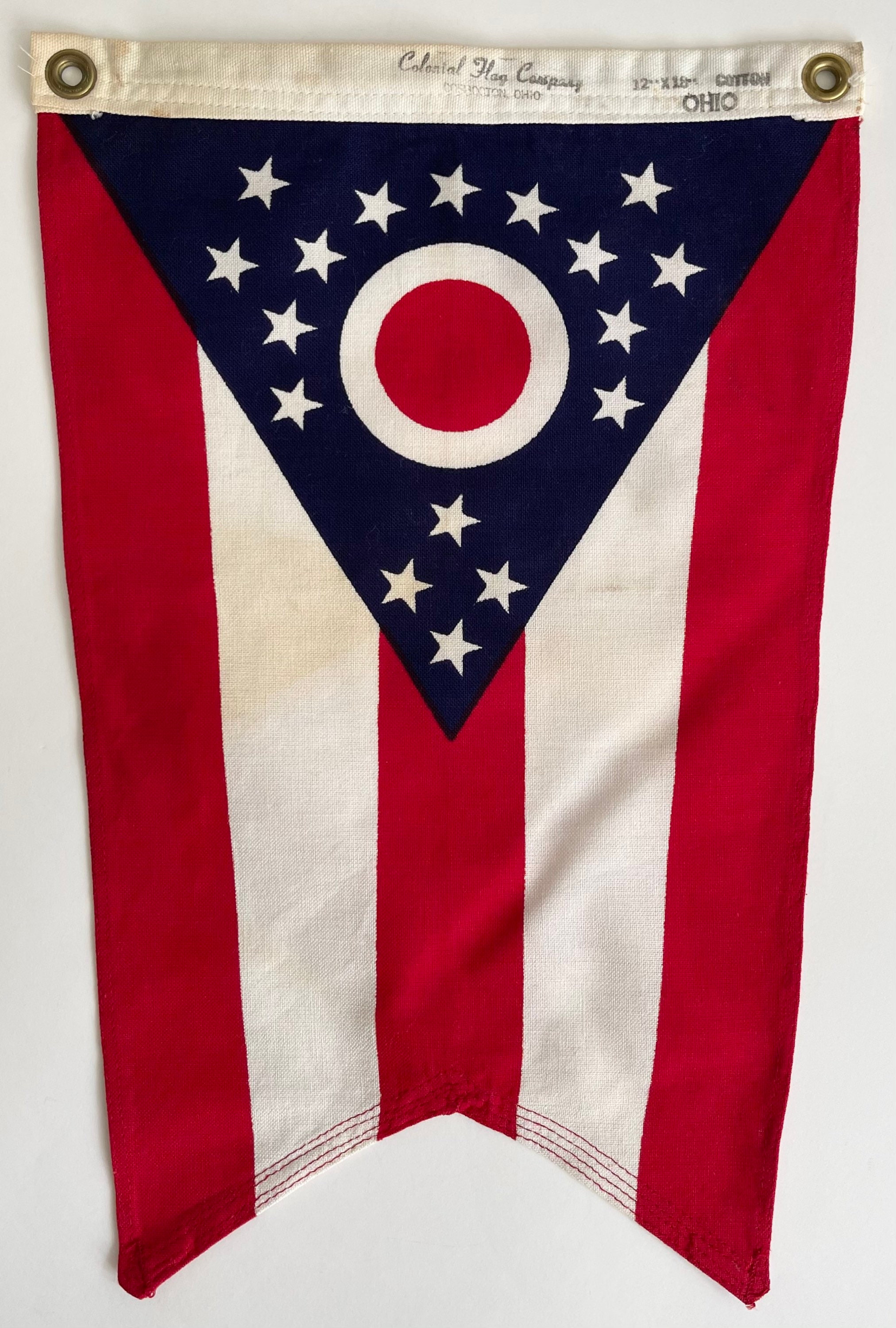 Small vintage cotton Ohio Flag made by the Colonial Flag Company in Coshocton, OH
