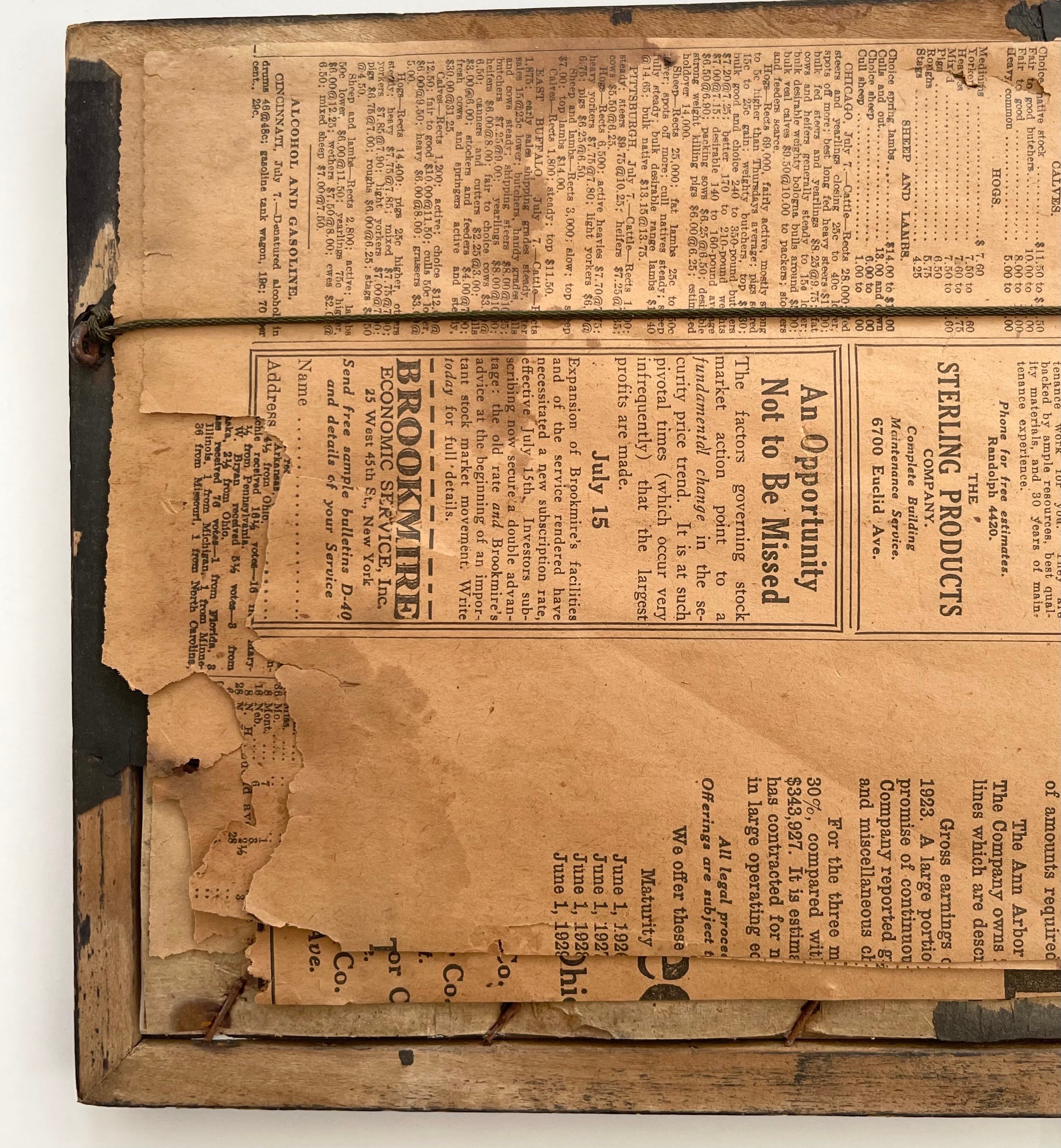Framed in a very worn black wood frame with newspaper backing