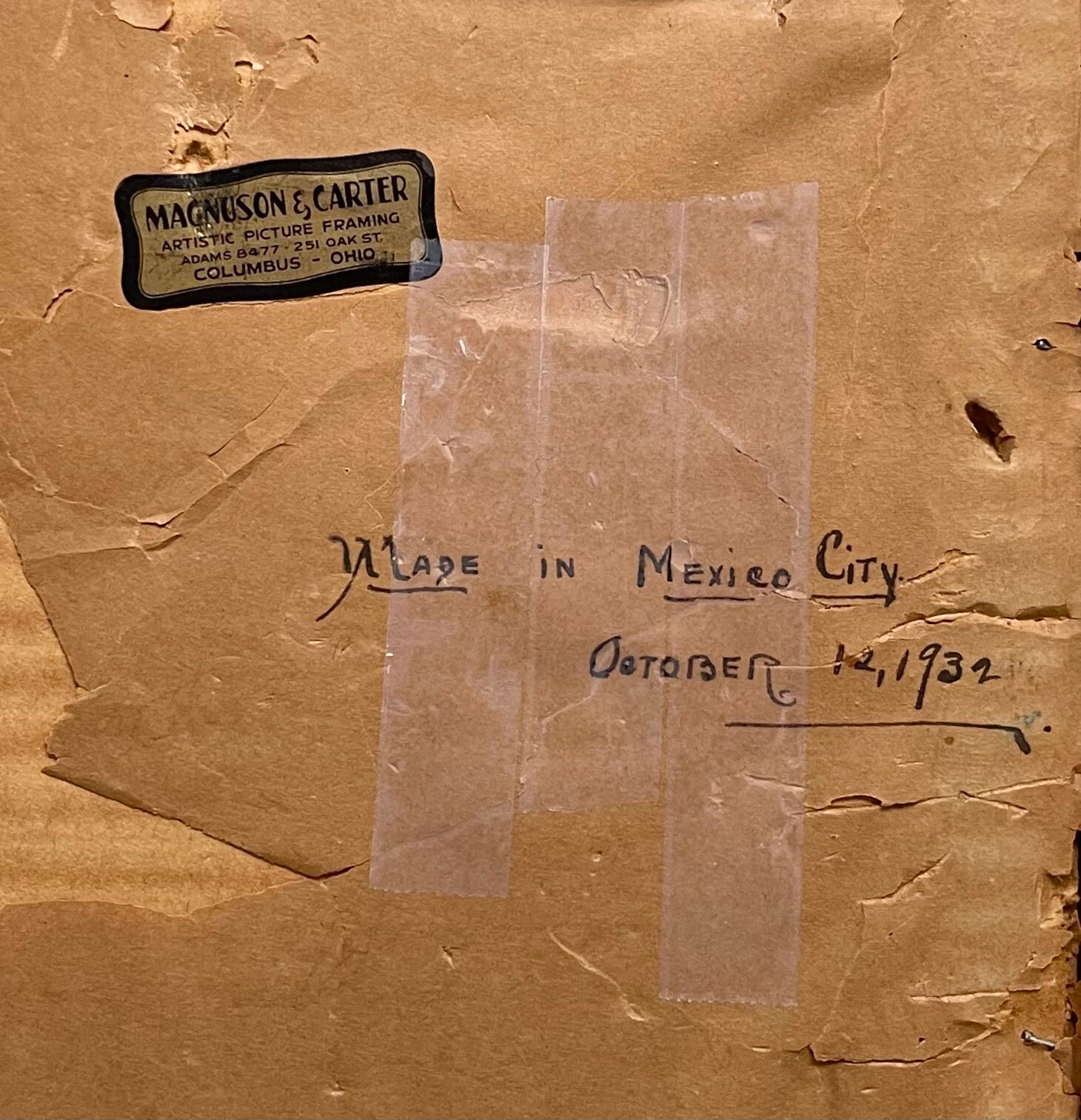 Signed "Made in Mexico / October 12, 1932" on back and professionally framed by Magnuson & Carter Artistic Picture Framing