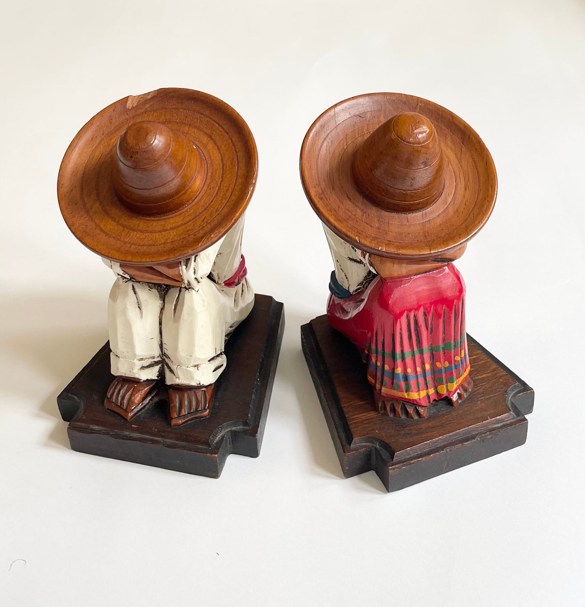 Good vintage condition with minor wear. One of the bookends has a chip in the wood on the sombrero. See last two photos for close ups.