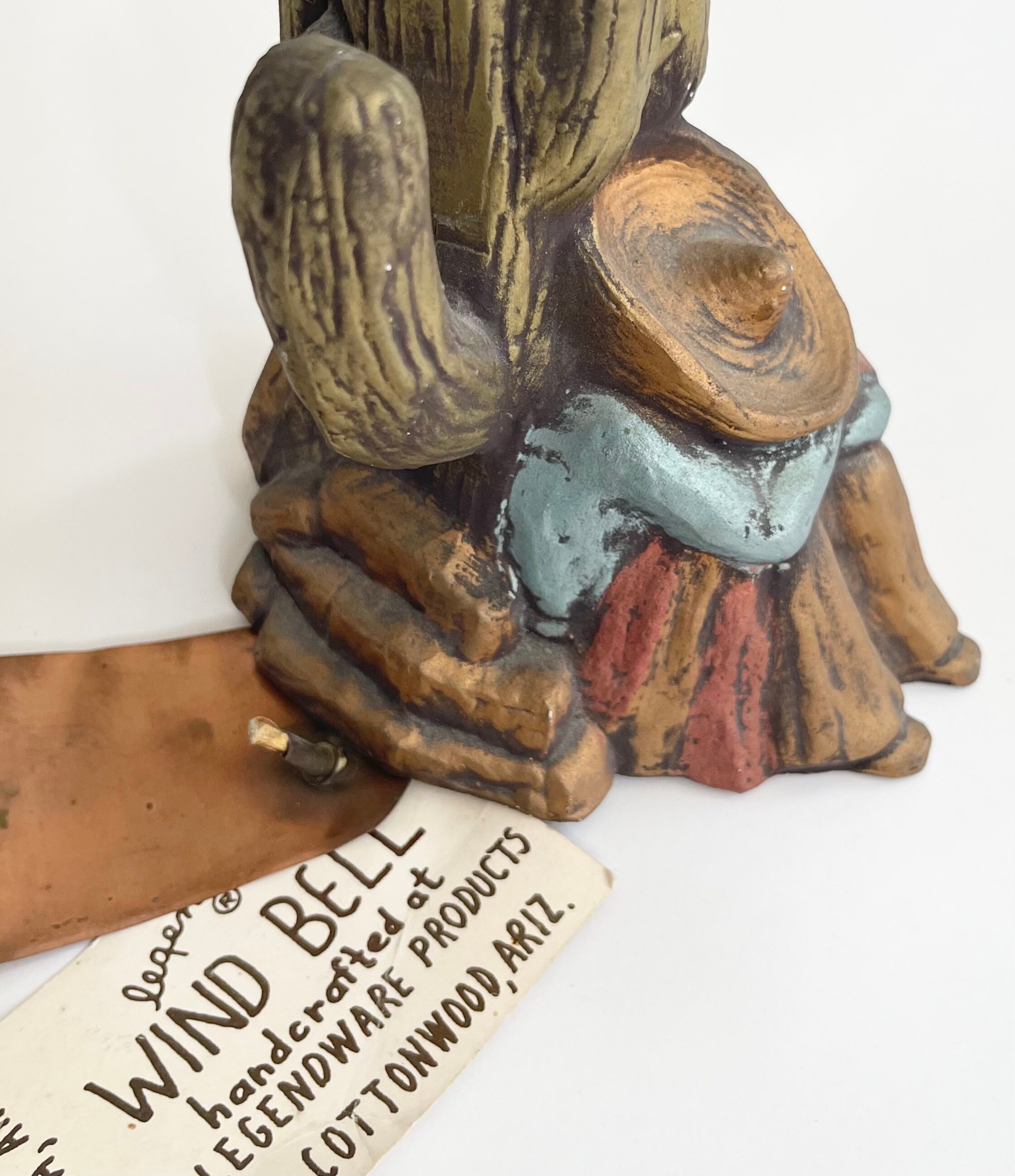 Western Handmade Wind Chime Wind Bell Handcrafted Legendware Sedona AZ Original Tag Copper Chime Saguaro Cactus Resting Man Sombrero Ceramic
