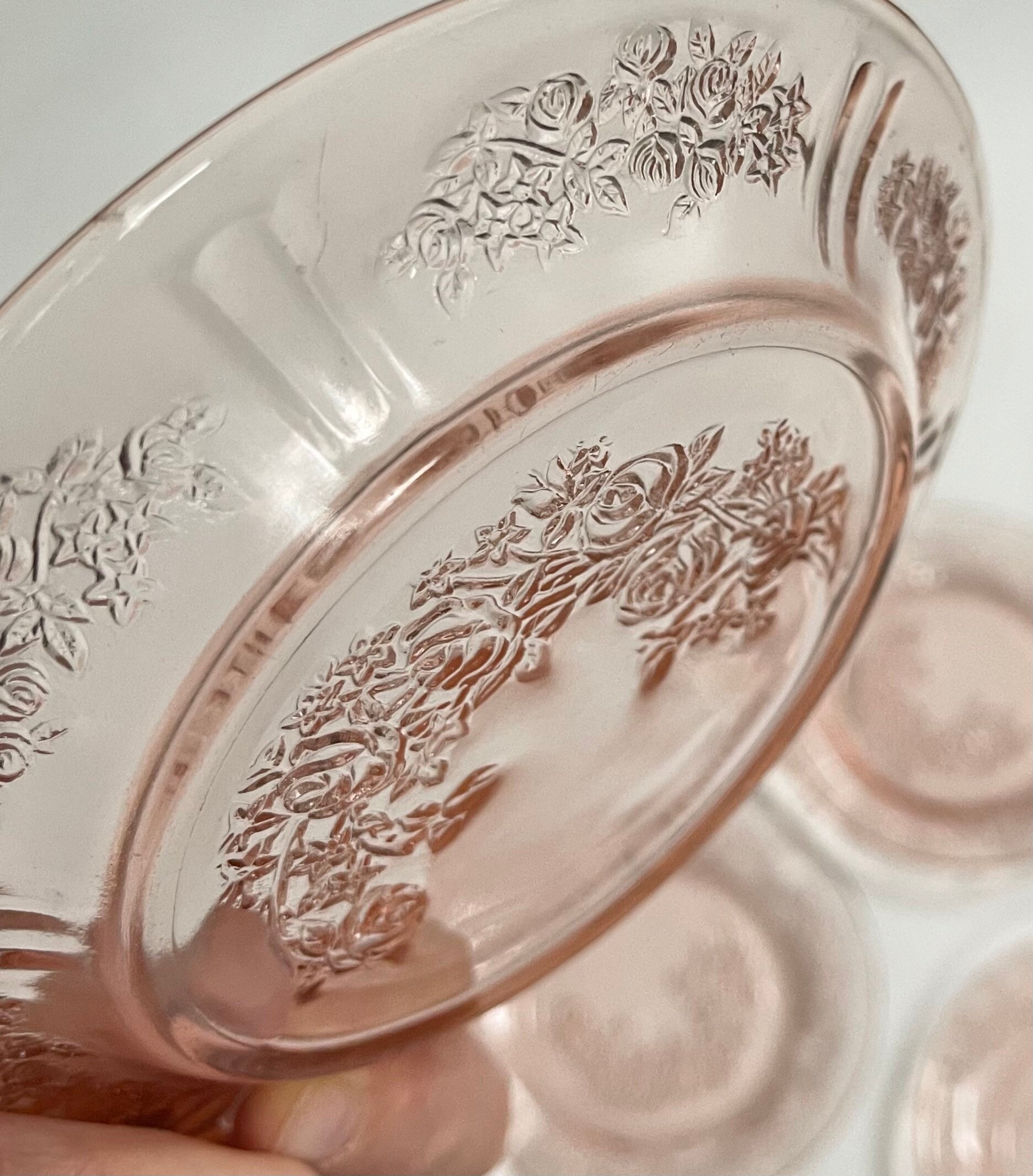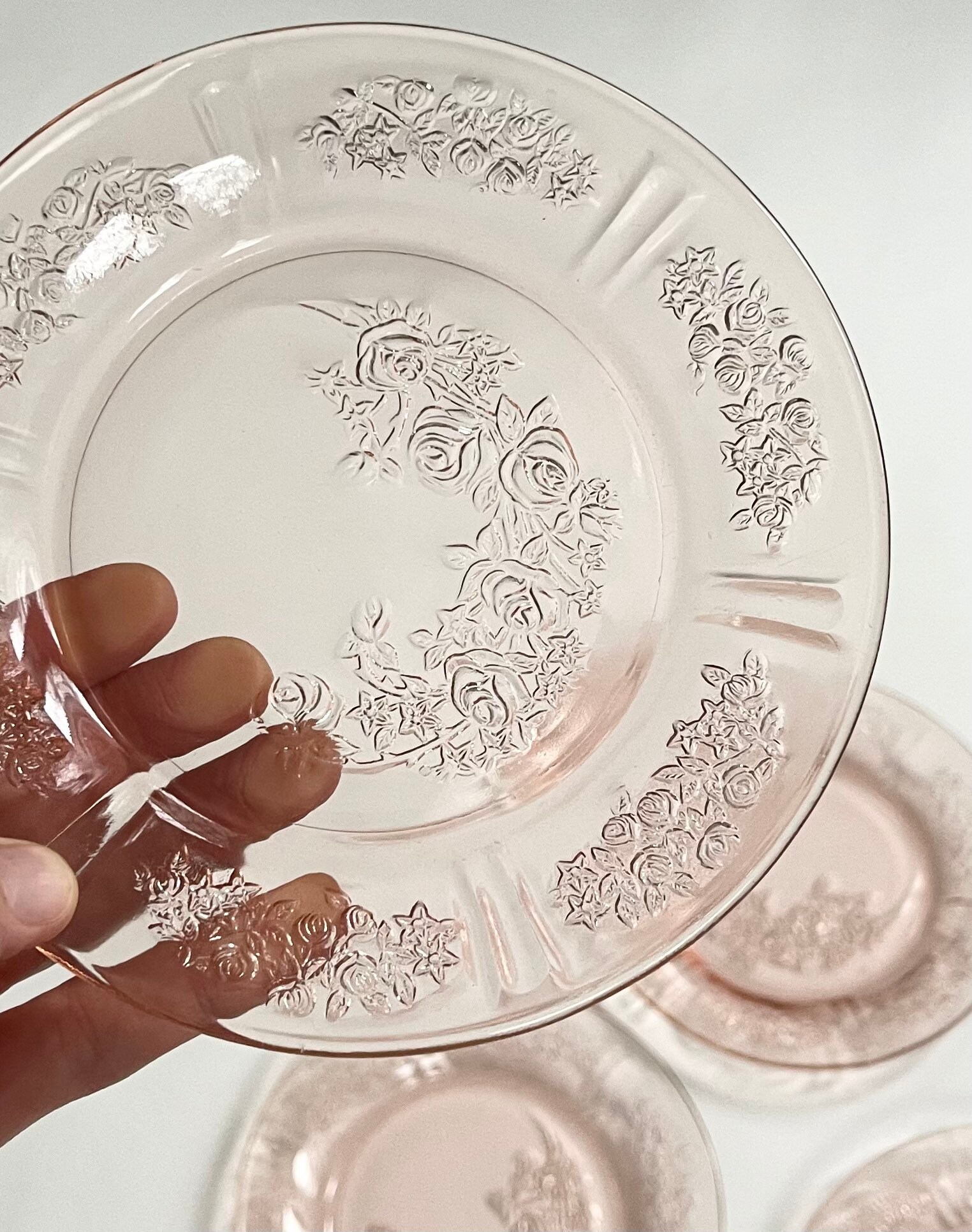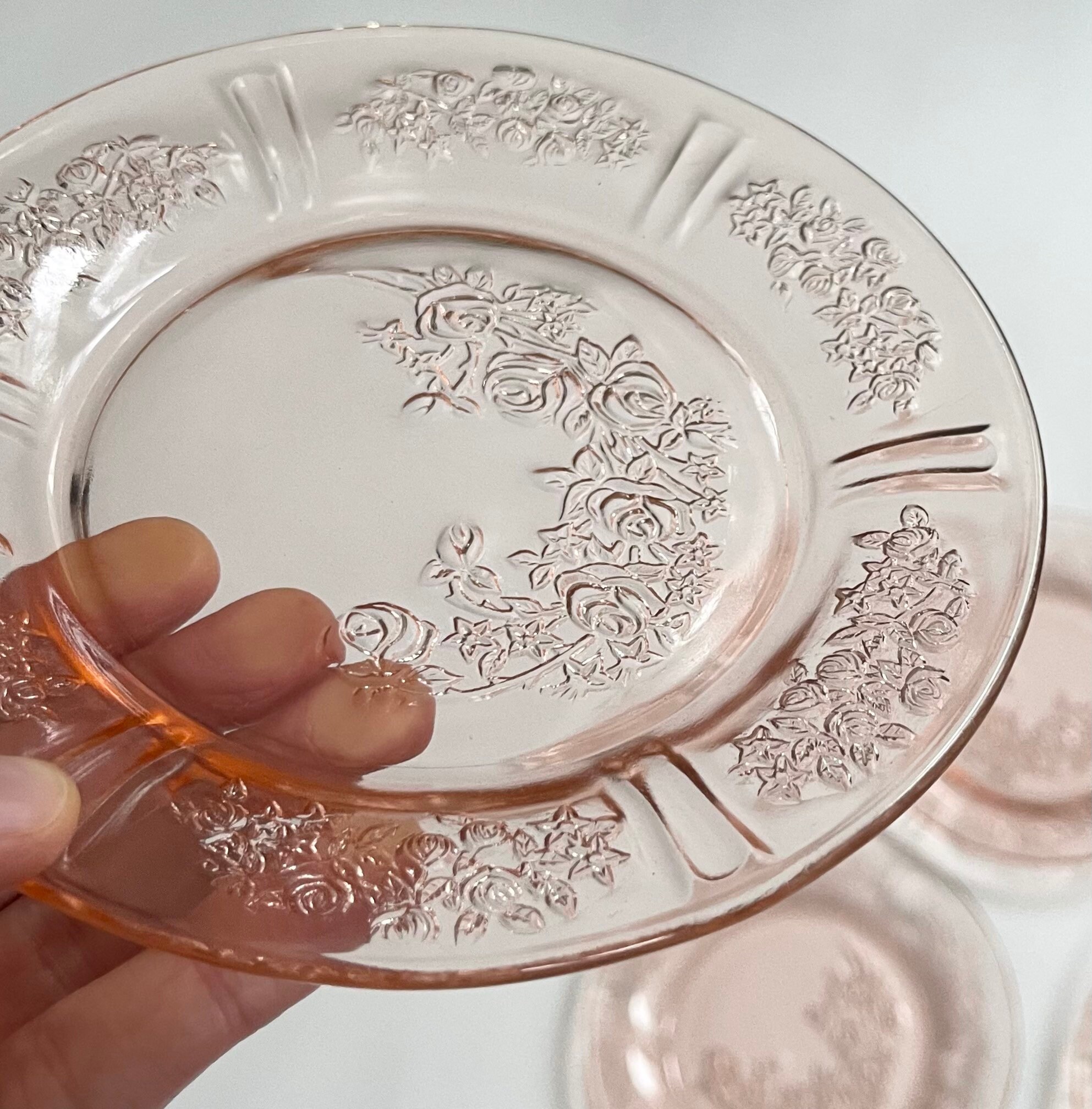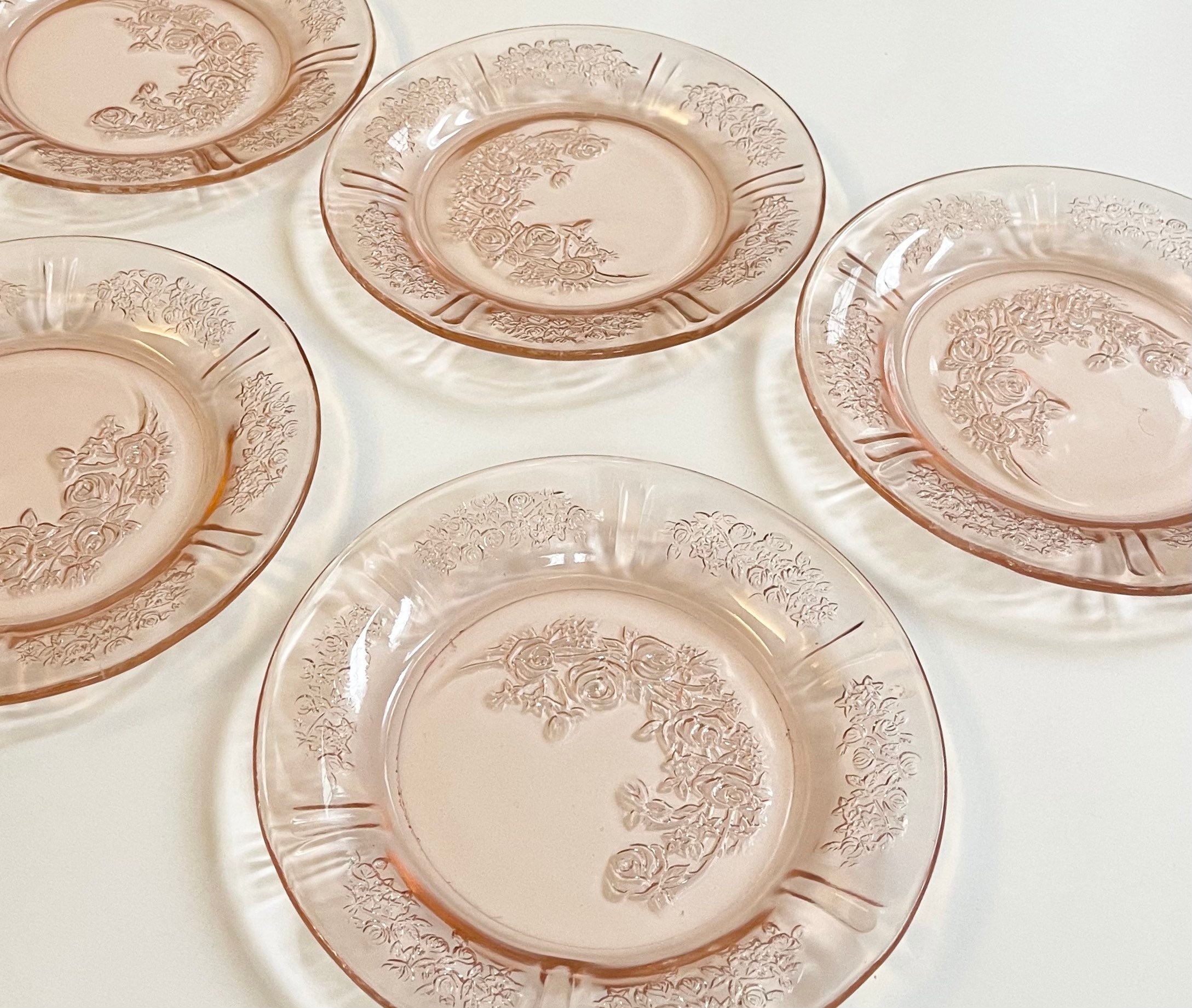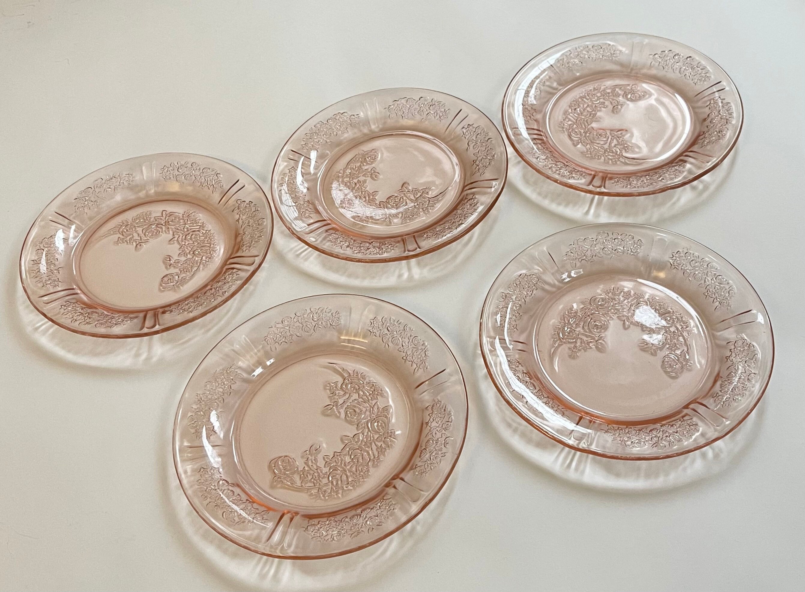 Pink Depression Glass Plate Set of 5 Plates Vintage Pressed Glass Depressionware Vintage Pale Pink Dessert Salad Size Valentines Decor
