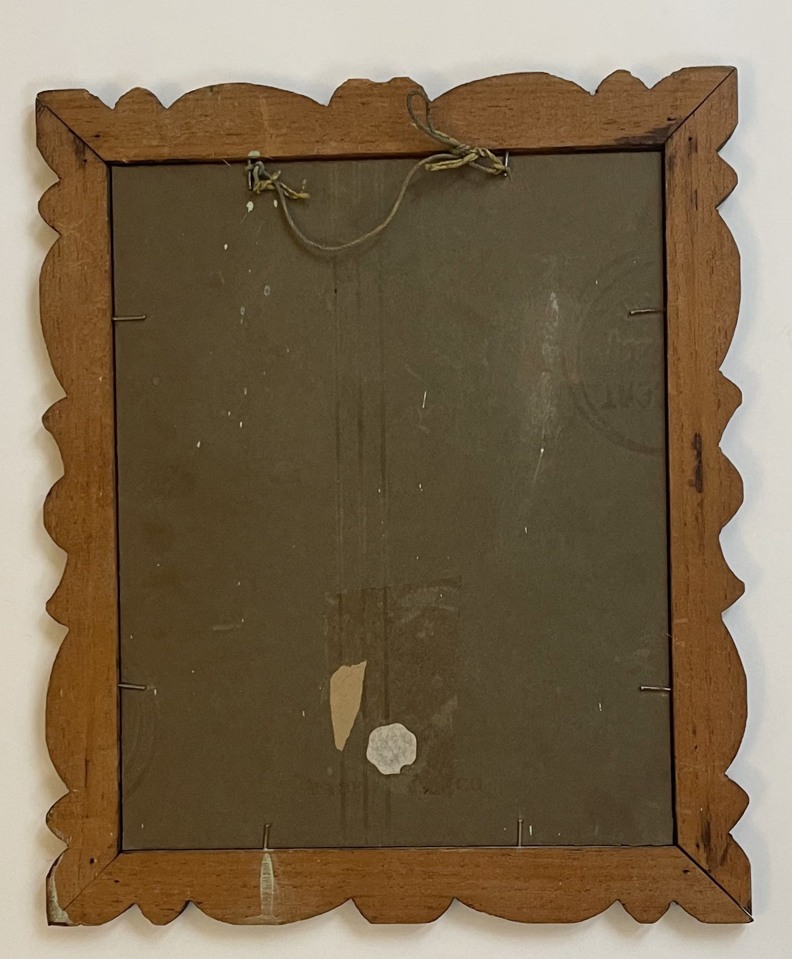 Good vintage condition. Please note the string "hook" is quite rickety so you might want to replace with a wire picture hanger.