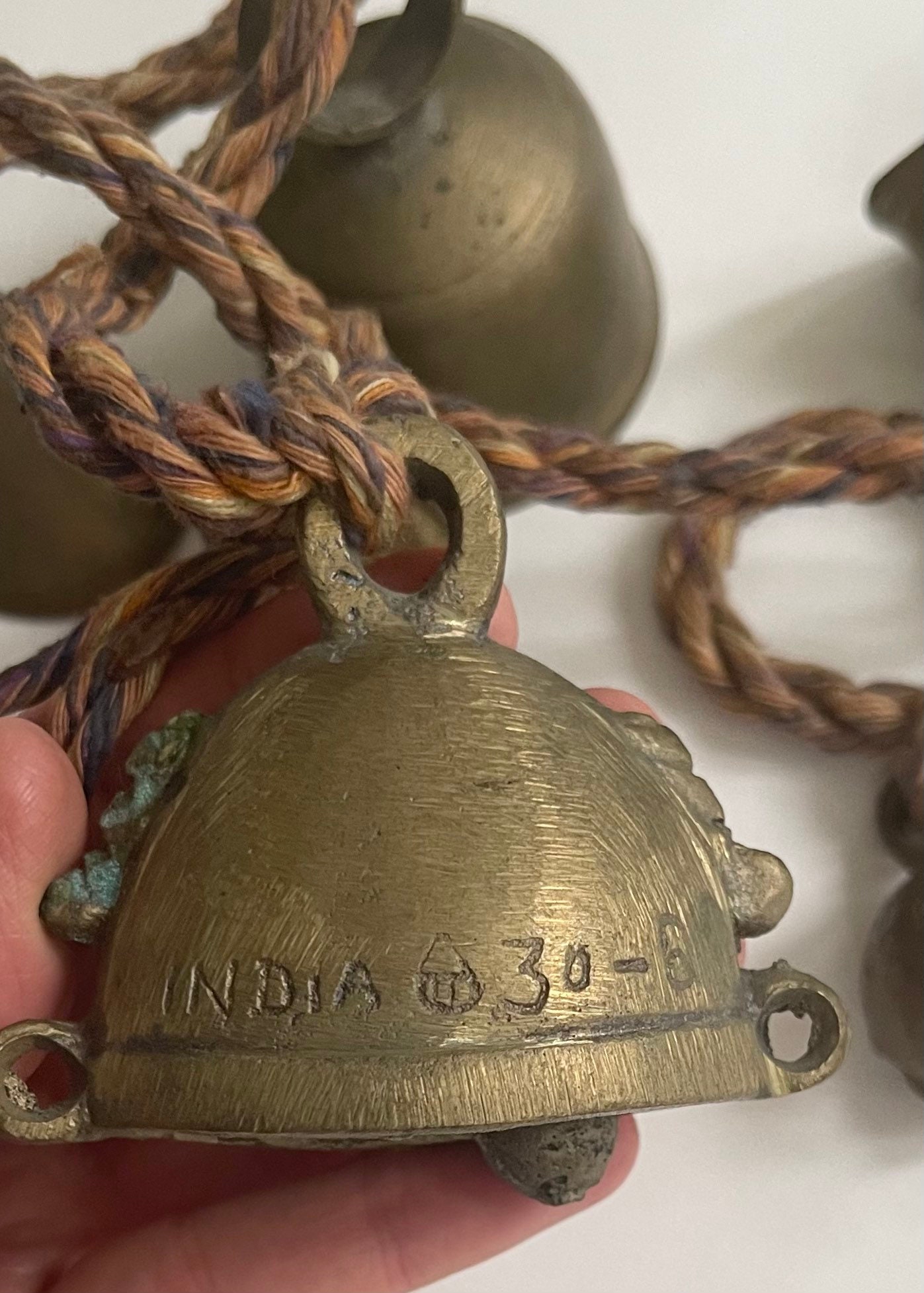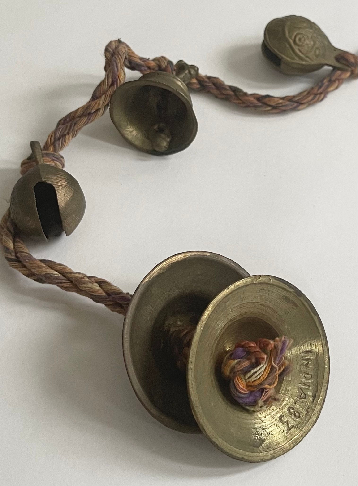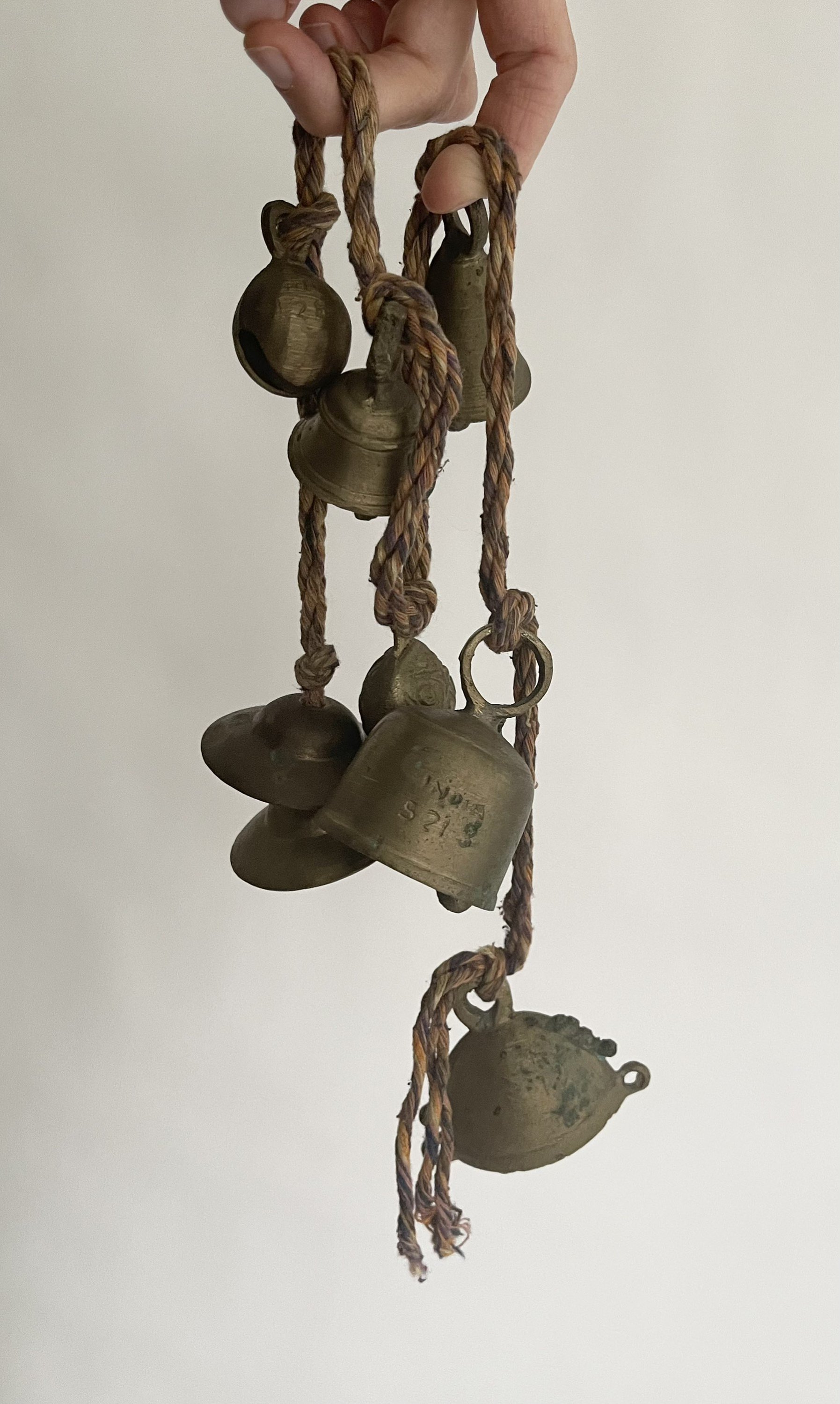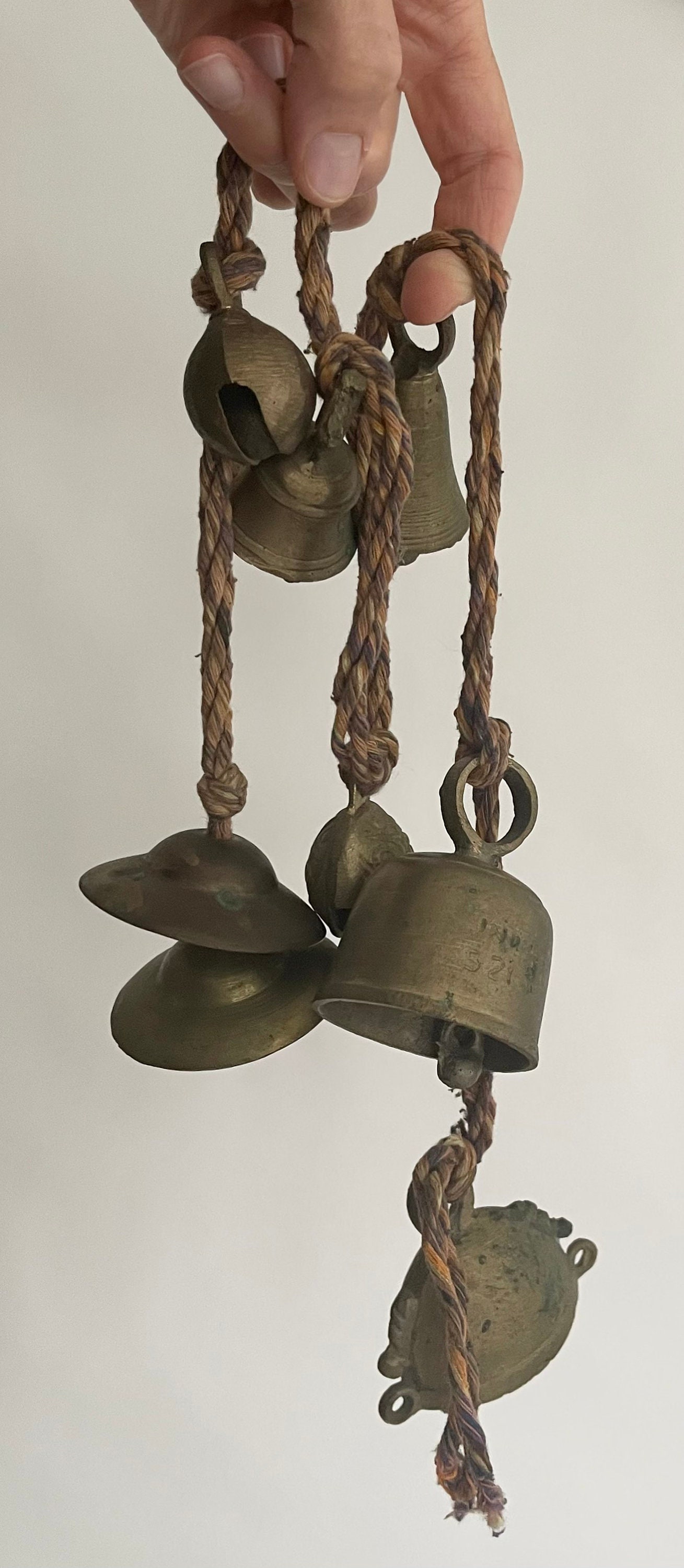Vintage strand of 7 solid Indian brass bells