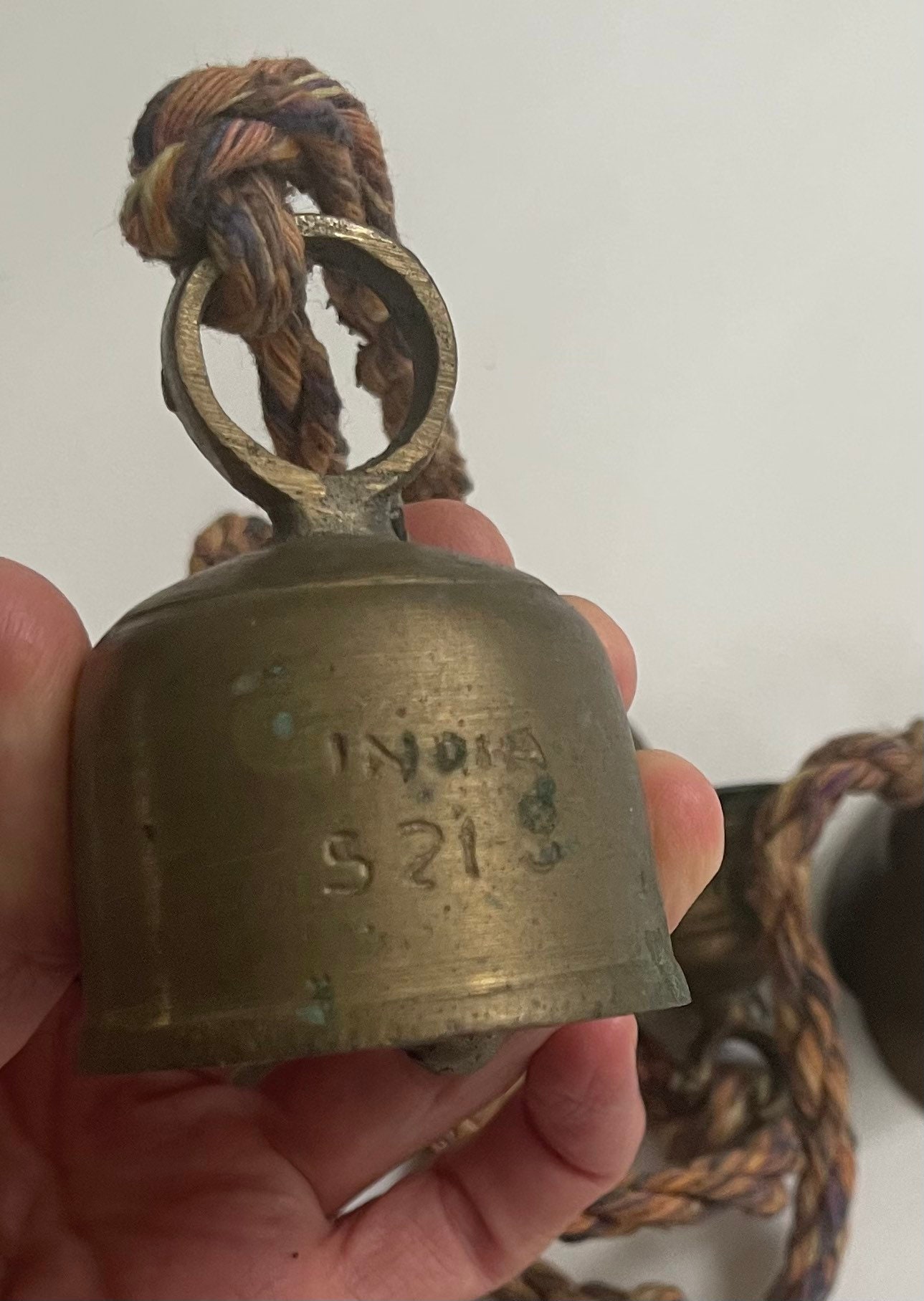 Good vintage condition with aged patina. Rope holding the bells together has a very worn look.