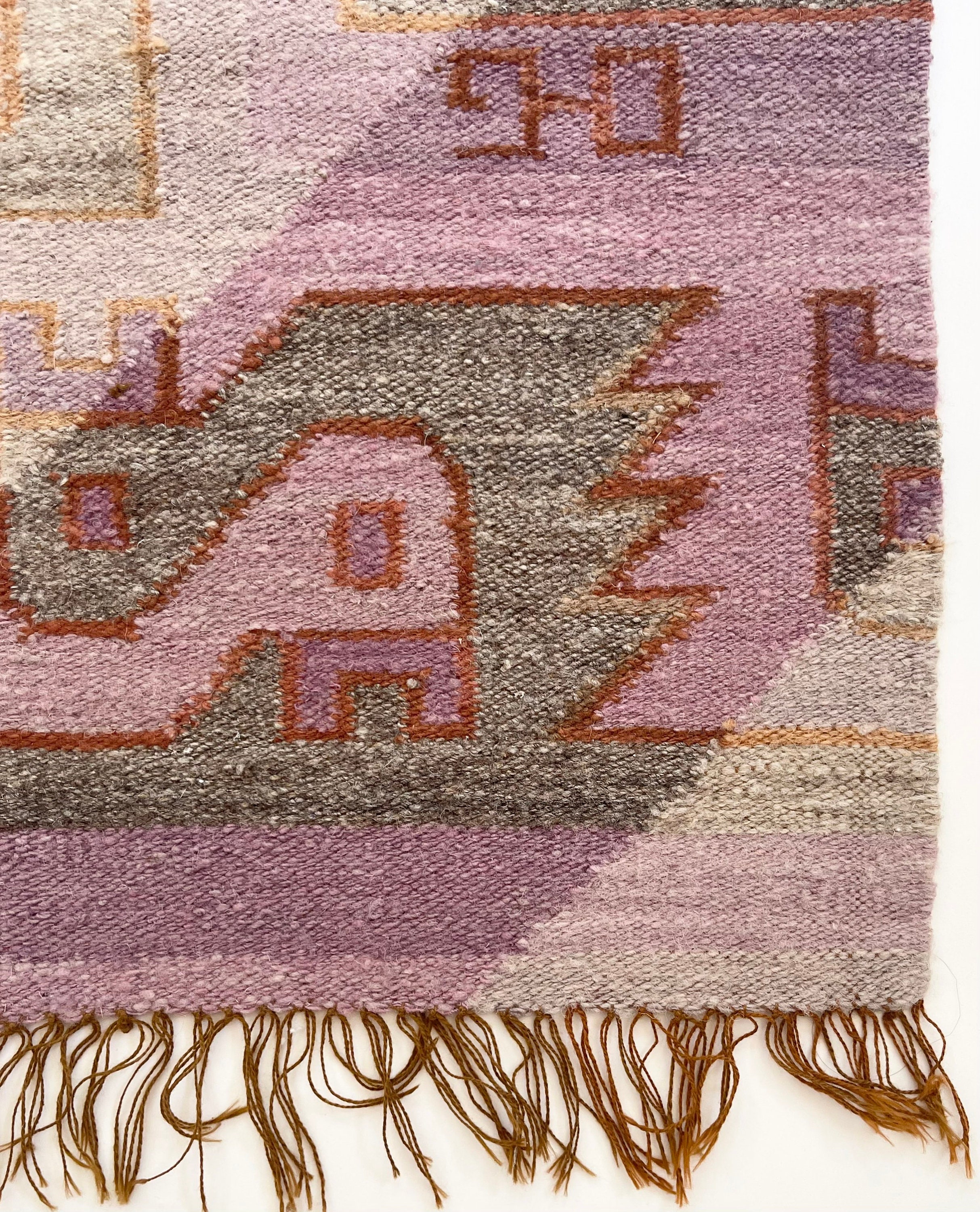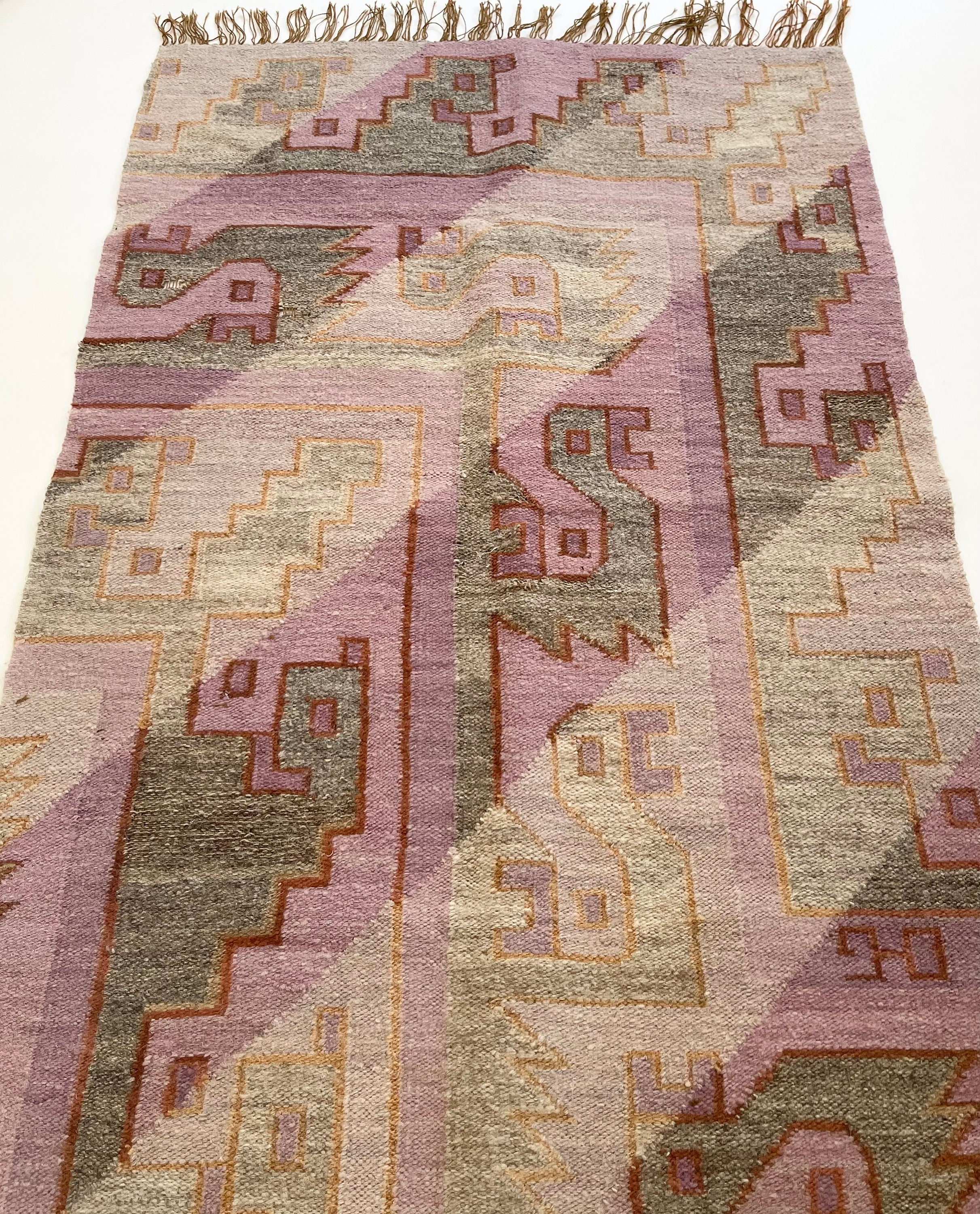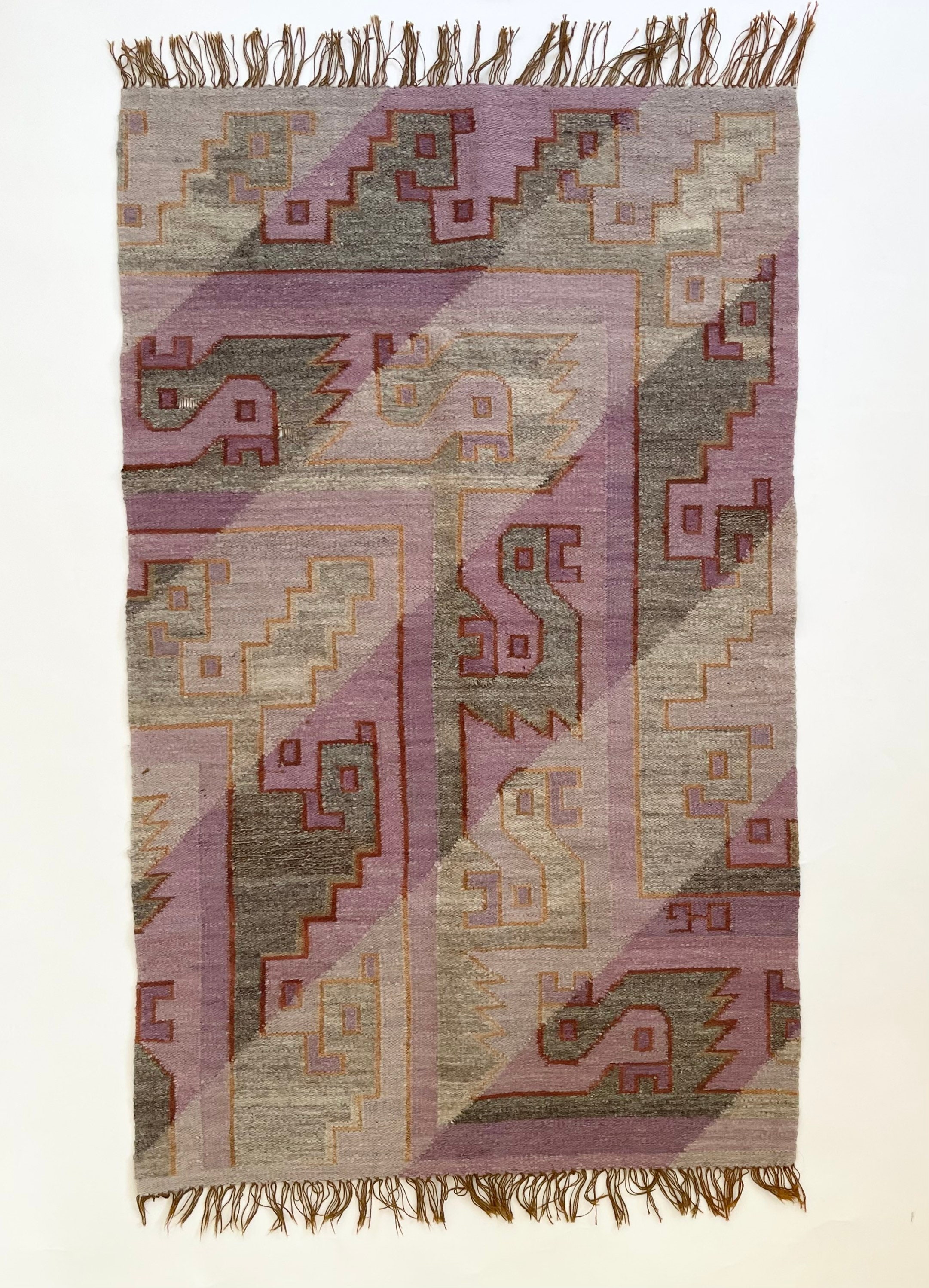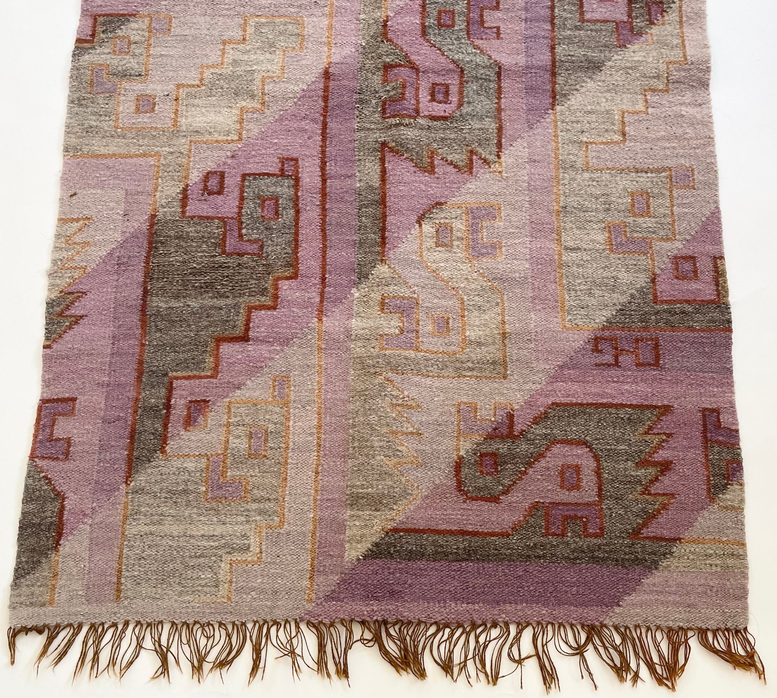 Boho Vintage Accent Rug Throw Rug Handwoven Wool Rug Fridge Ends Geometric Bird Weave Purple Gray Brown Lavender