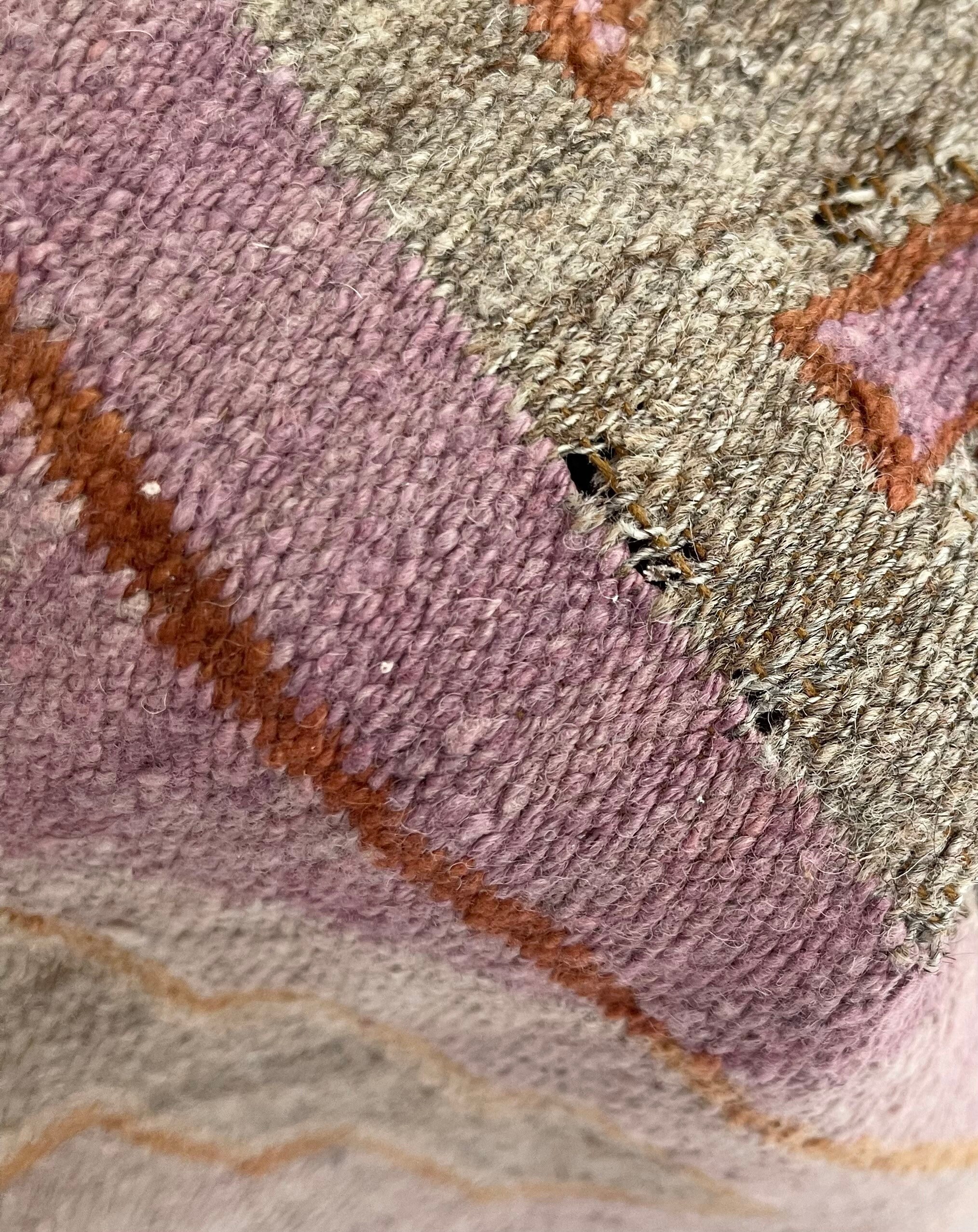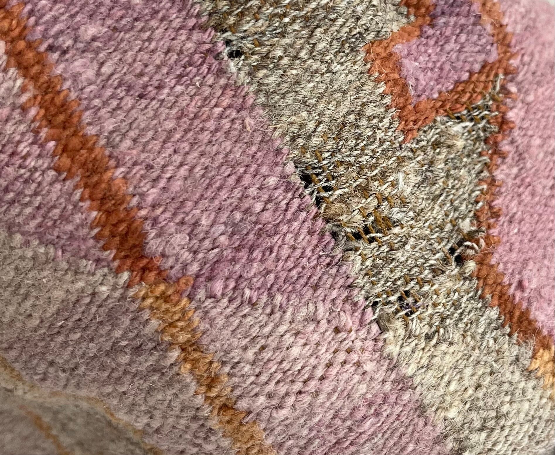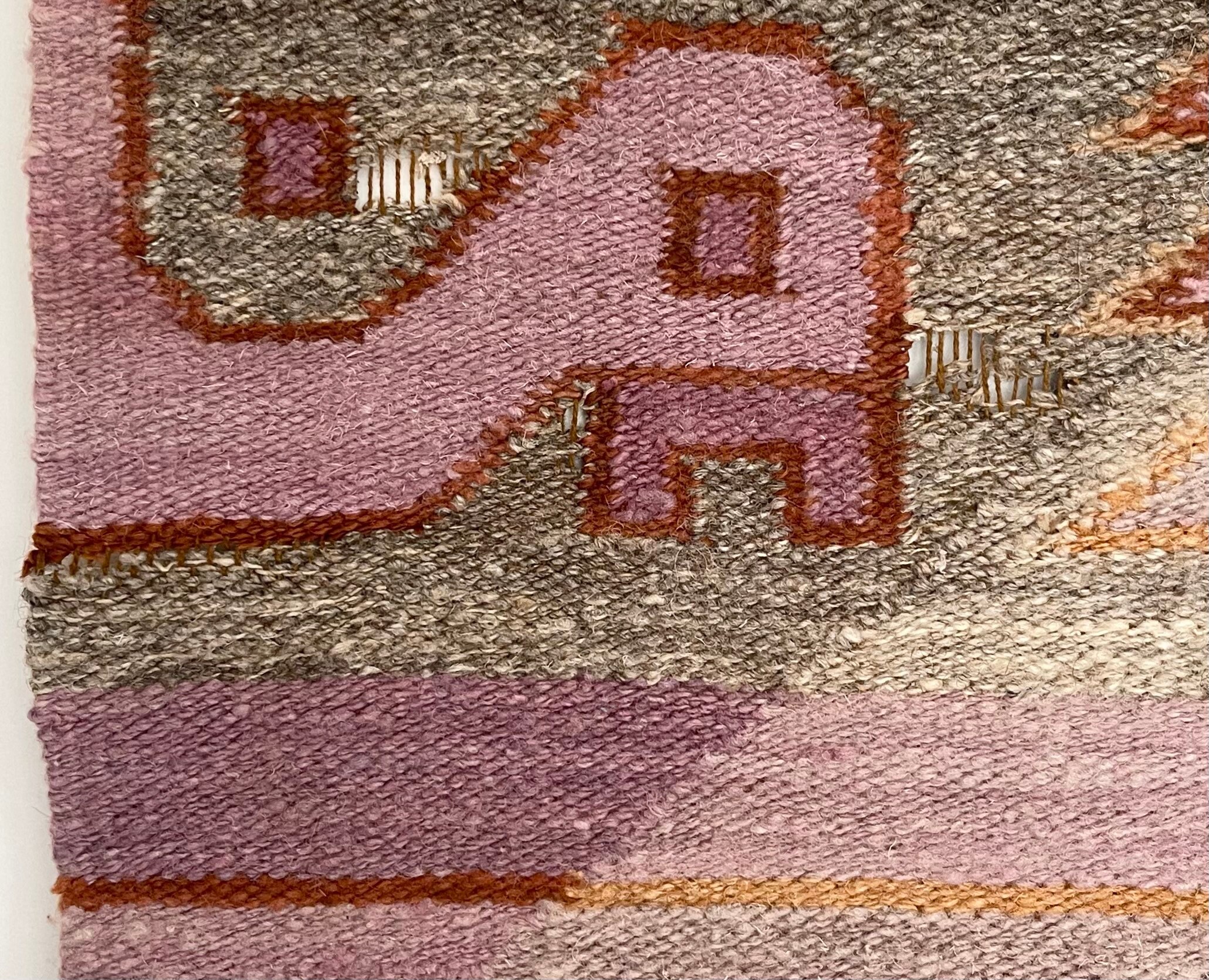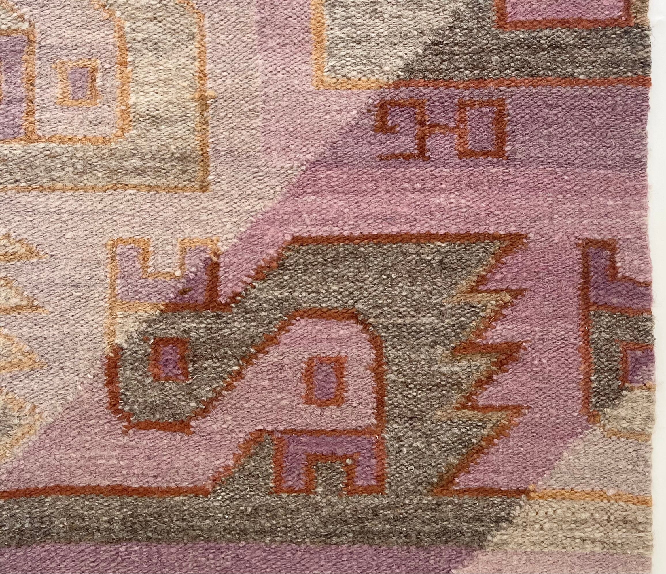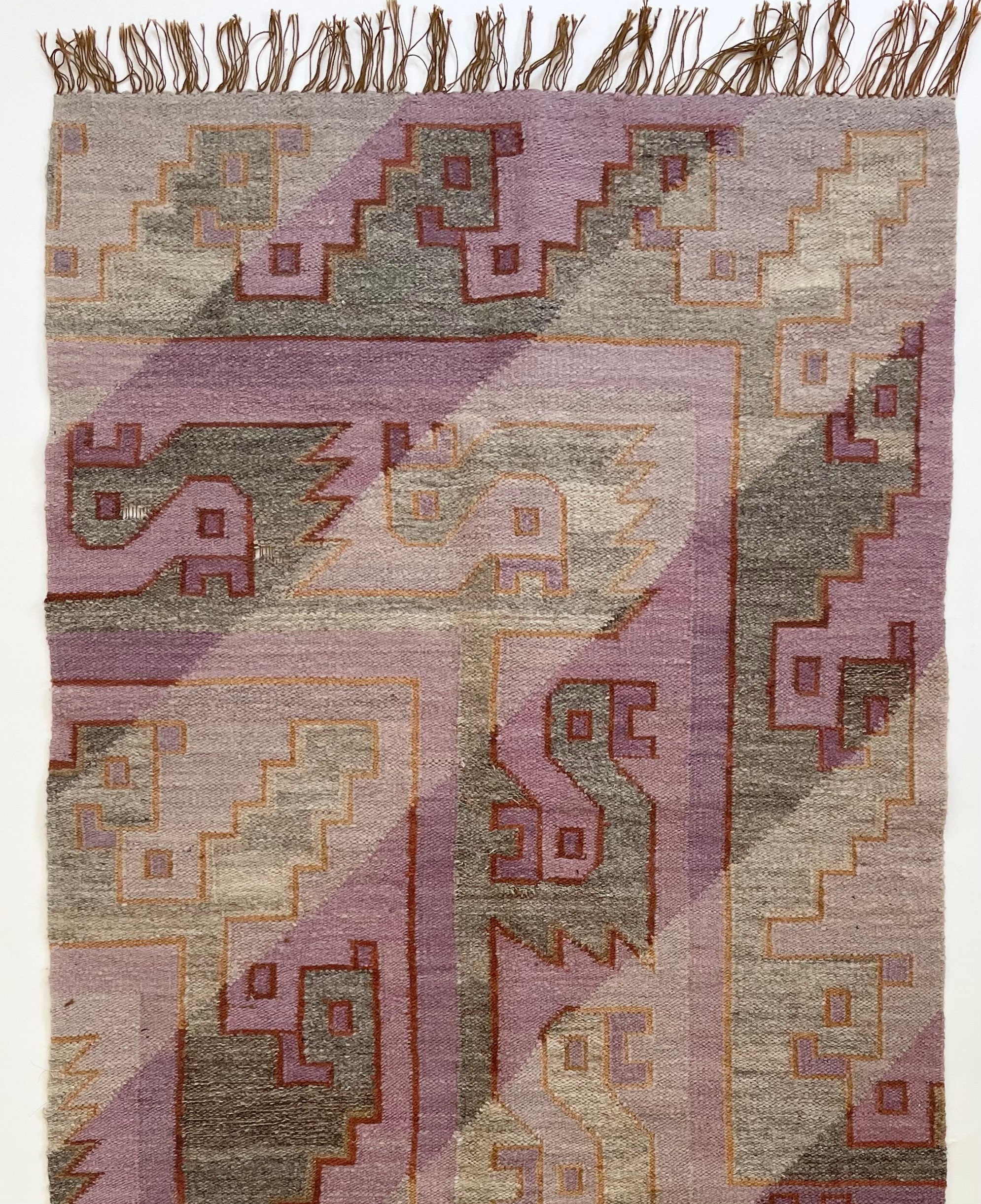 Boho Vintage Accent Rug Throw Rug Handwoven Wool Rug Fridge Ends Geometric Bird Weave Purple Gray Brown Lavender