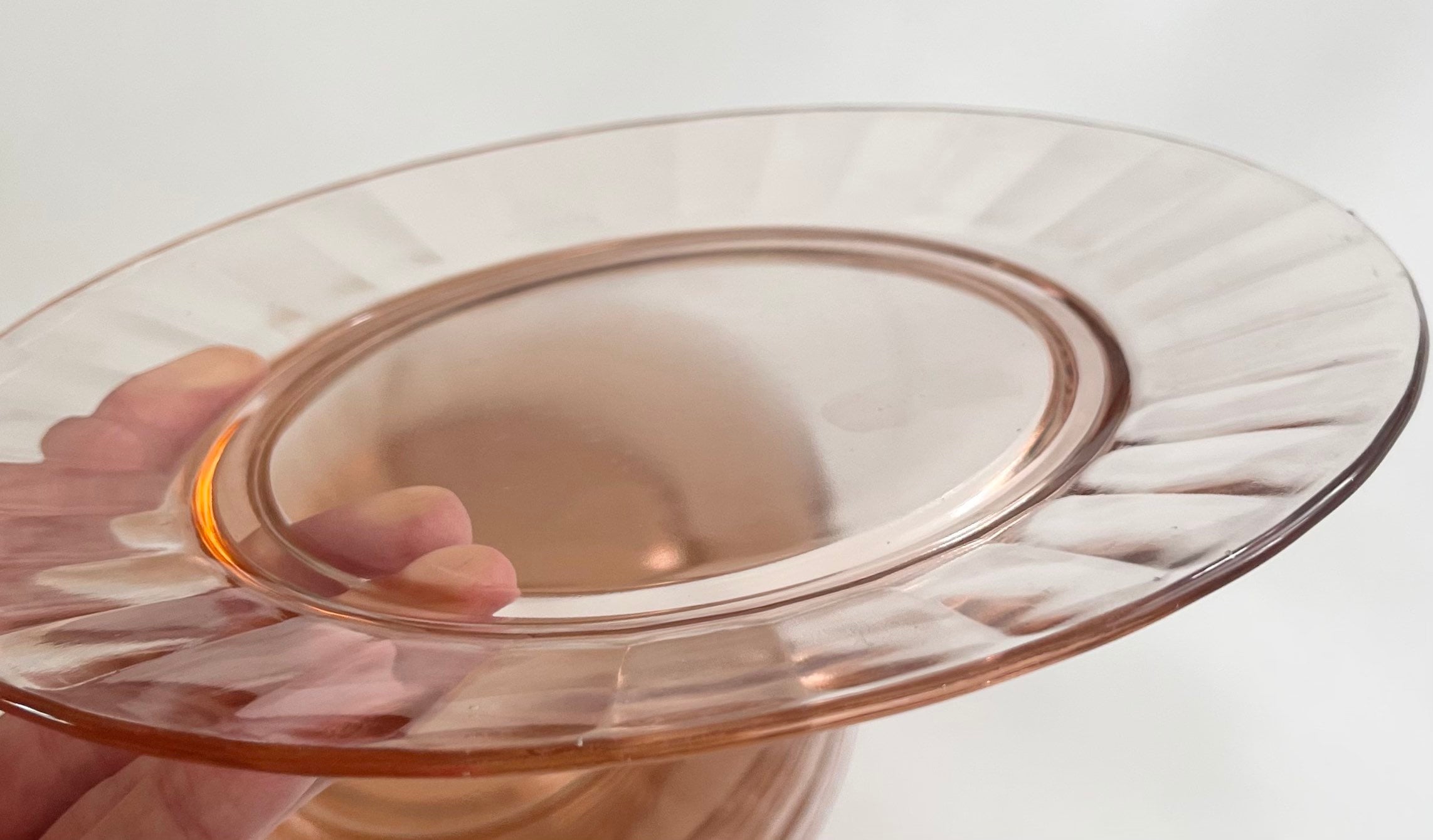 Pink Depression Glass Plate Set of 8 Plates Fluted Edge Vintage Pressed Glass Depressionware Pale Pink Dessert Salad Size Valentines Decor