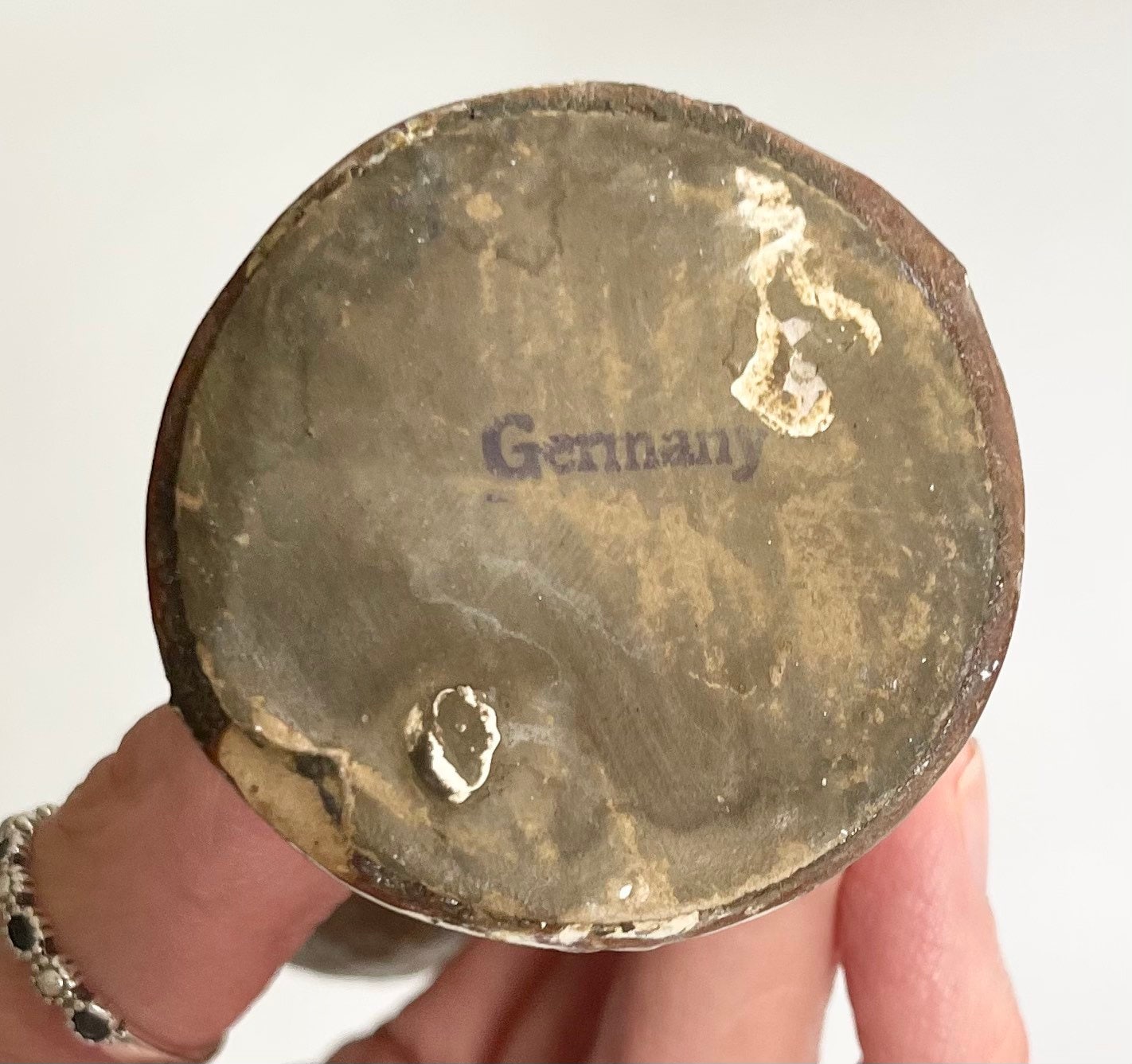 Tall angel is stamped "GERMANY" and the smaller angel appears to be as well though the base is quite worn