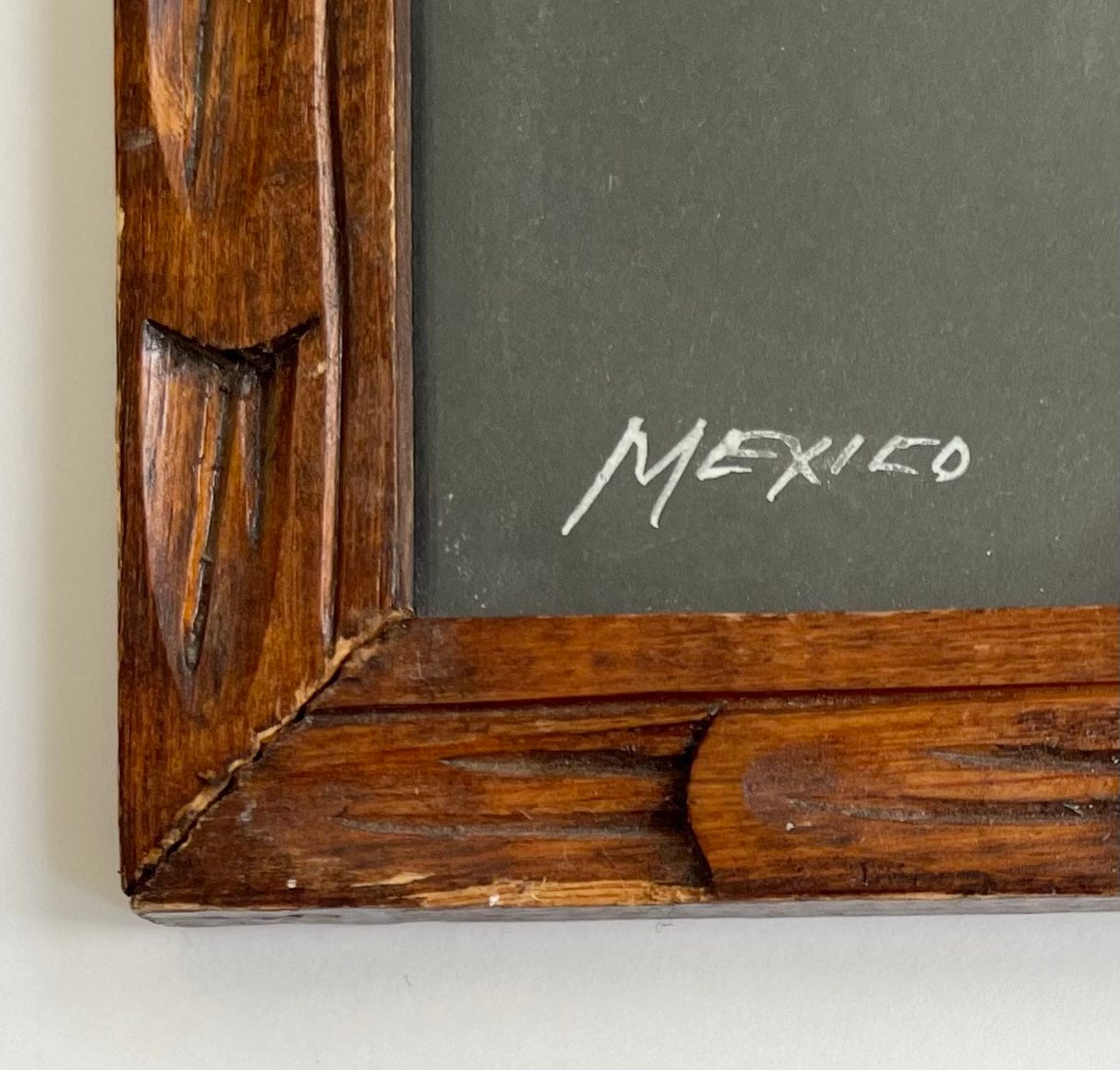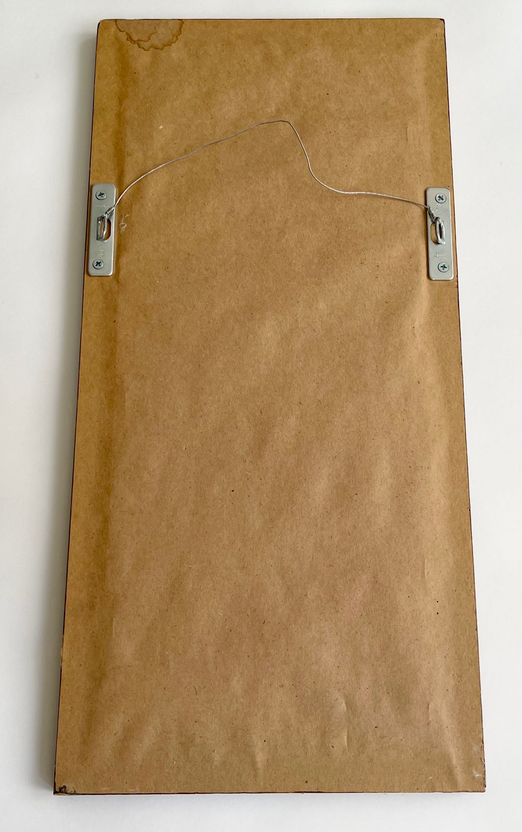 Good vintage condition. Back paper, hooks and hanging wire look newer and not original to the piece.