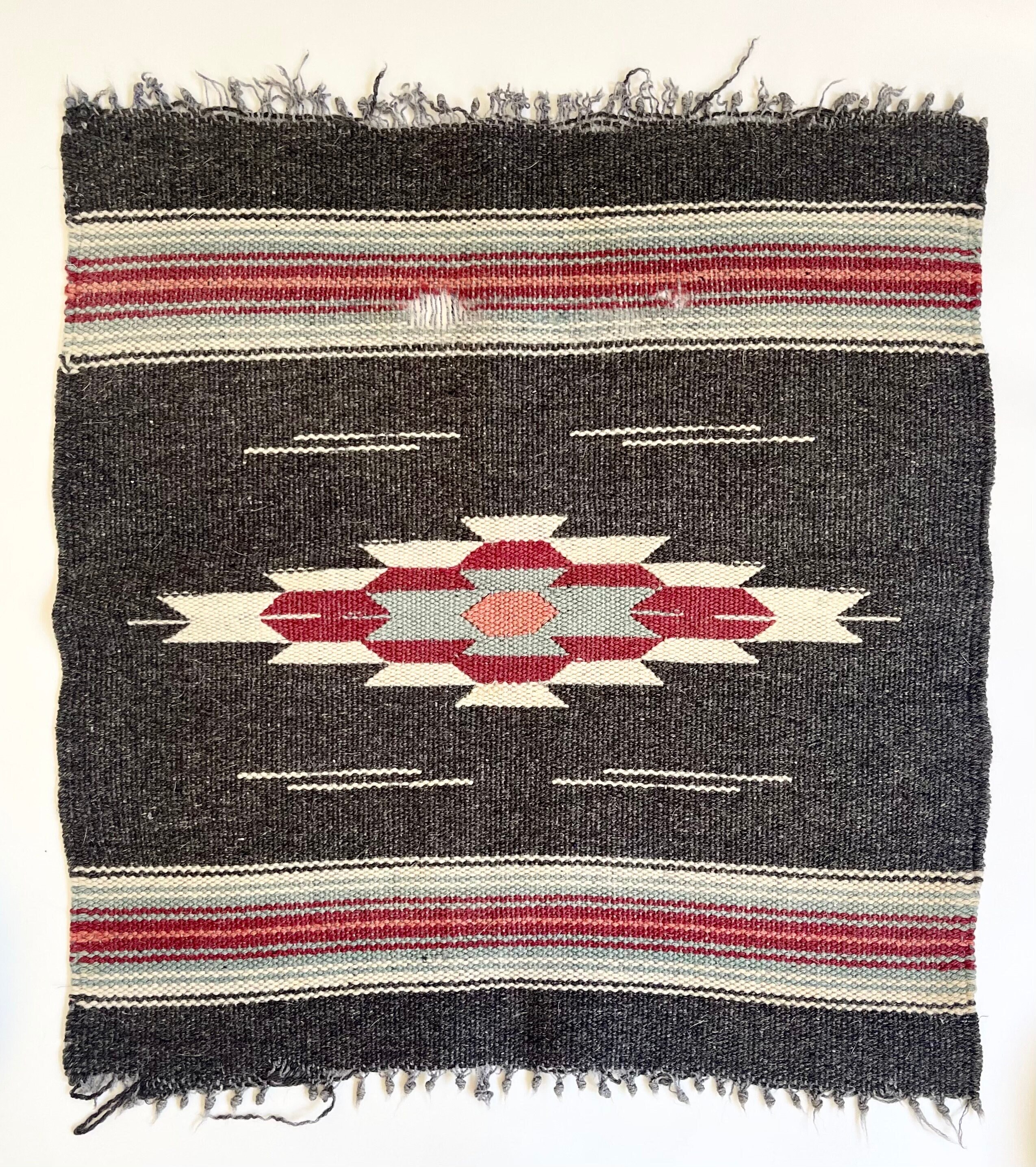 Handwoven Chimayo Weaving Mat Tabletop Size Textile Vintage Soft Charcoal Gray Wool Southwest Western Home Decor Accents