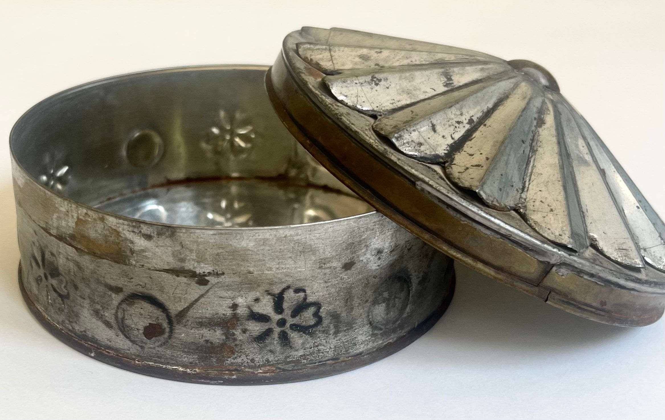 Rustic Punched Tin Box Lidded Box Very Aged Vintage Old Worn Patina Southwest Hacienda Mexican Style Home Decor Accent Round Domed Boxes