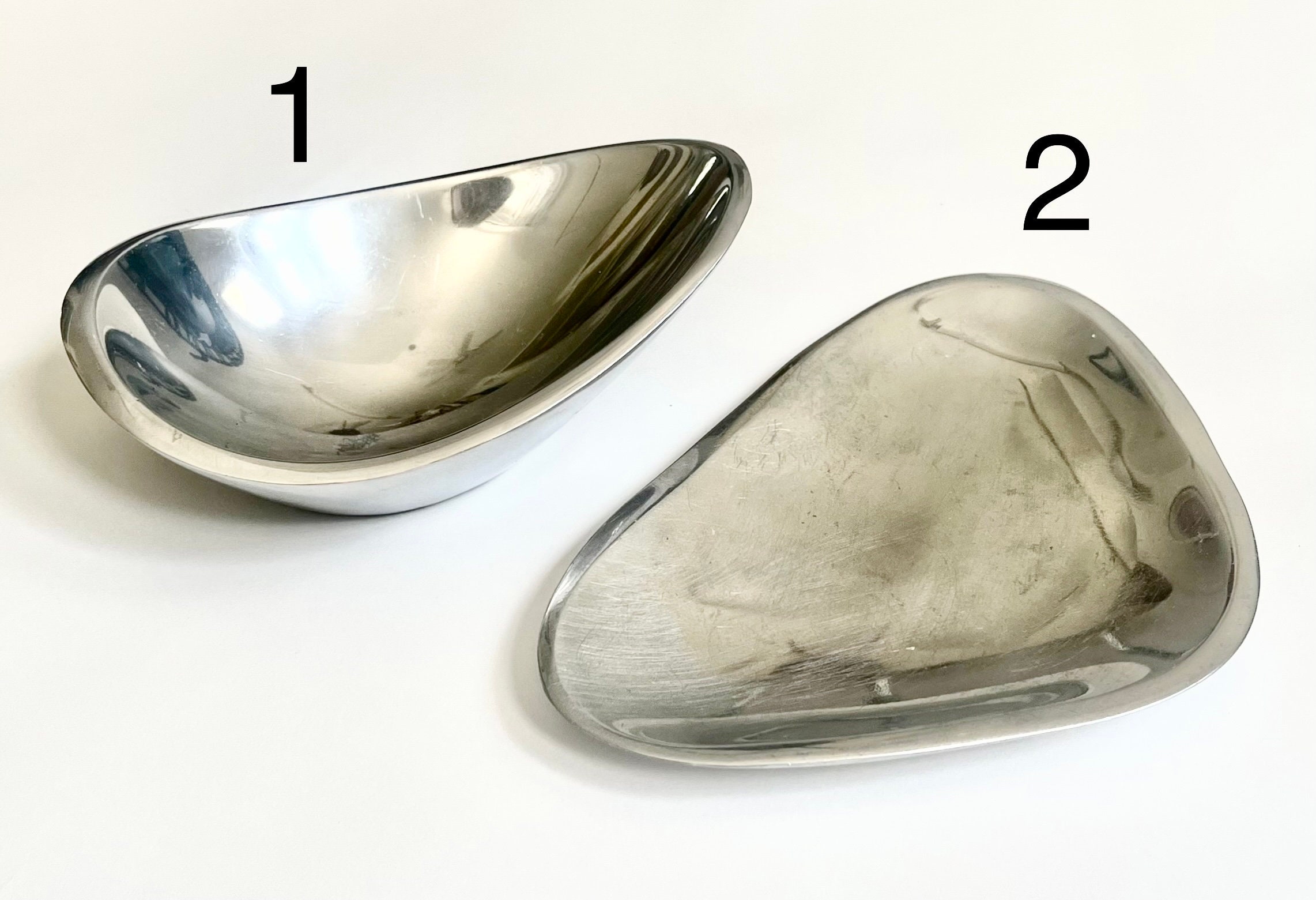 Small vintage sculptural Nambe trinket dishes available in two styles: