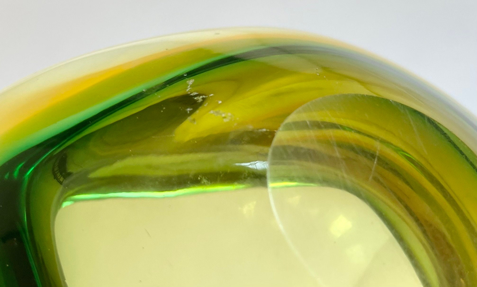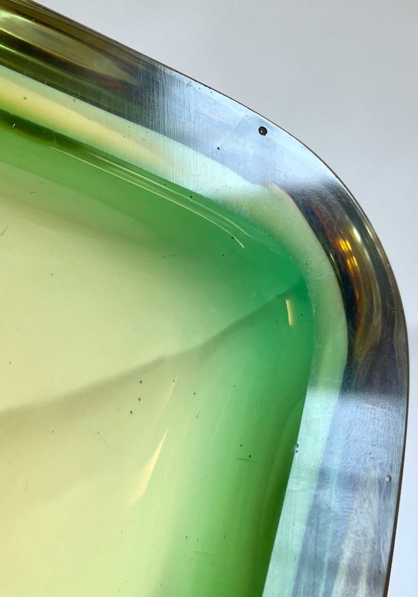 Good vintage condition with a couple tiny divots on the top rim as well as minor surface scratches at base. Please see last two photos for close ups of these areas.