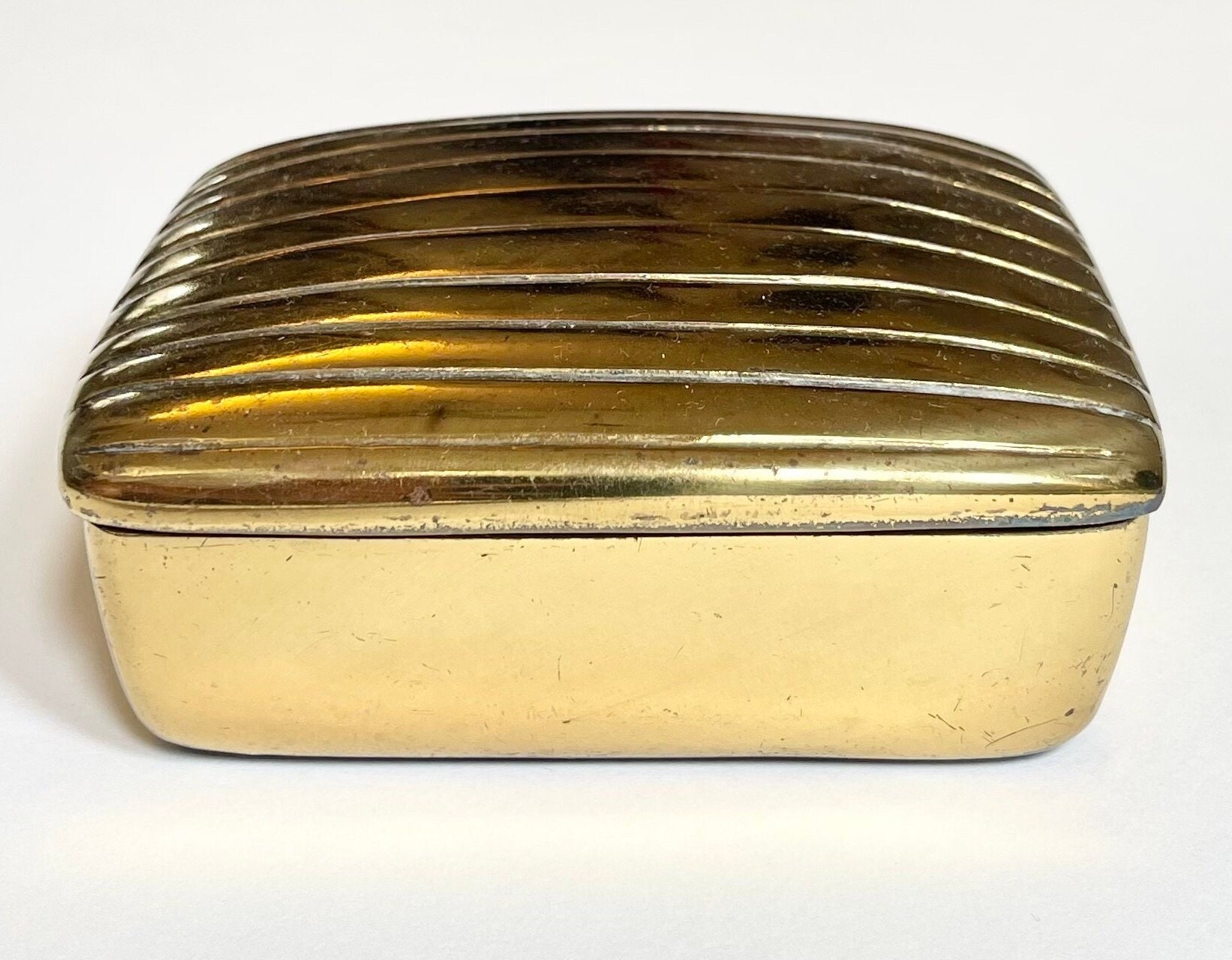 Mid Century Brass Box Heavy Solid Brass Lidded Box Vintage Minimalist Modernist Rectangle Ribbed Lid