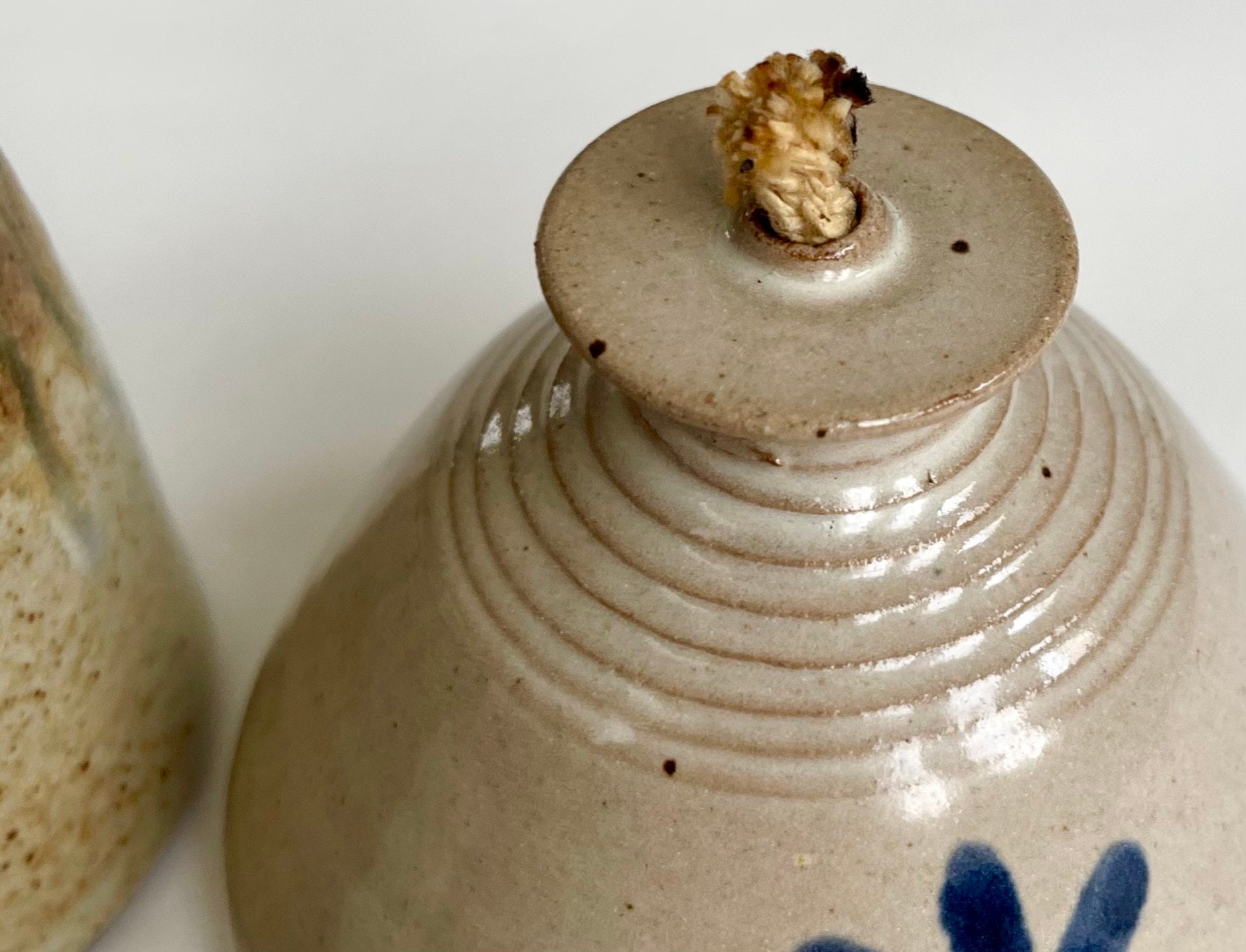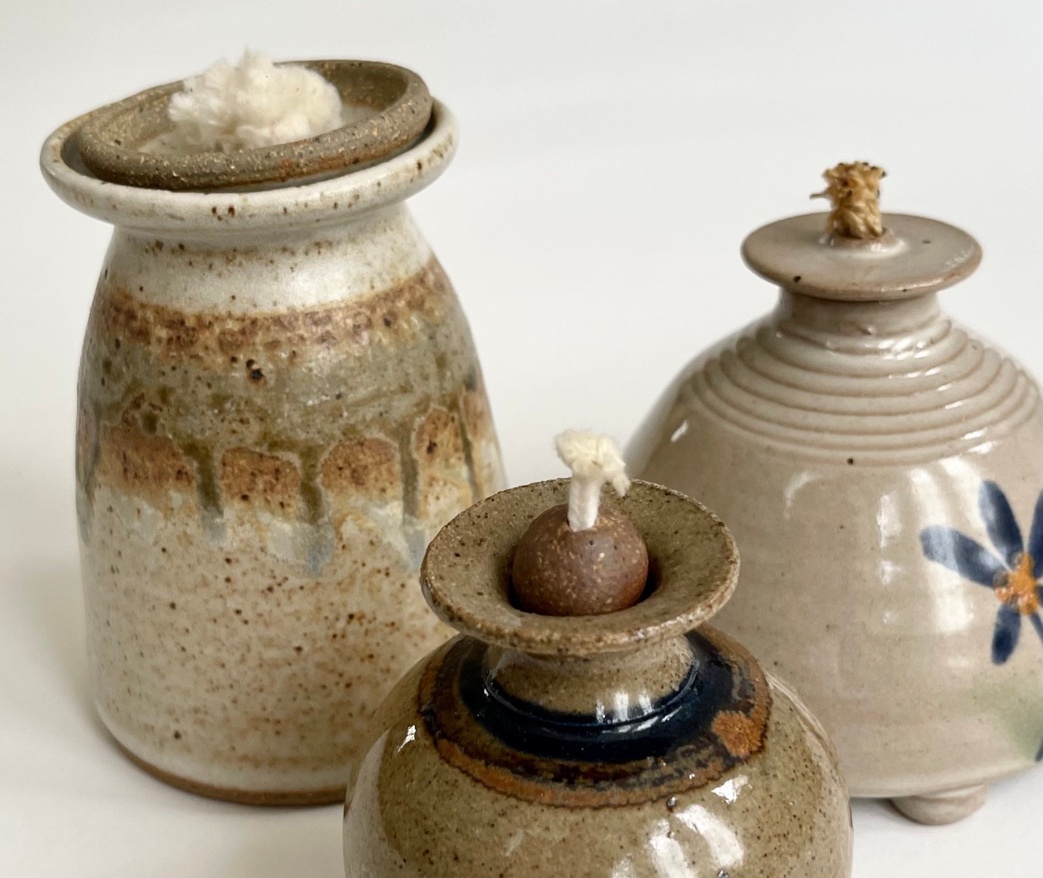 Pottery Oil Lamp Collection of 3 Vintage Handmade Studio Ceramic Oil Lamps Drip Glaze Glazed Hand Painted Floral Pot Vase Bud Vase