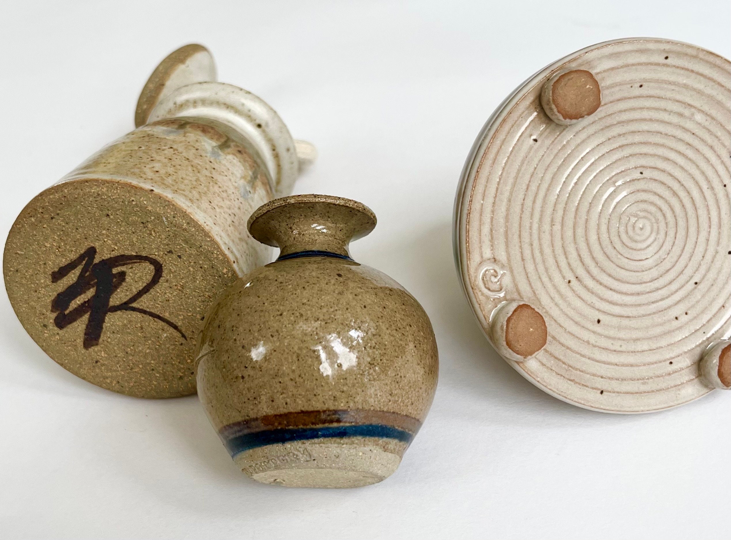 Collection of three vintage handmade pottery oil lamps which could double as adorable little bud vases