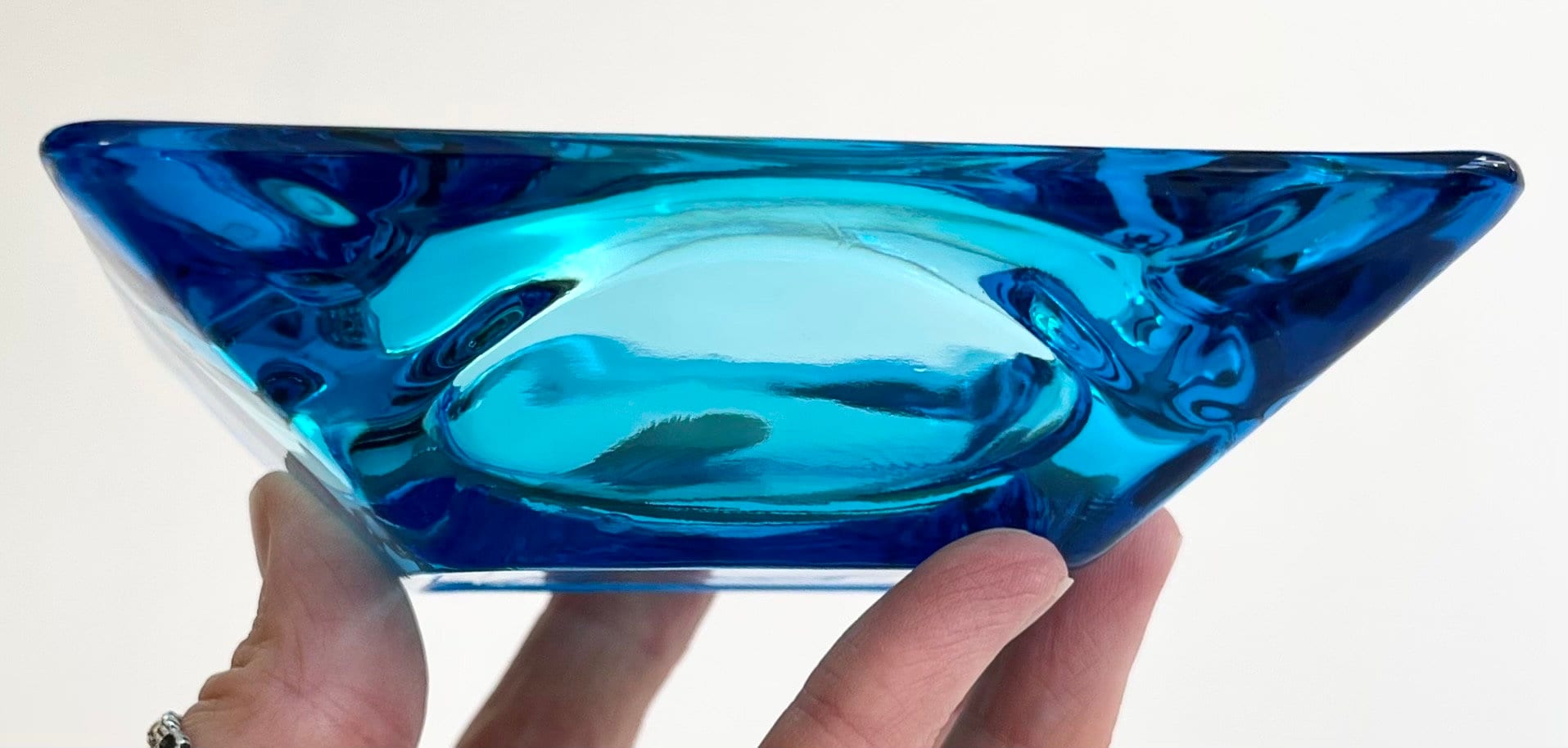 Mid Century vintage atomic blue glass ashtray