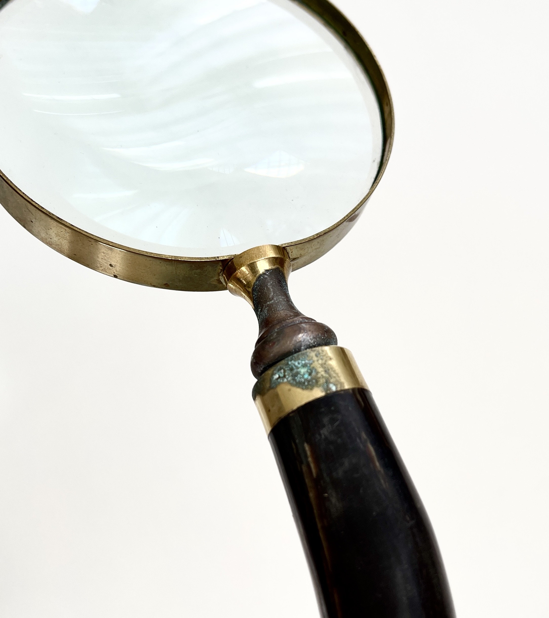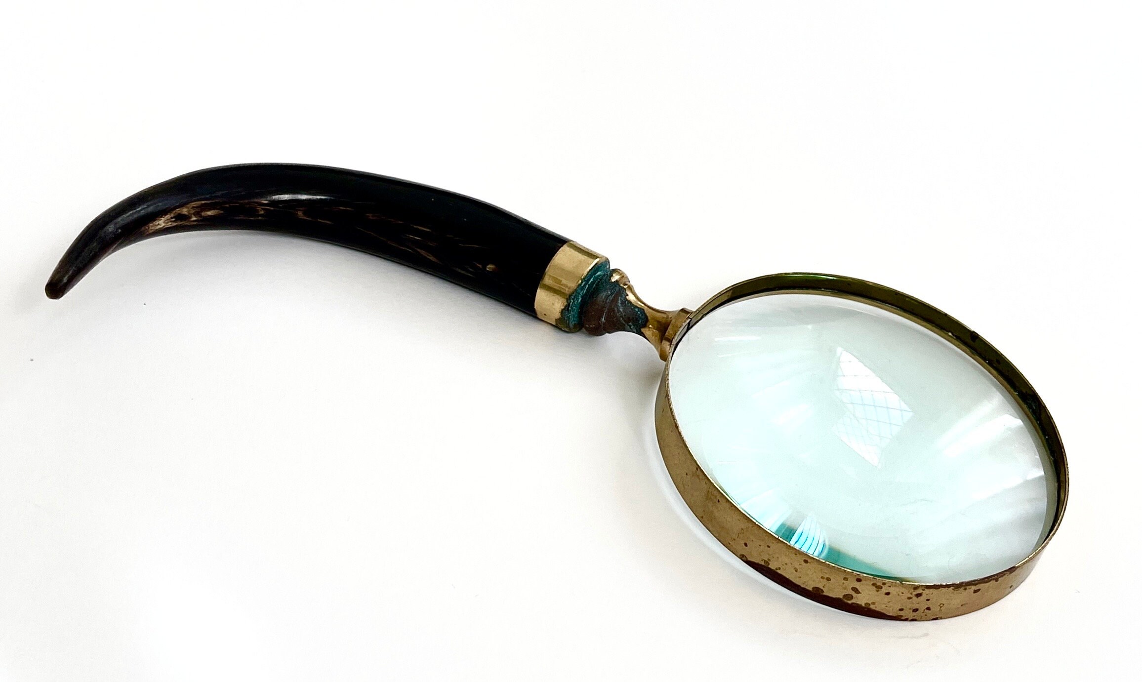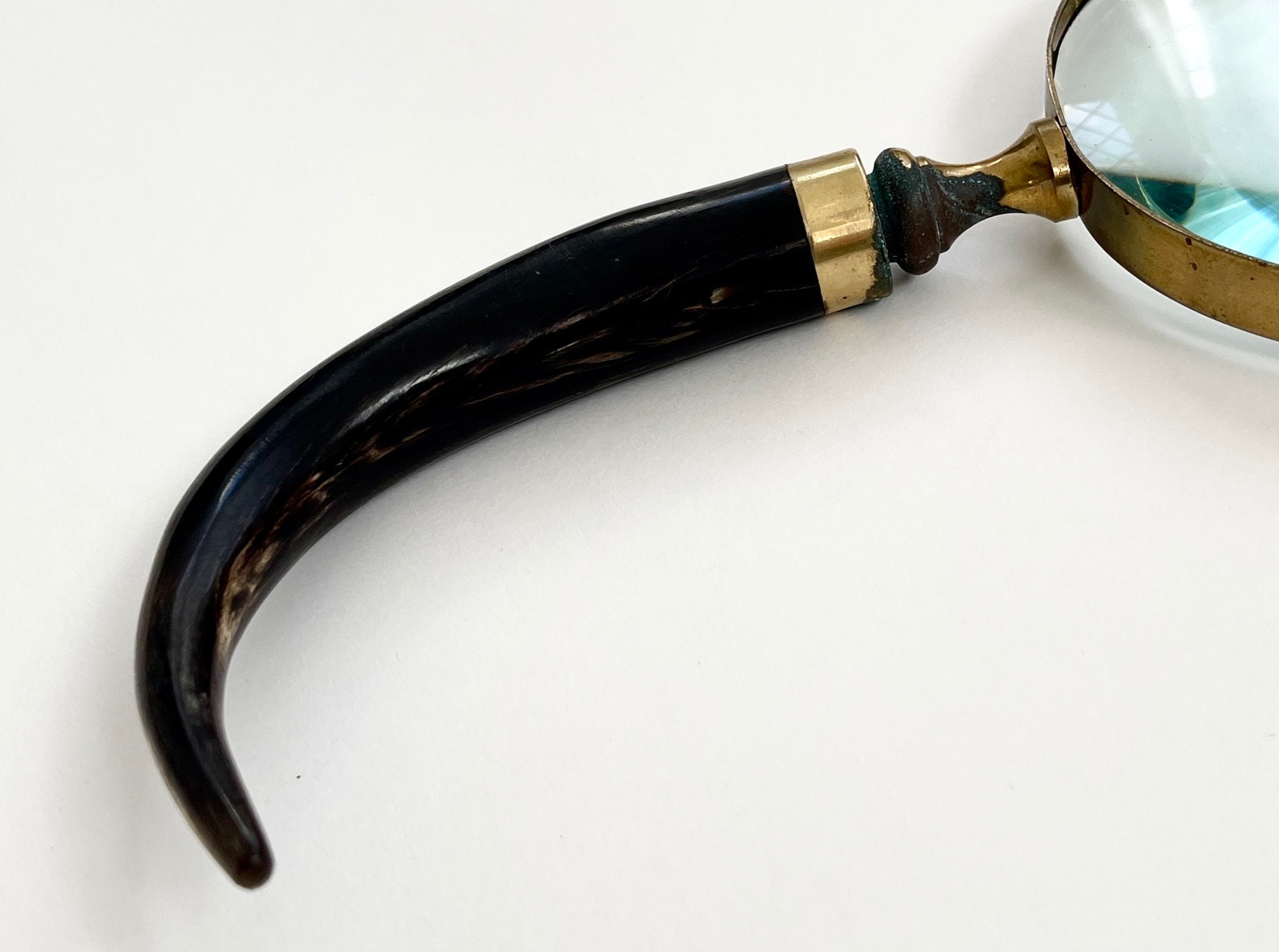 Antique magnifying glass with brass trim and natural horn handle