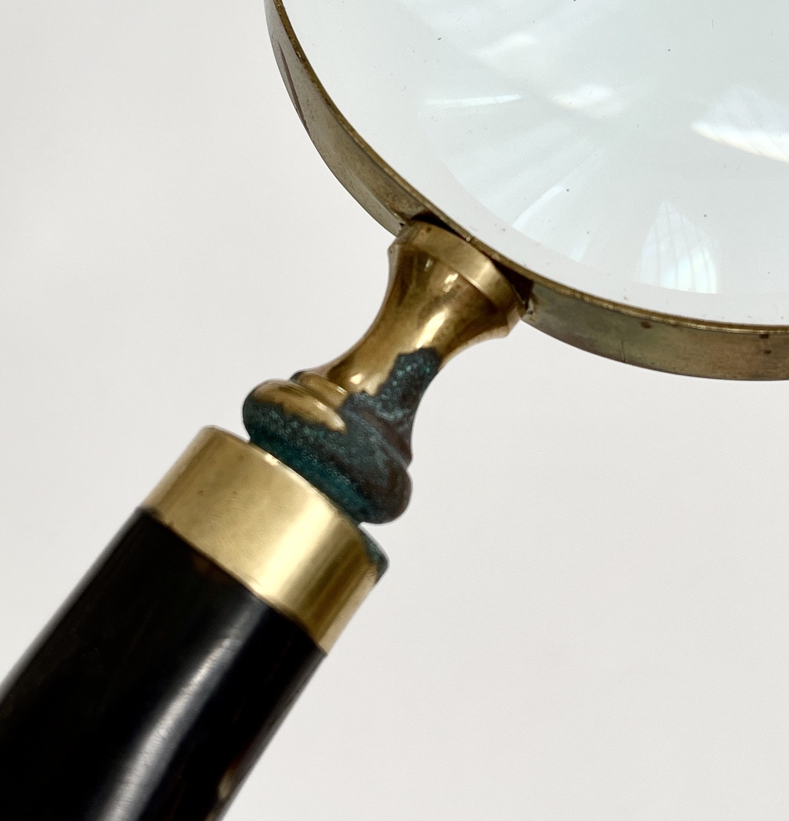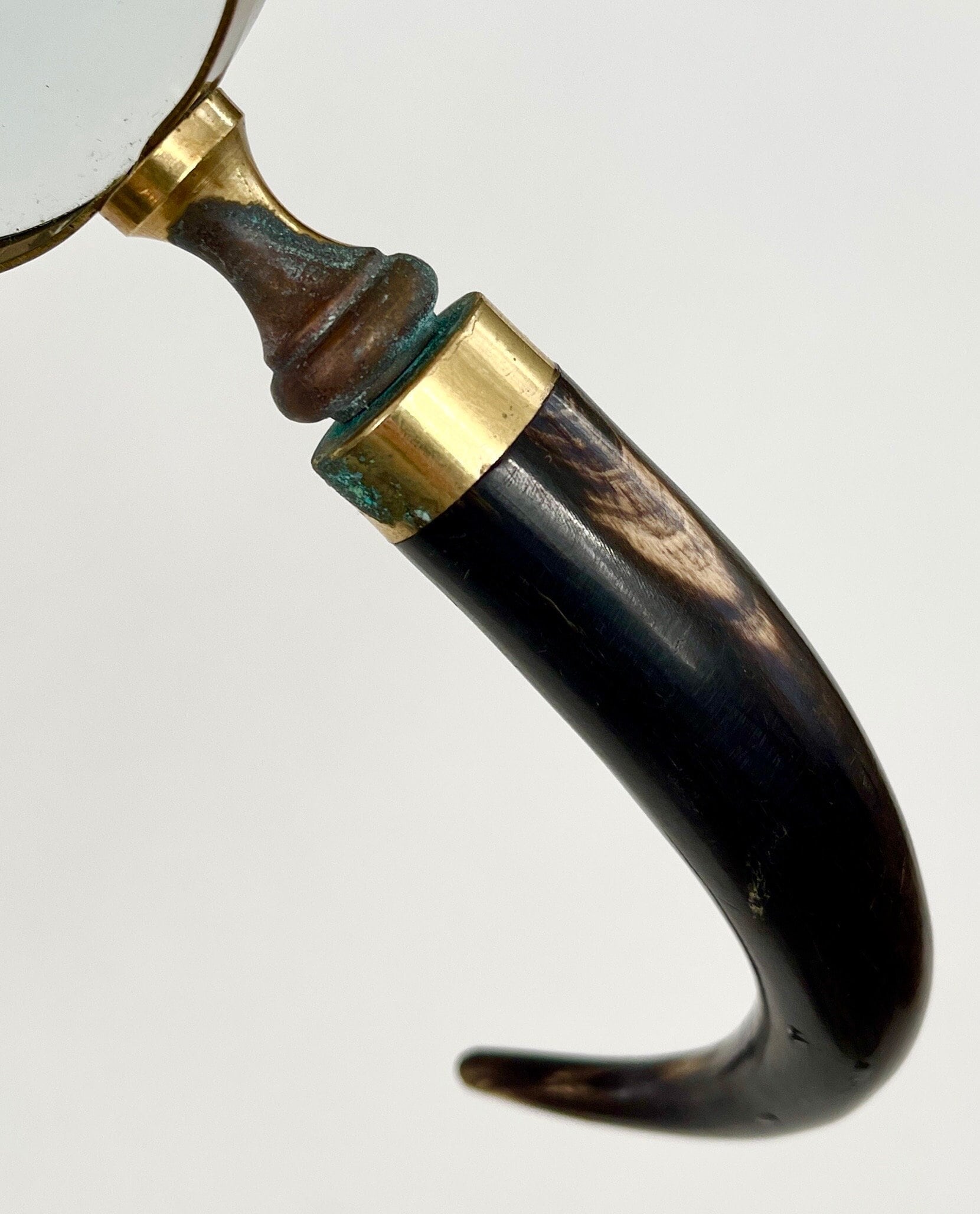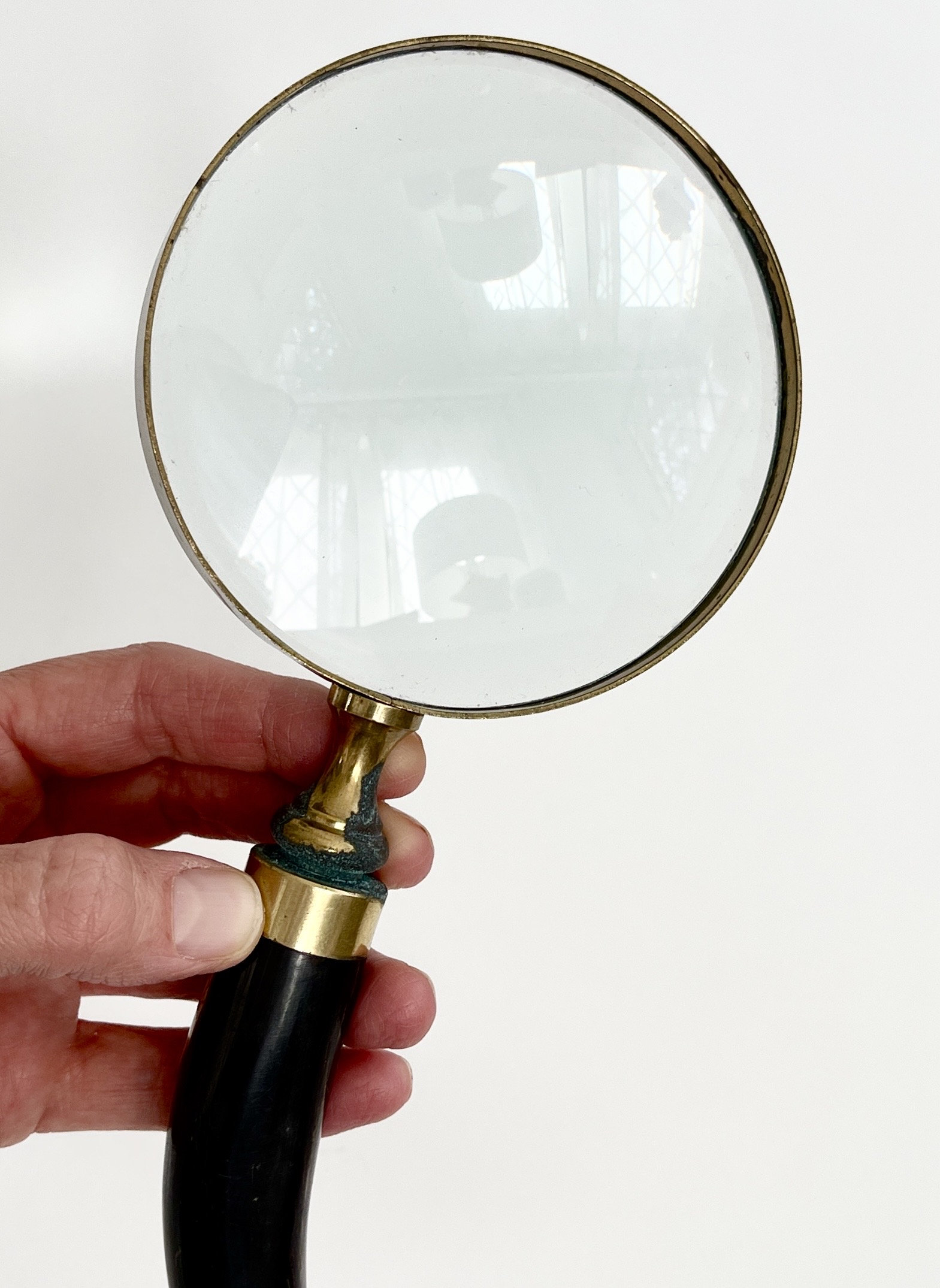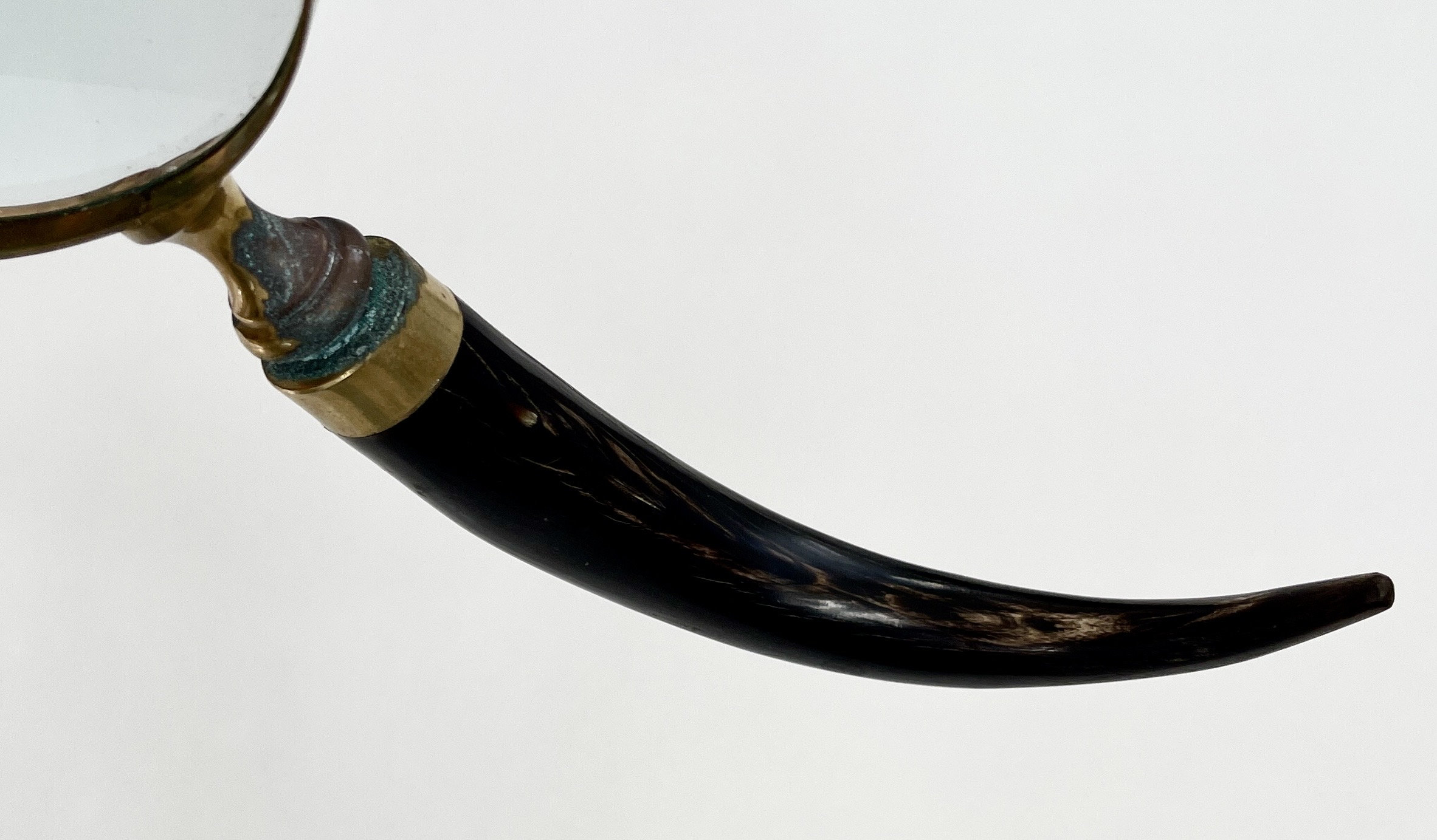 Antique magnifying glass with brass trim and natural horn handle