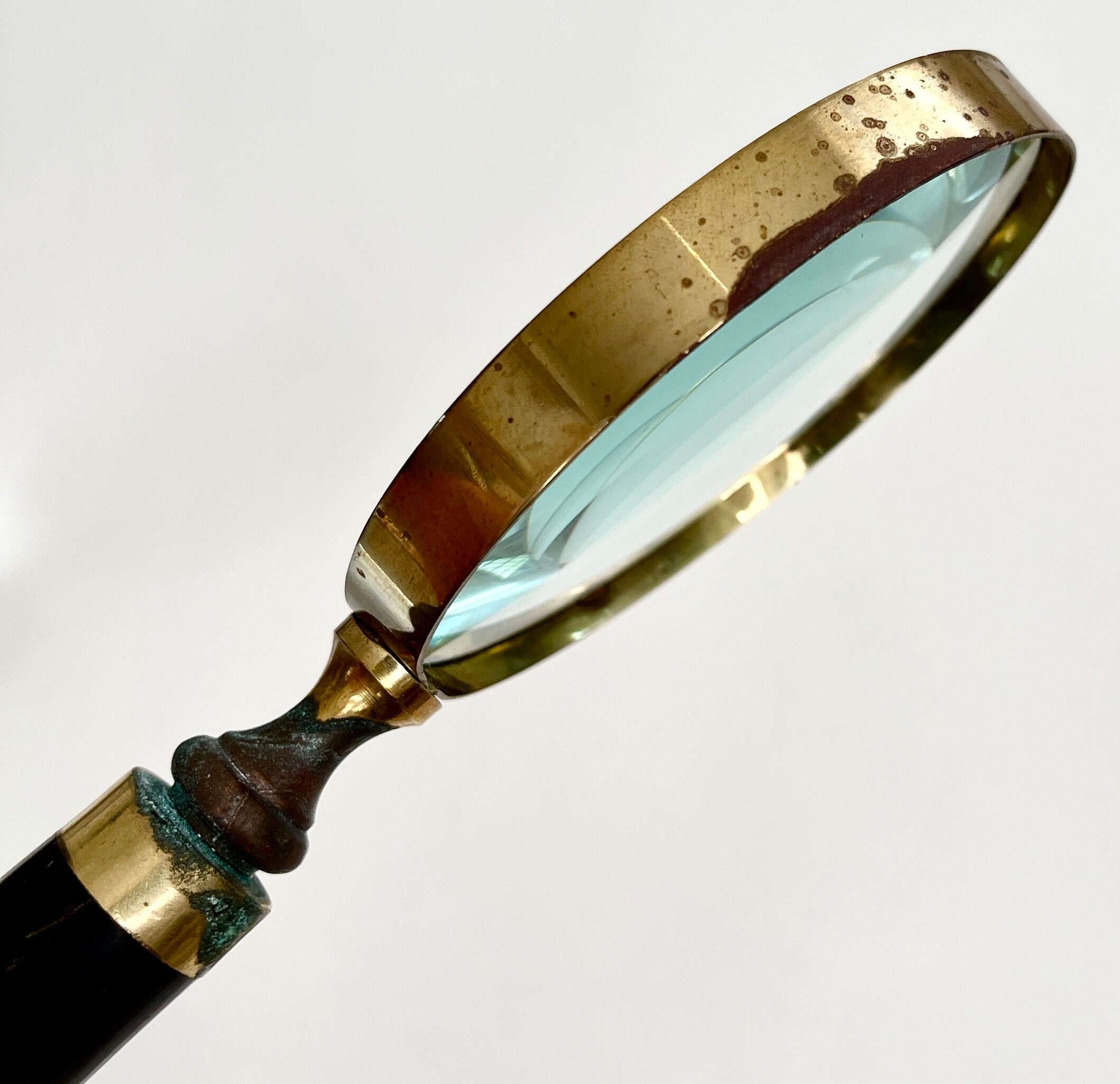 Antique Horn Magnifying Glass Vintage Old Brass Glass Magnifying Glass with Dark Horn Handle Office Library Home Decor Home Accents