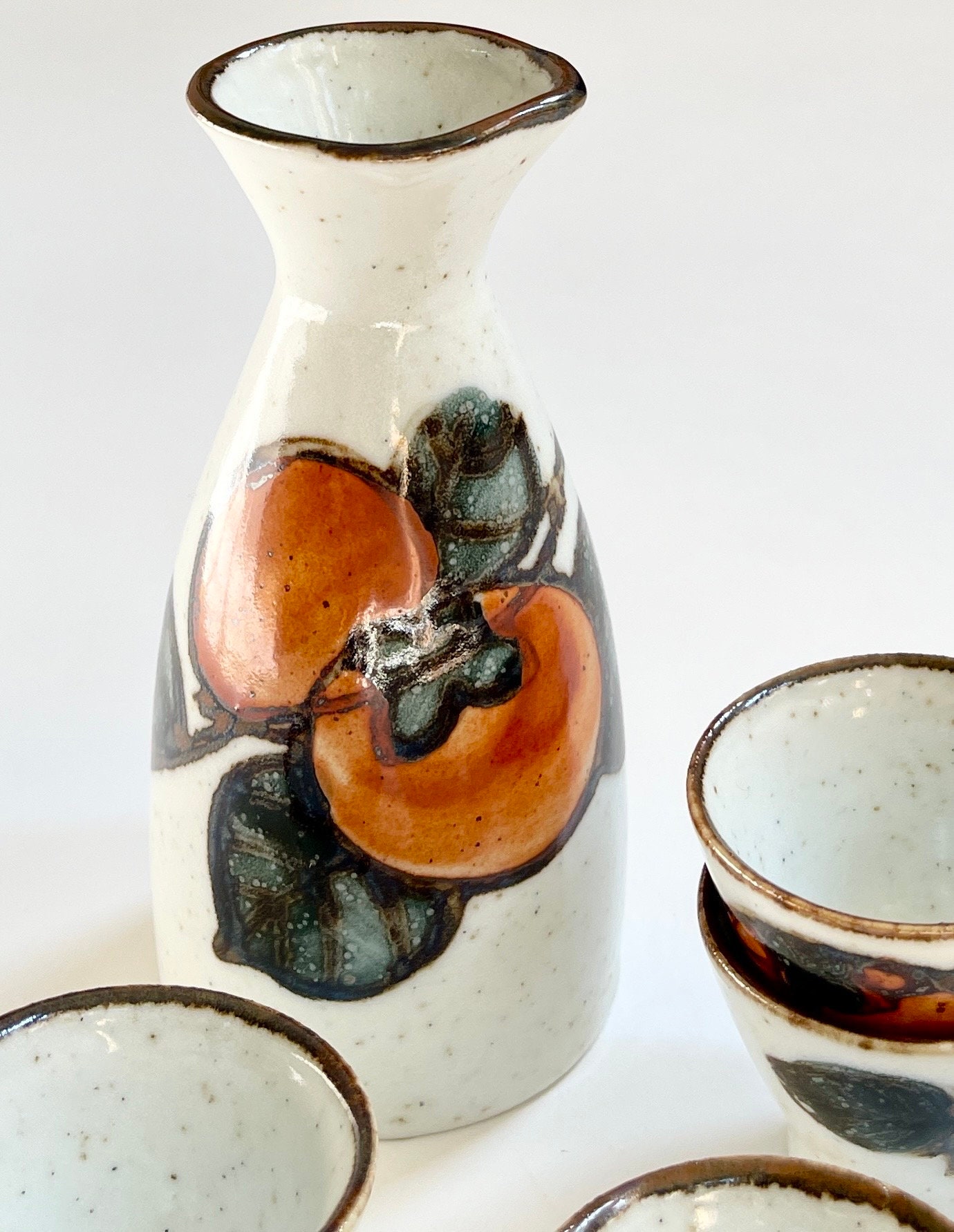 Japanese Ceramic Sake Set Sake Cups Sake Carafe Mid Century Vintage Made in Japan Speckled Natural White Sushi Date Night