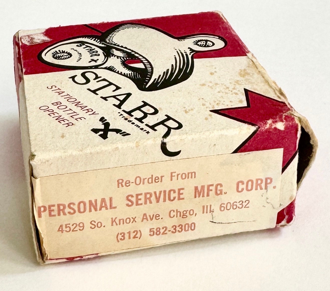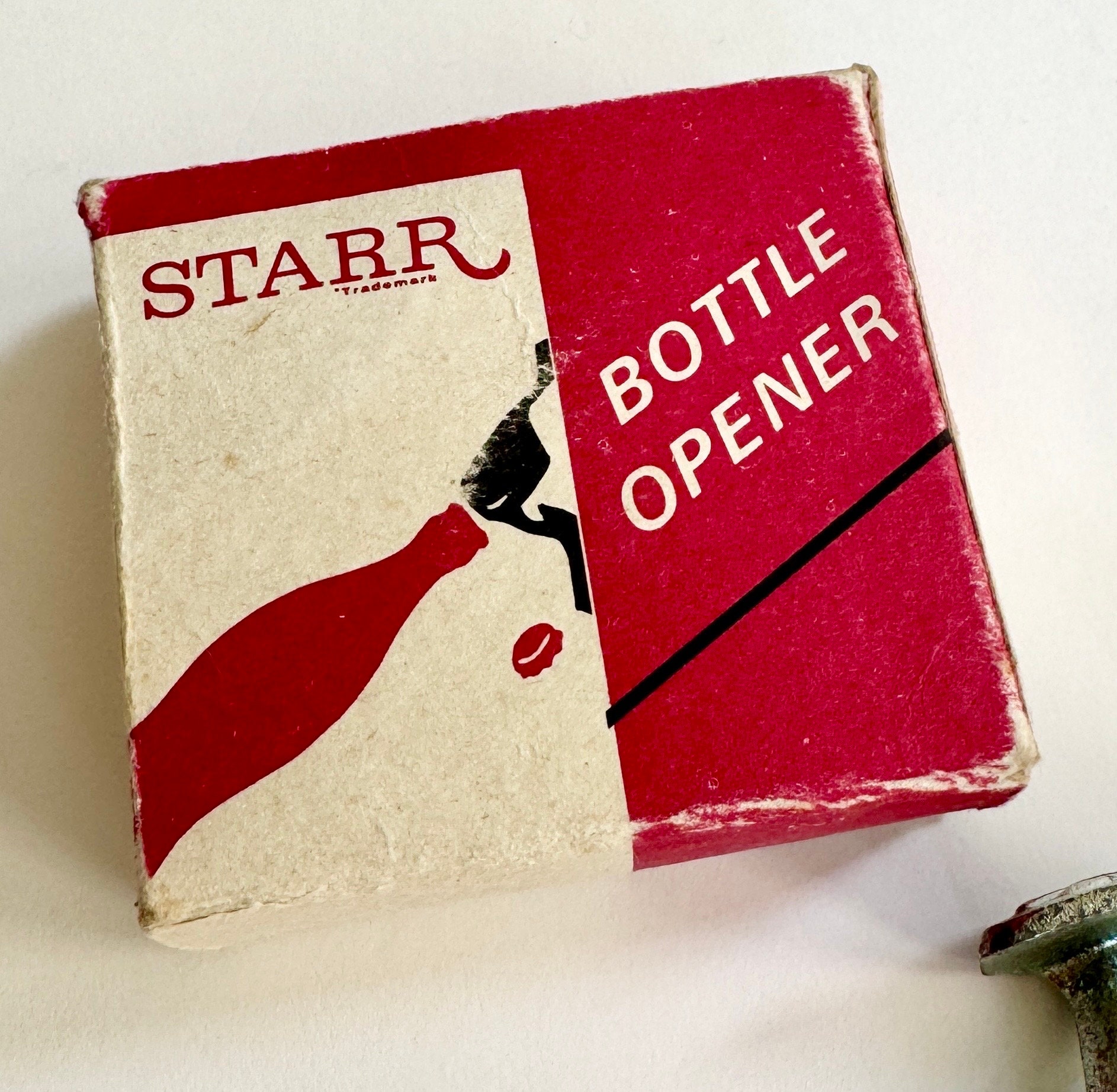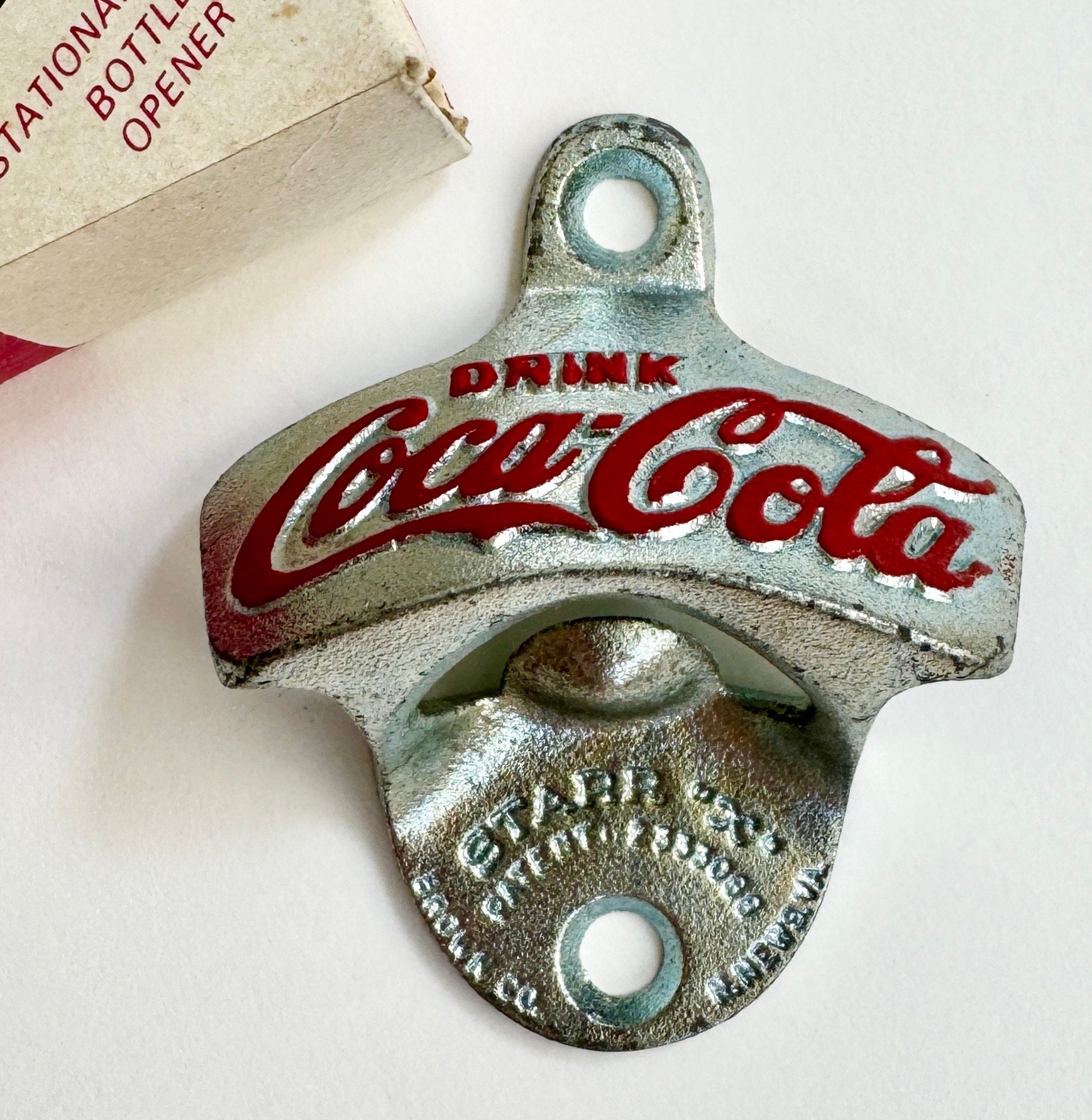 Collectible vintage Starr X wall mount "Drink Coca Cola" stationary bottle opener in original box made by Pohlig Bros, Richmond, VA