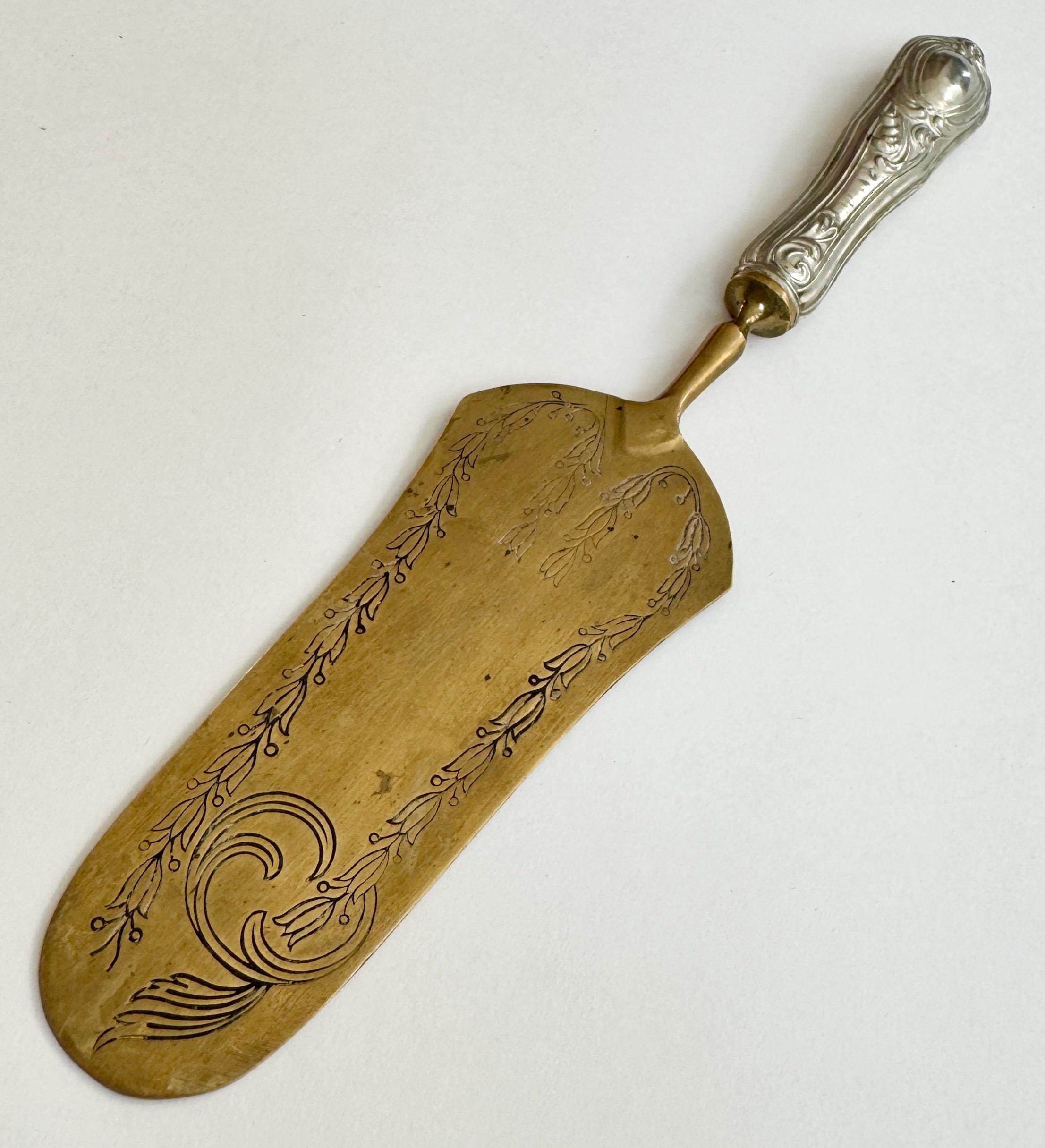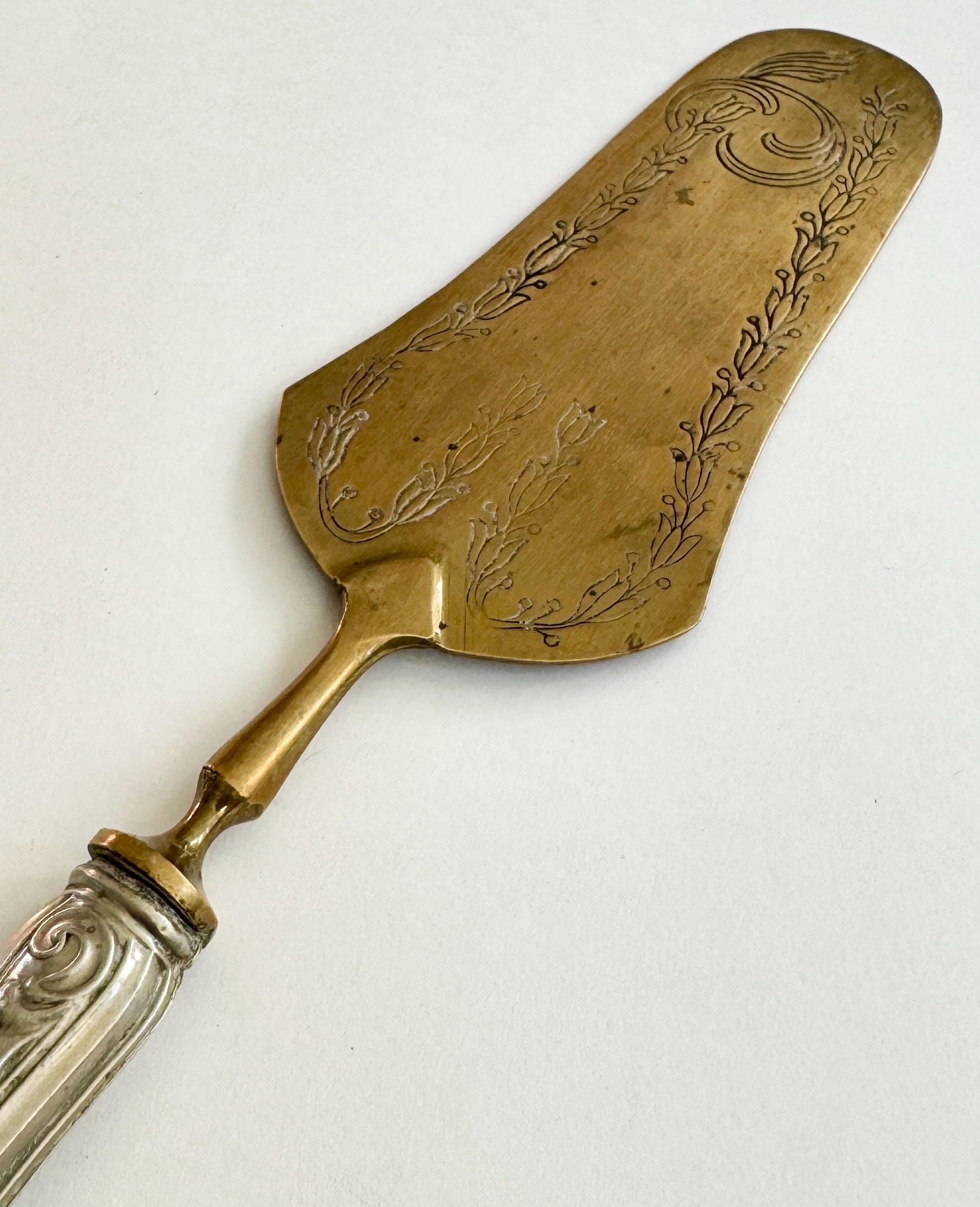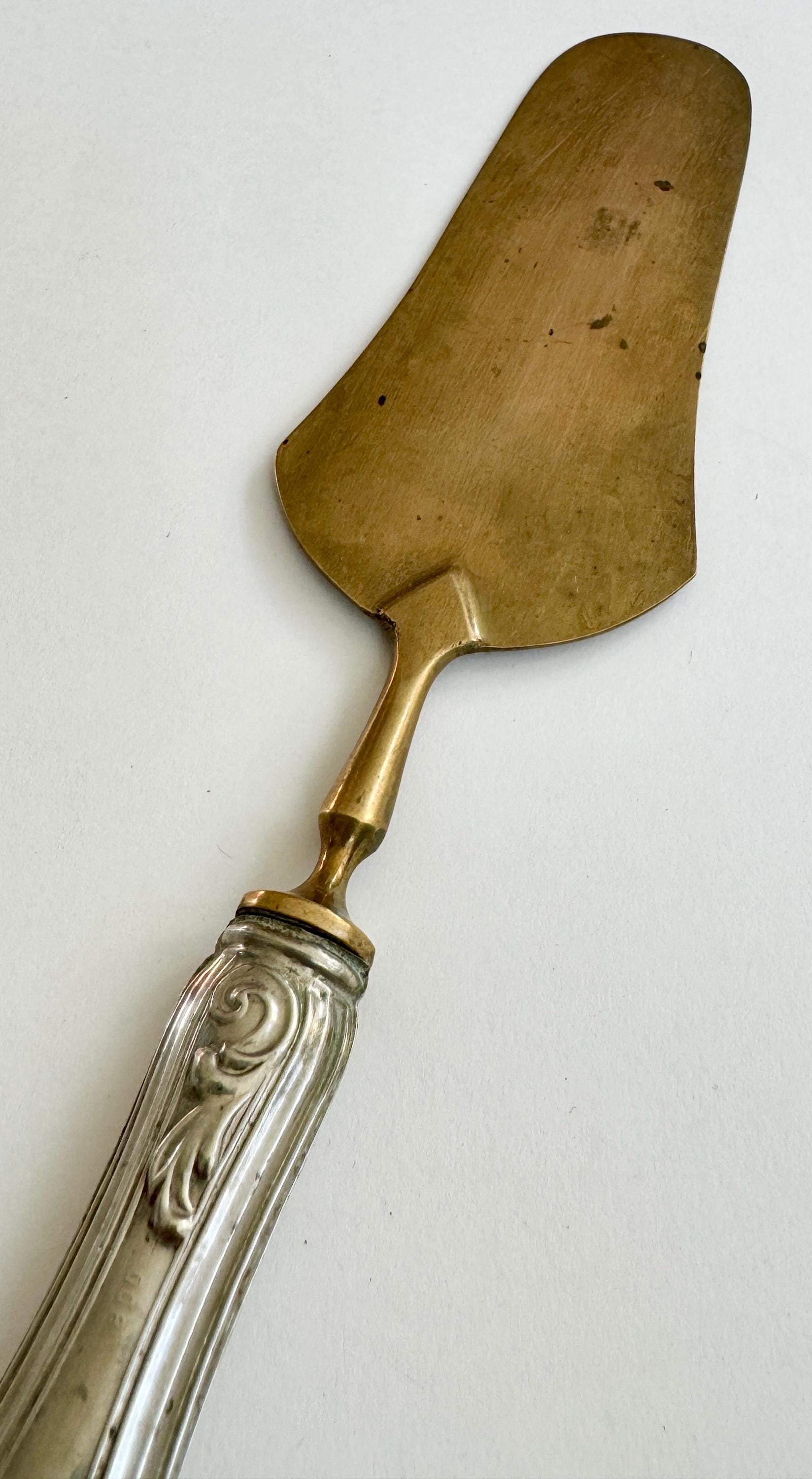 Antique French Cake Server Cake Pie Knife Vintage Paris Flea Market Find Ornate Decorative Silver Plate Embossed Brass Wedding Something Old