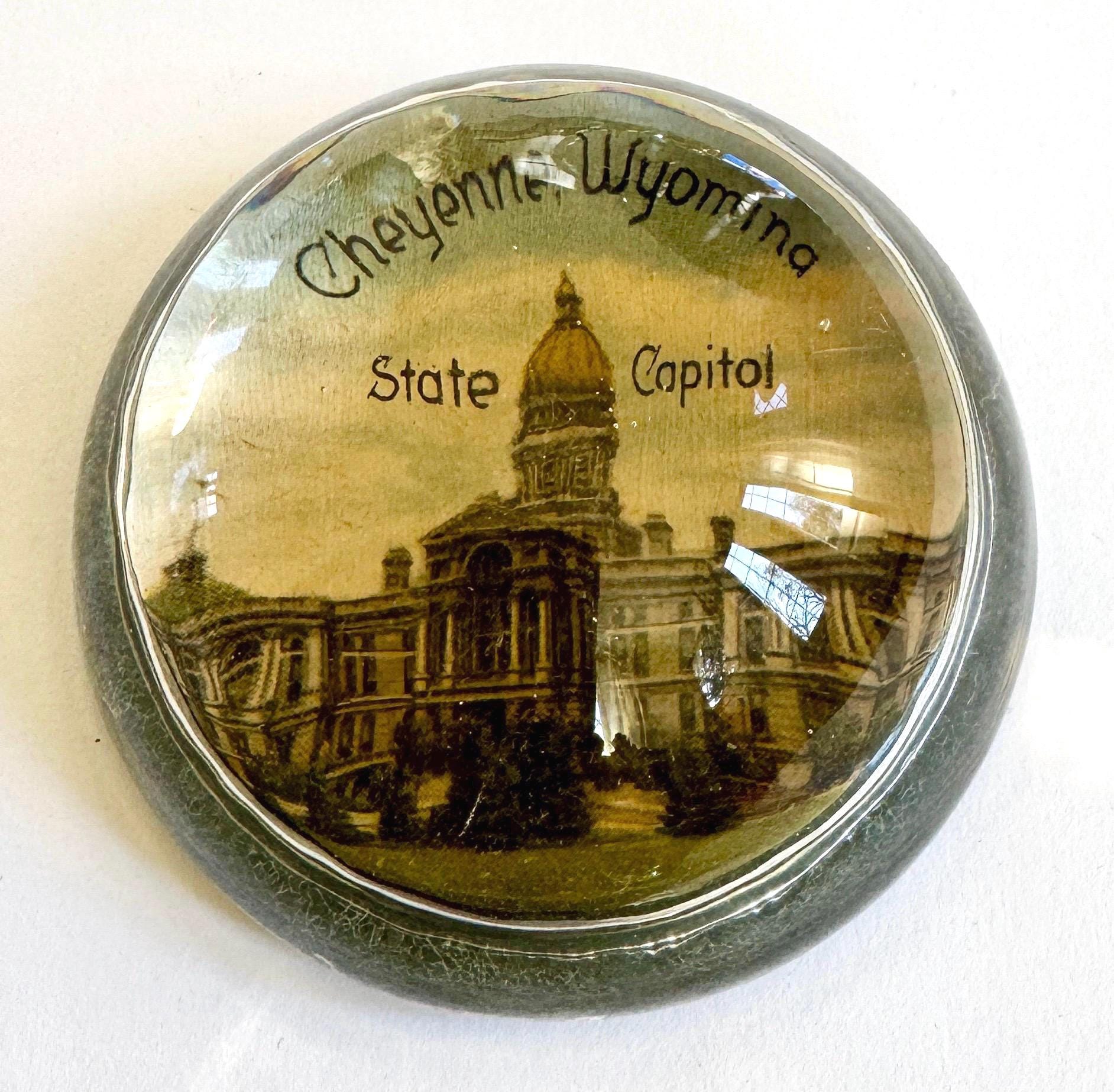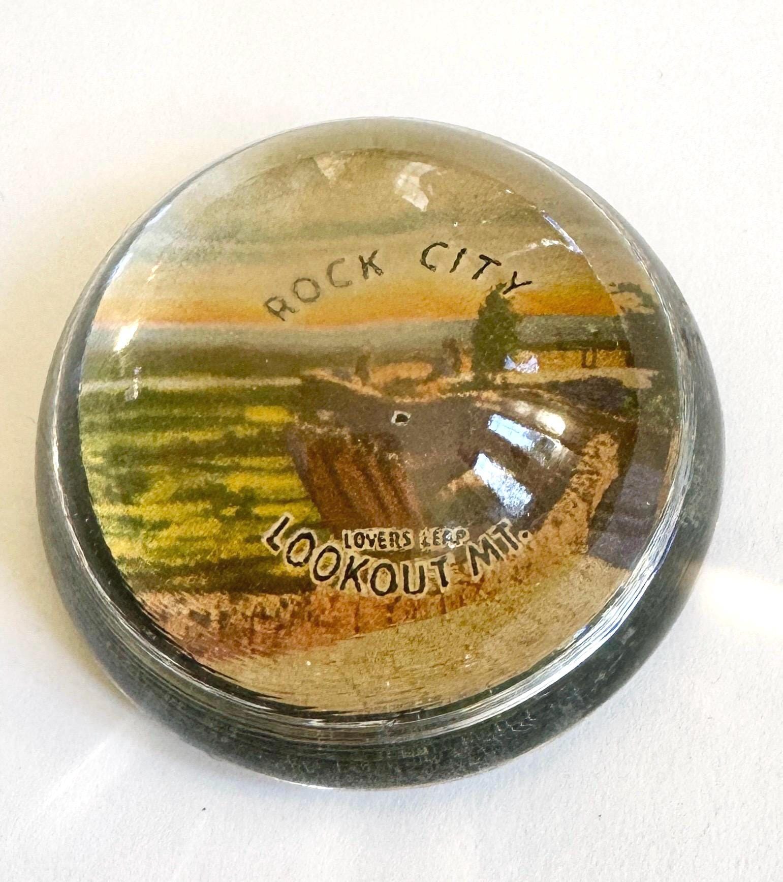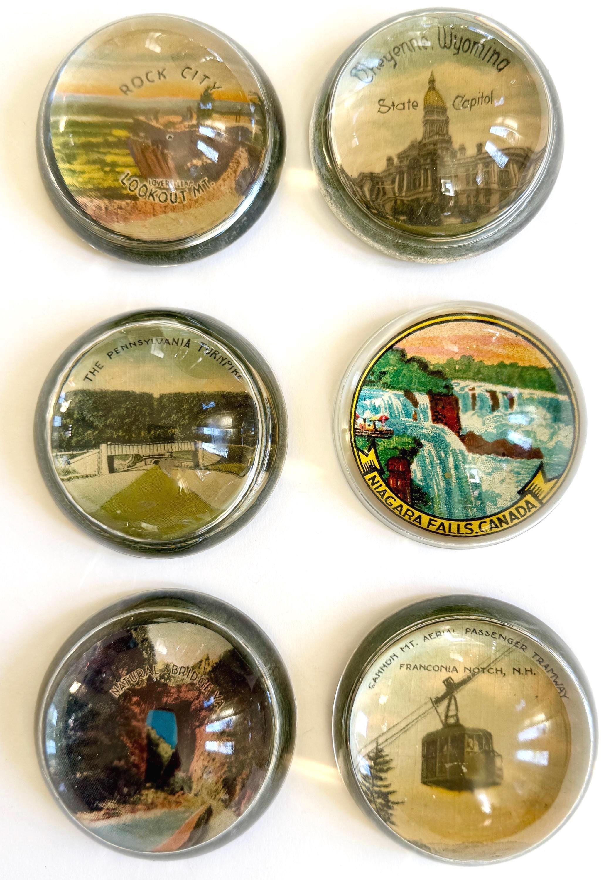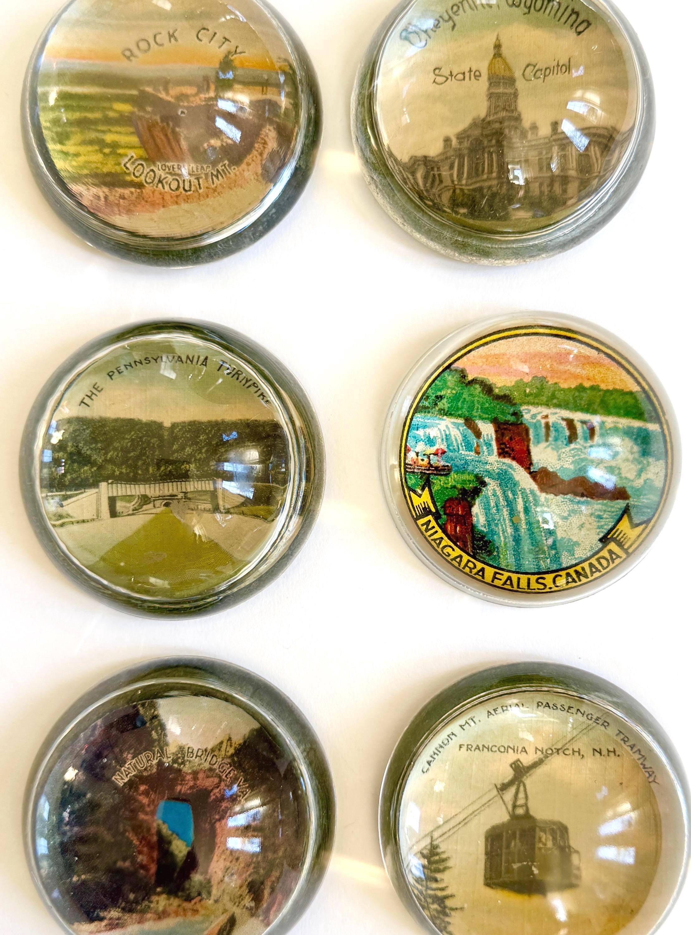 Vintage Souvenir Glass Dome Paperweight: Niagara Falls, Rock City, Cheyenne