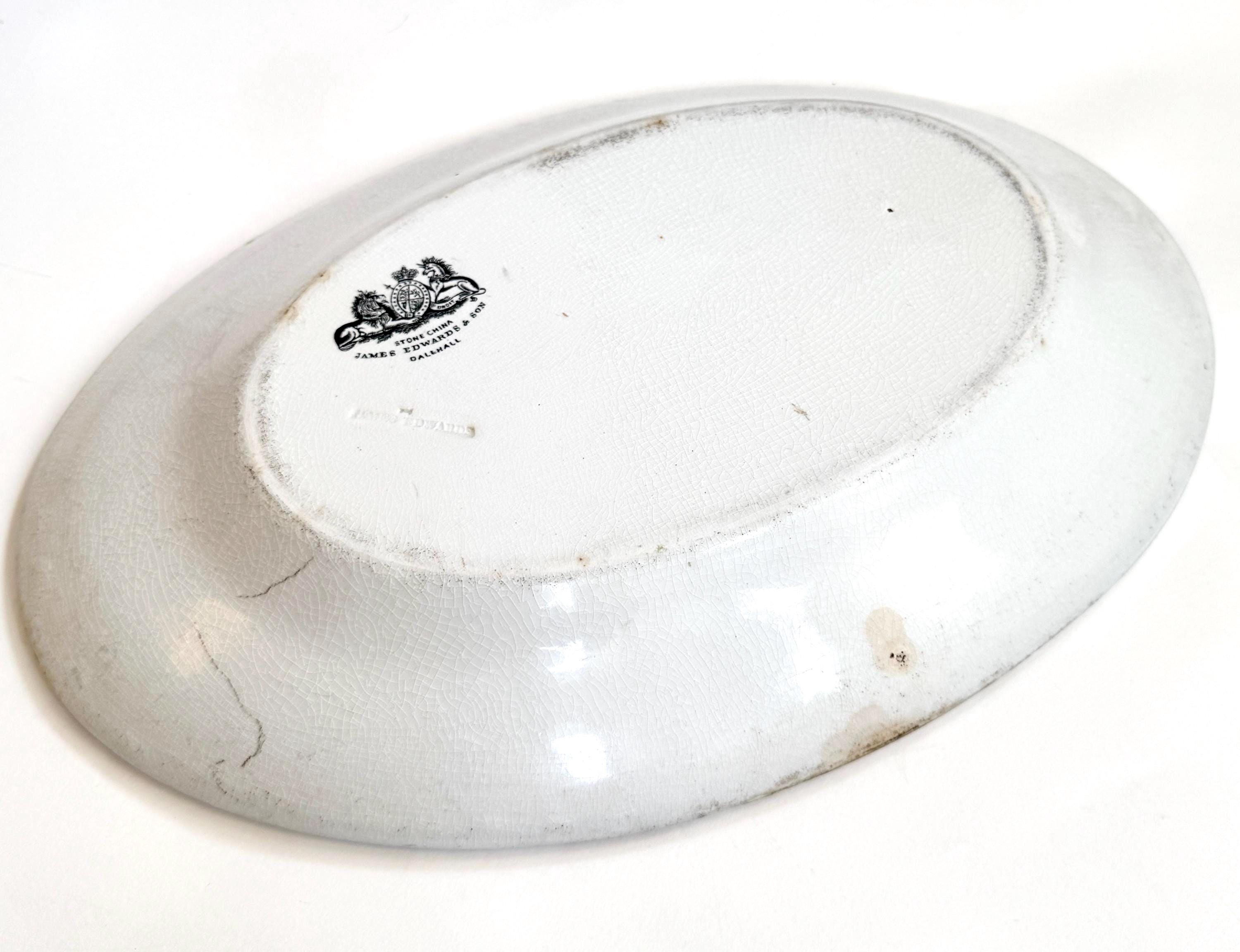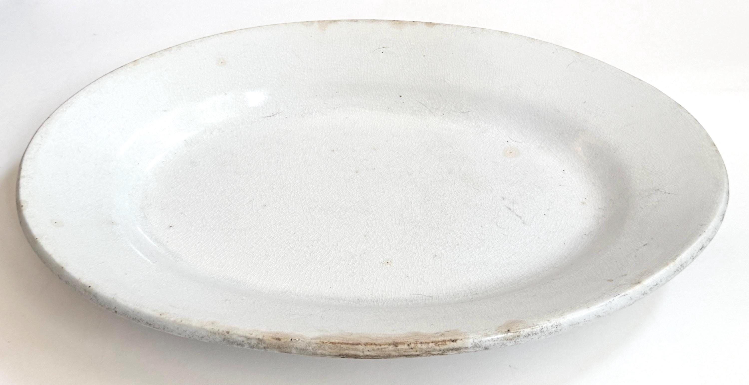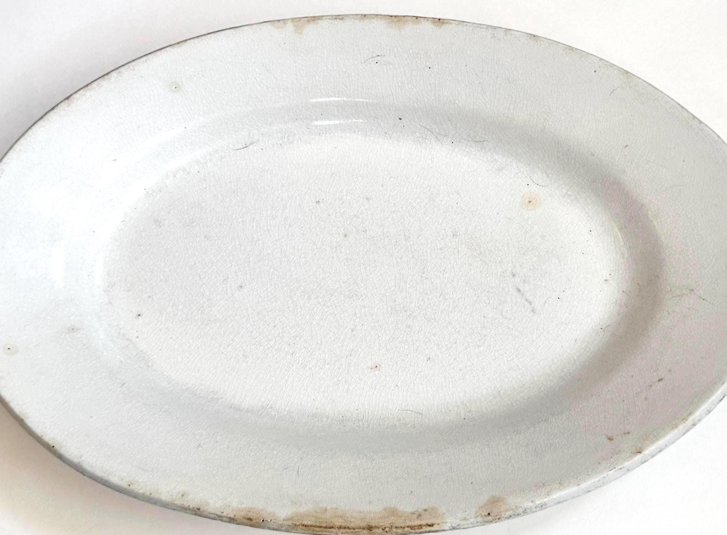 Vintage White Ironstone Platter Large Oval Farmhouse Serving Plate Made in England by James Edwards & Sons