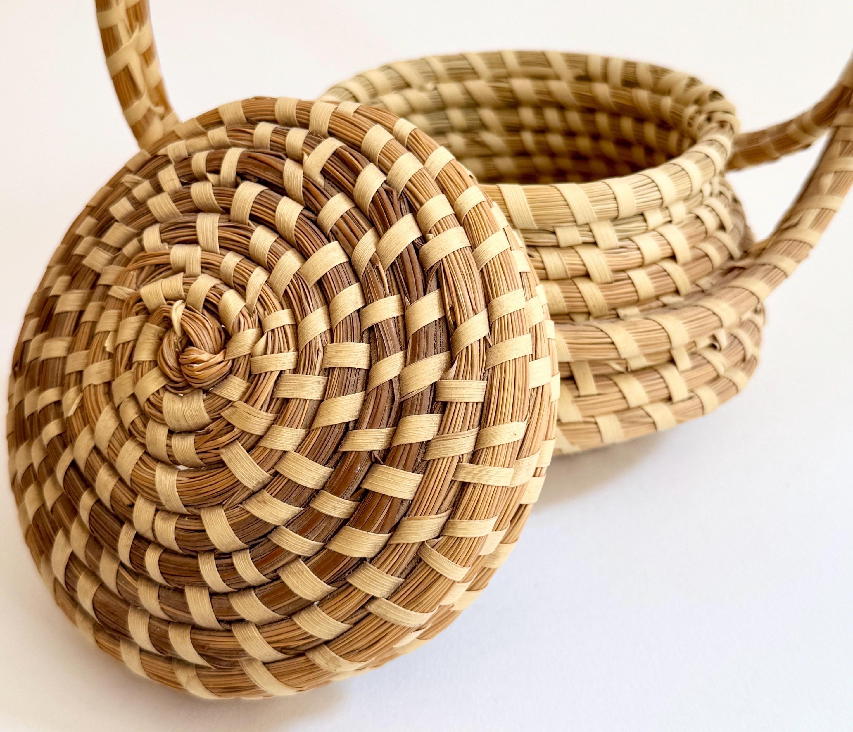 Handwoven Sweetgrass Basket with Lid: Charleston Gullah Folk Art