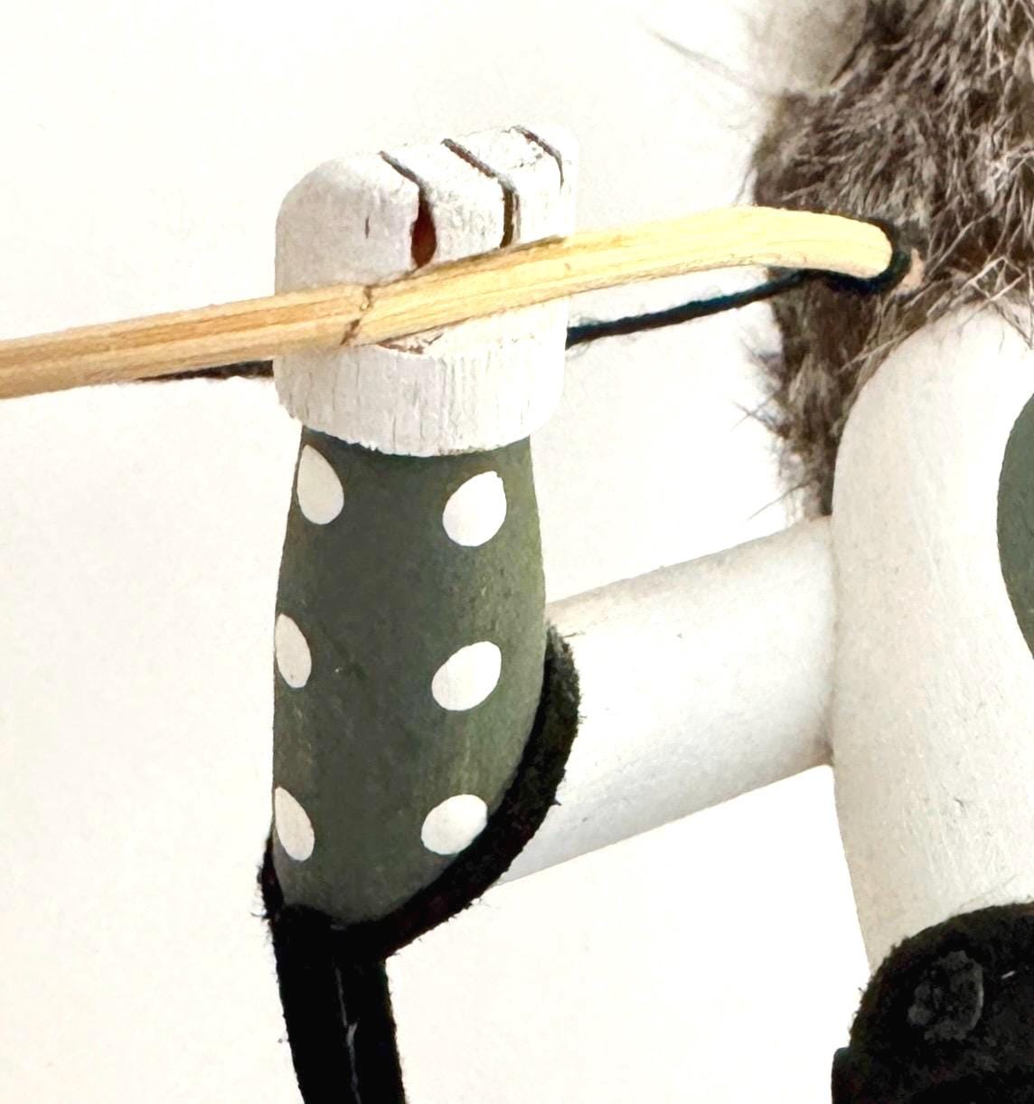 Intricate Southwest Native American handmade vintage wolf kachina doll holding a wooden bow