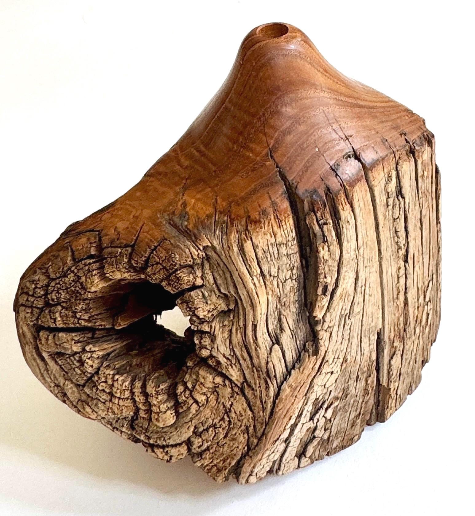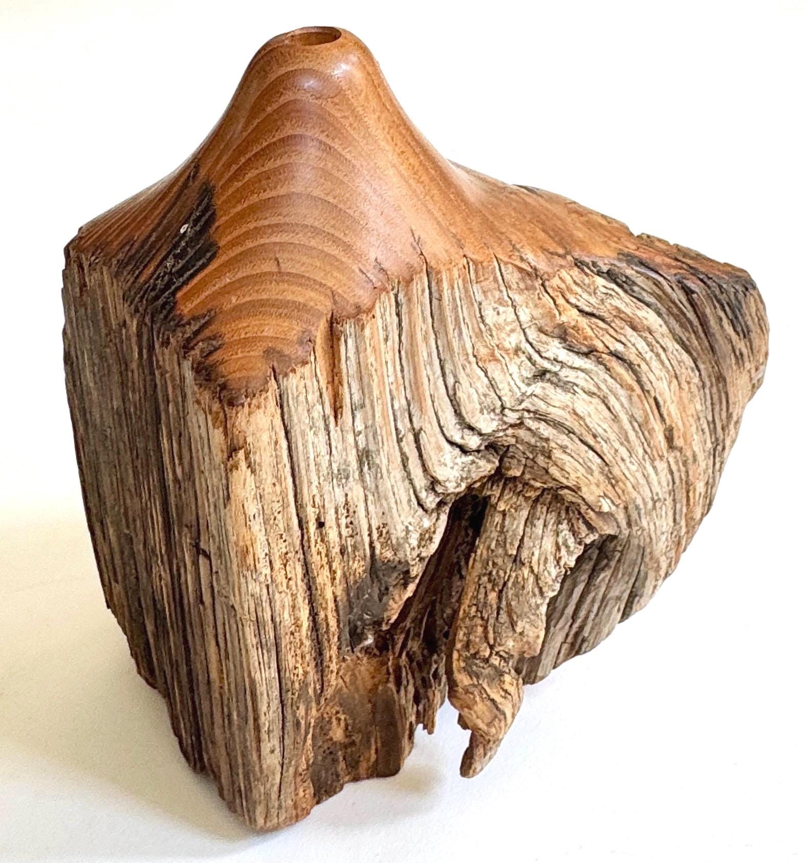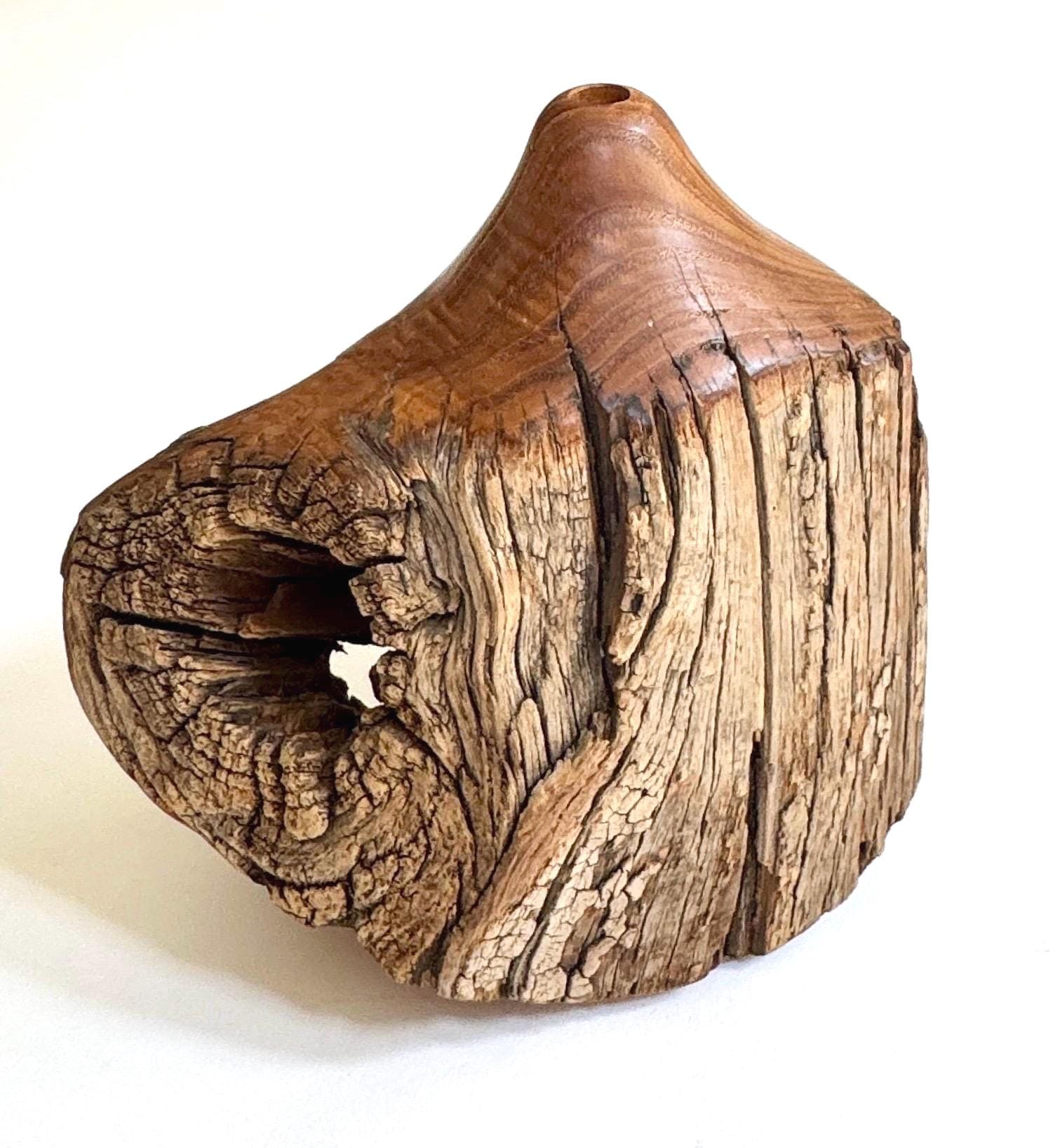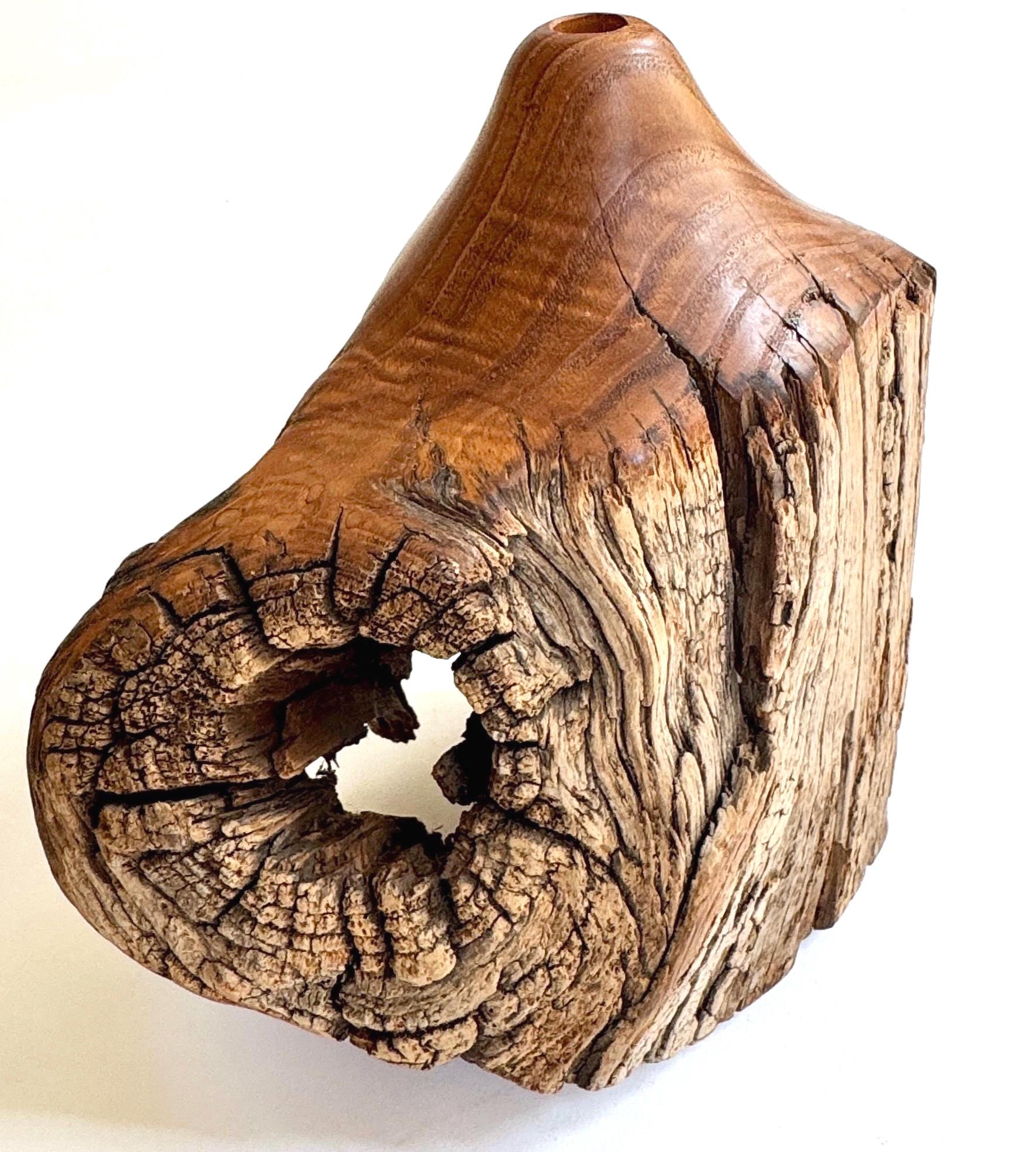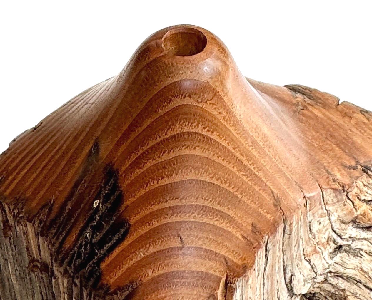 Vintage hand-carved Locust wood sculptural bud vase