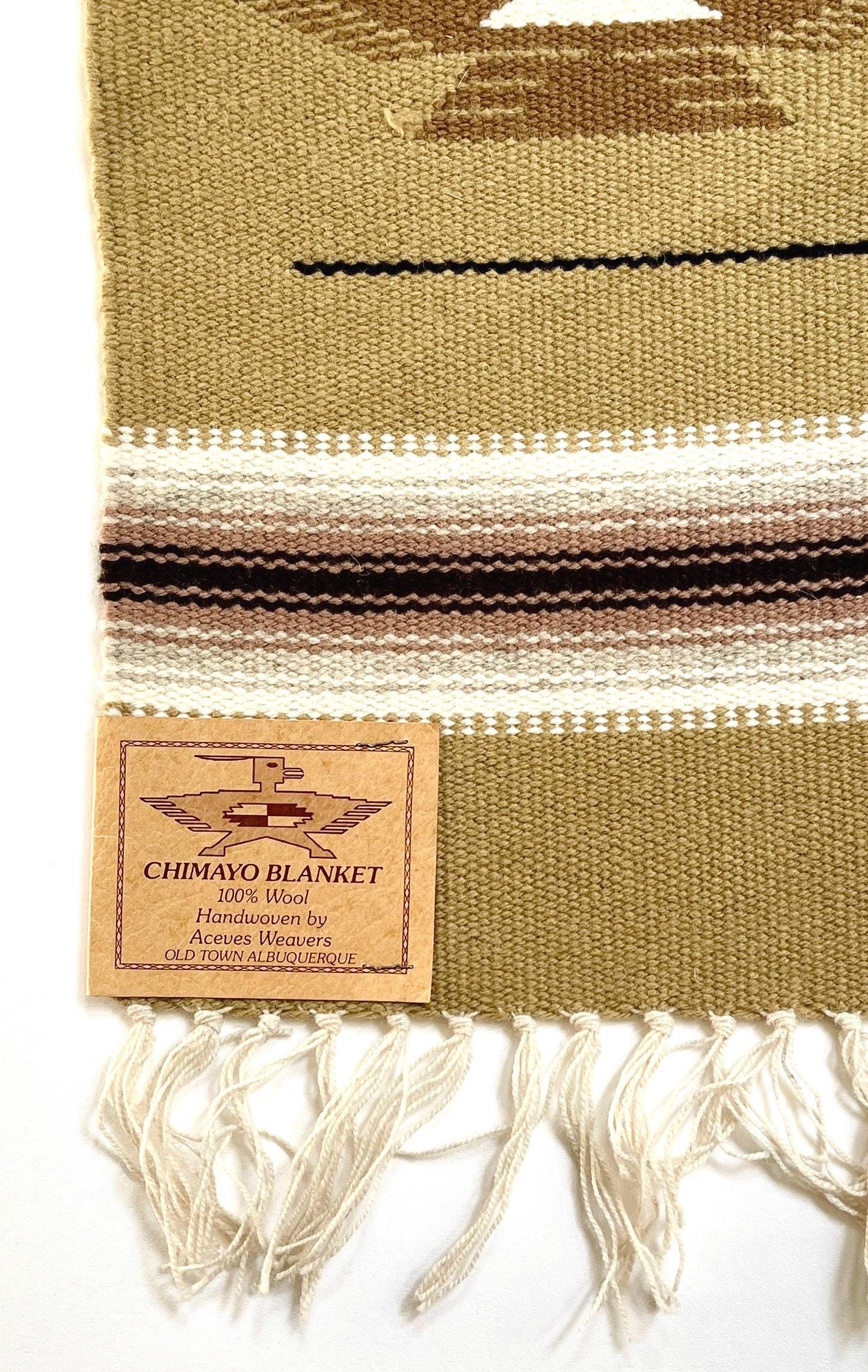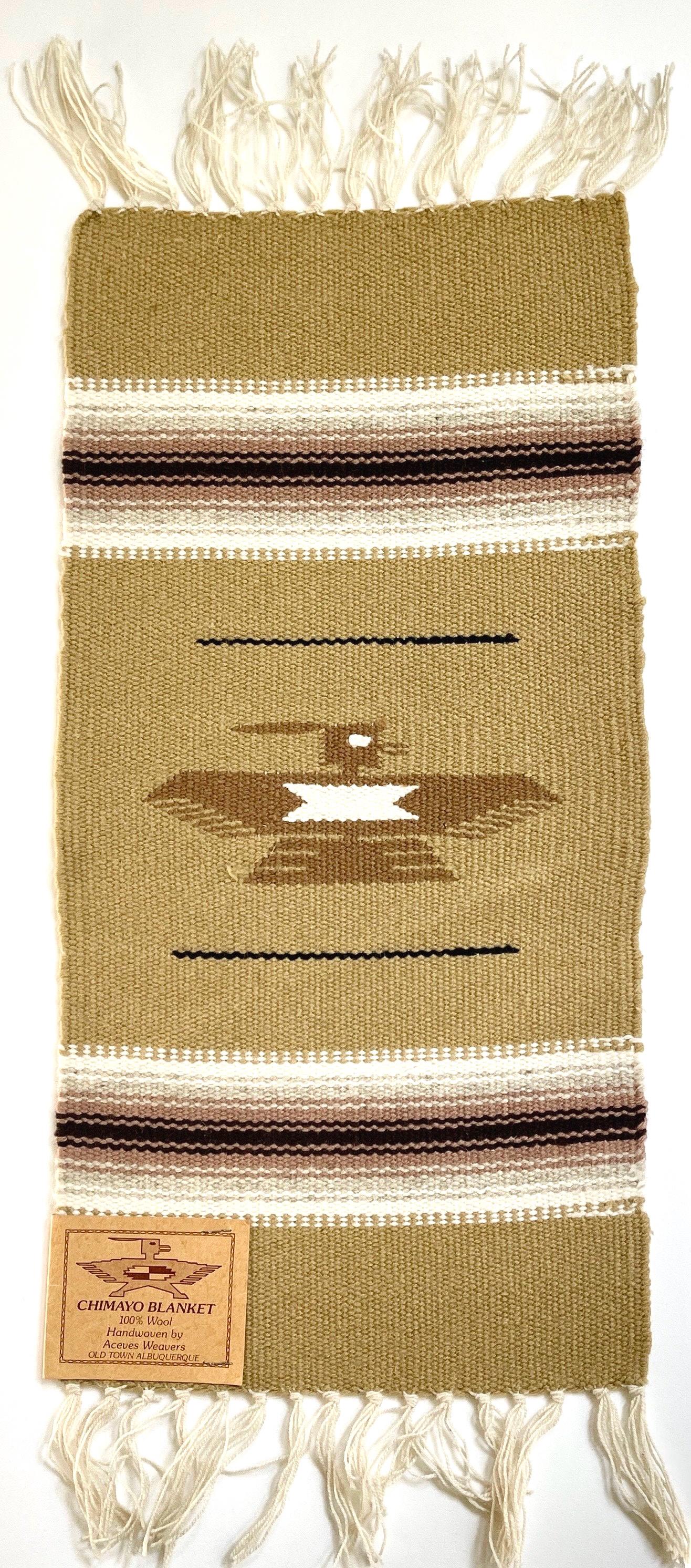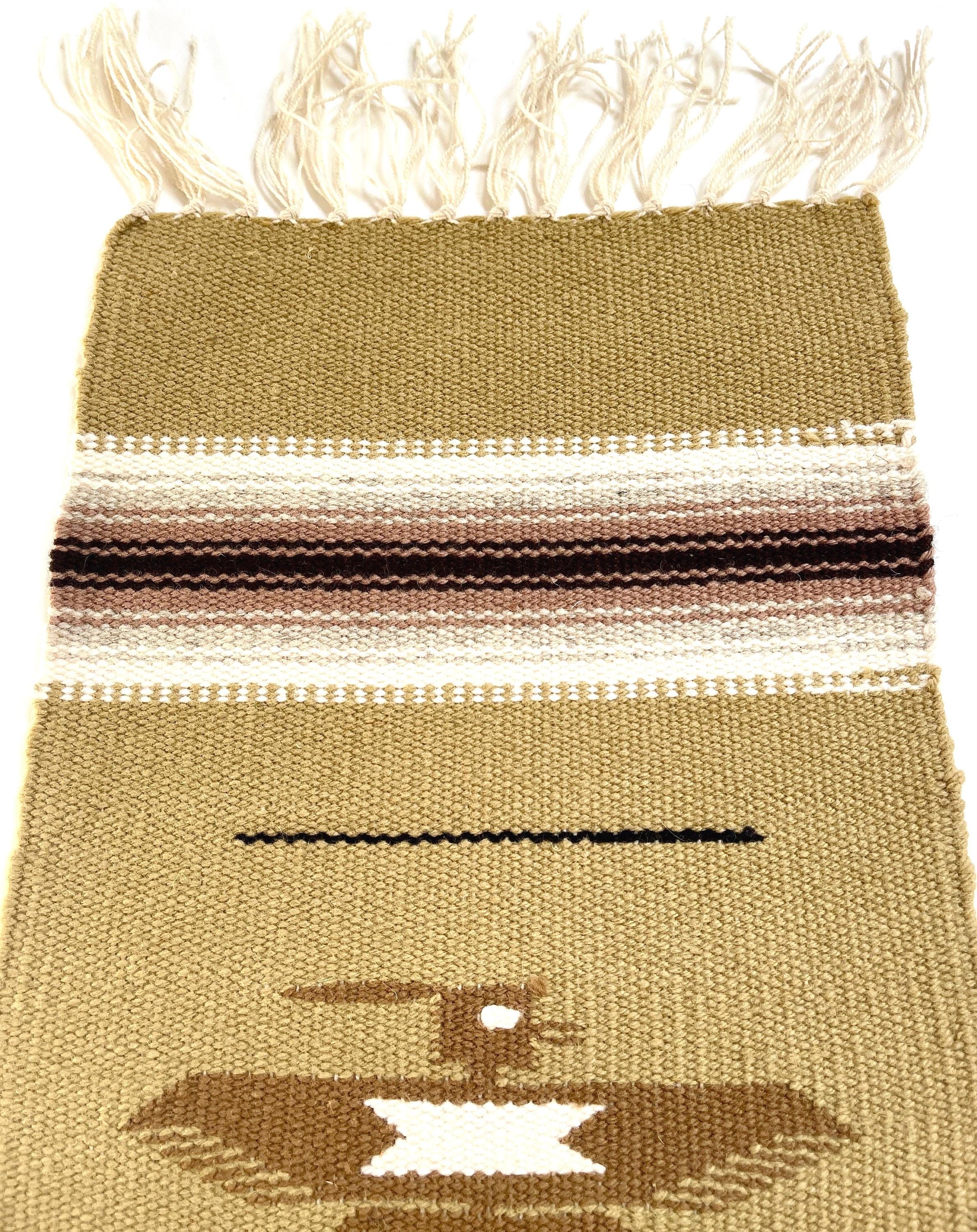 Vintage Chimayo Thunderbird Weaving Handwoven Wool Table Runner Mat Wall Hanging Original Chimayo Blanket Weavers Label Neutral Earth Tone