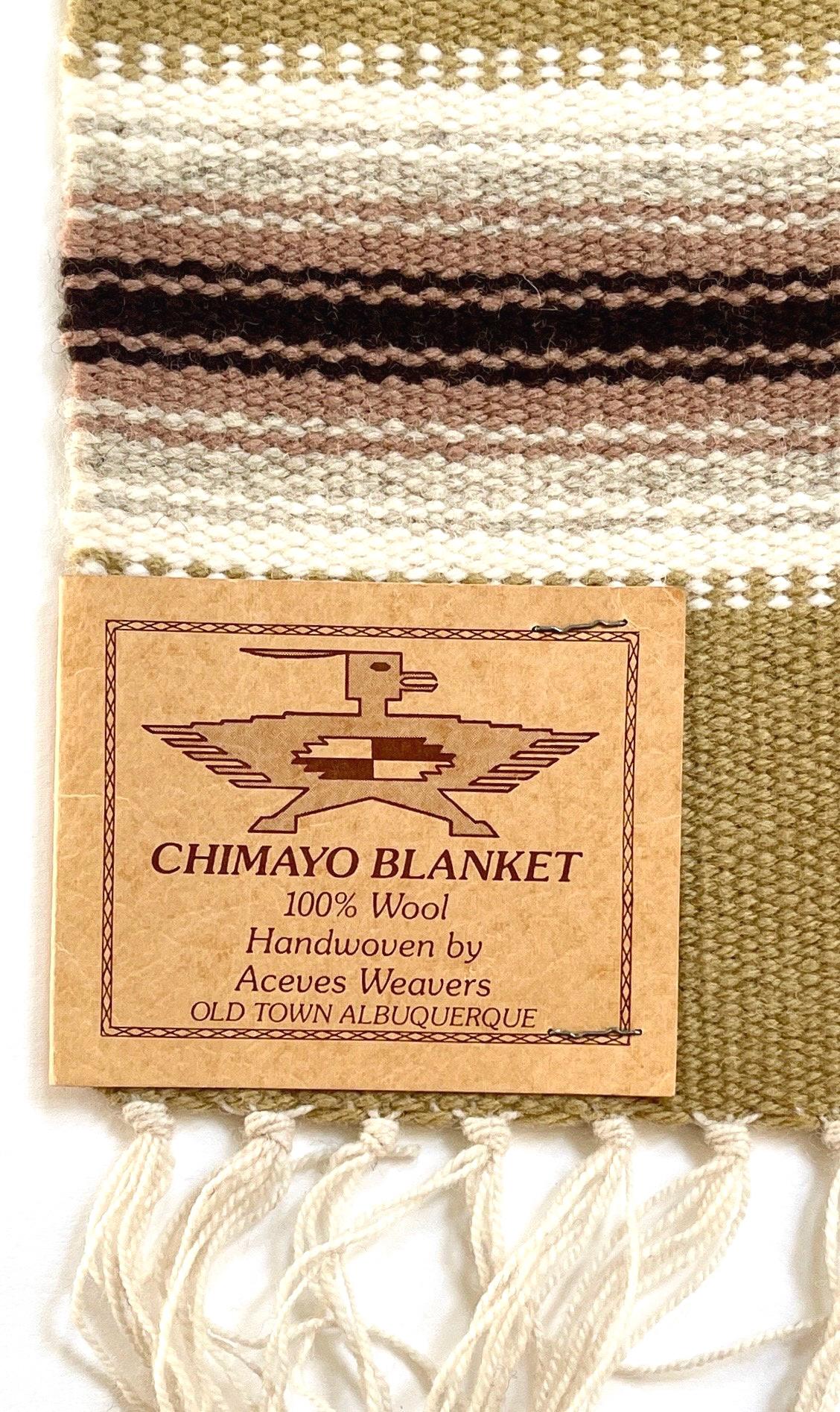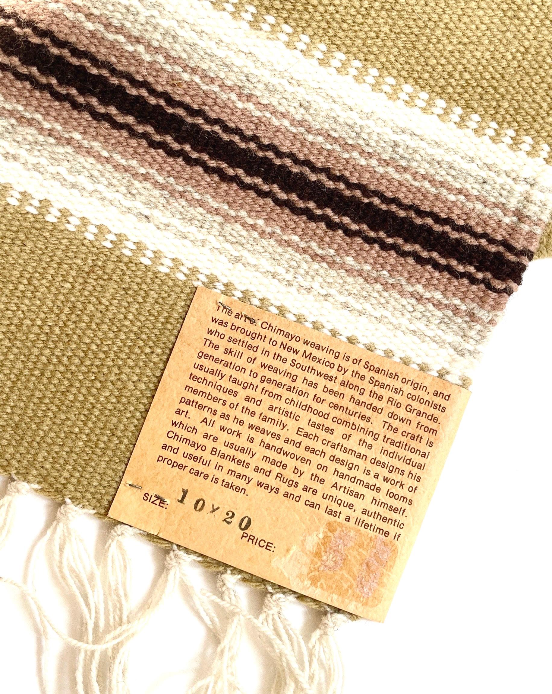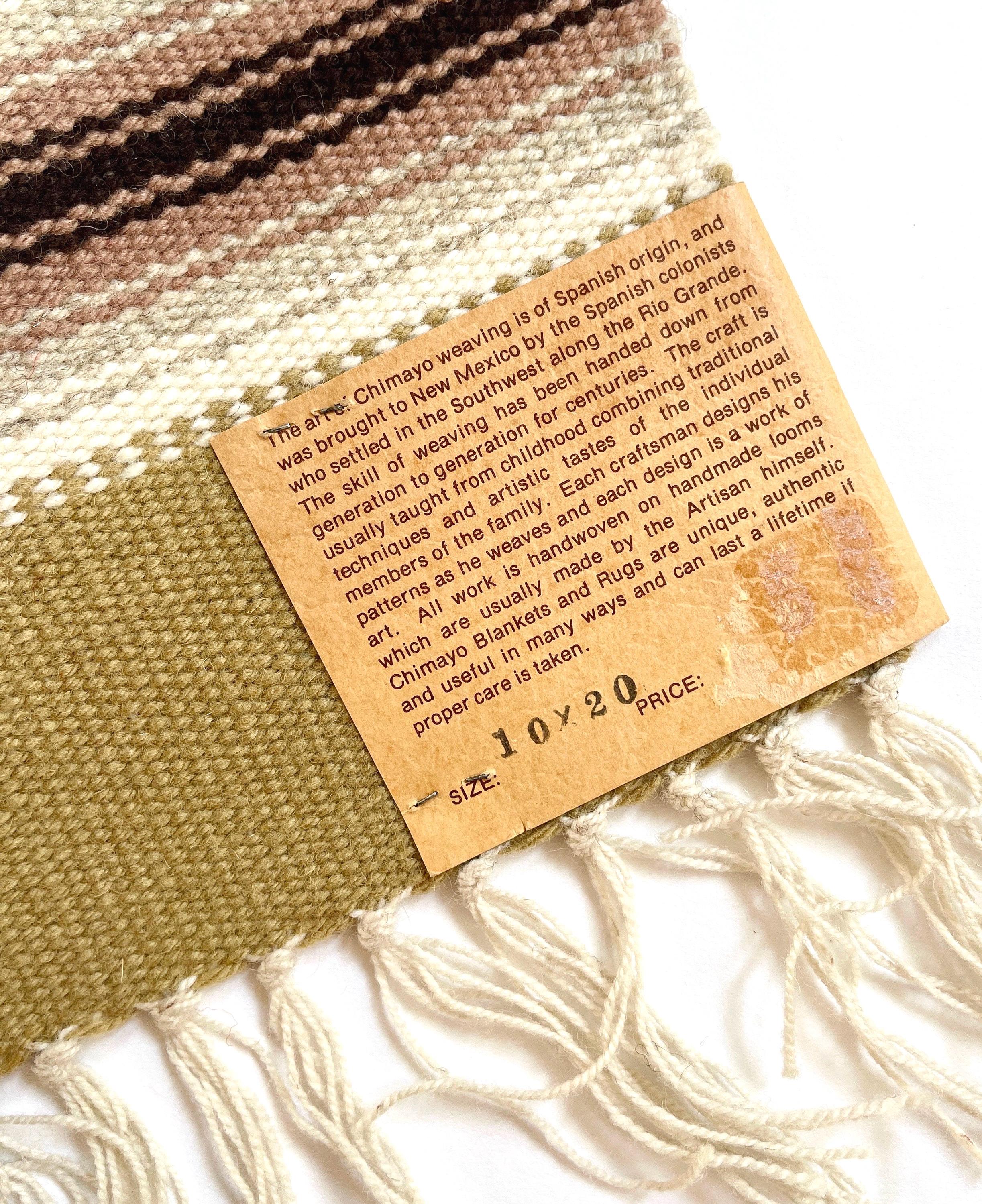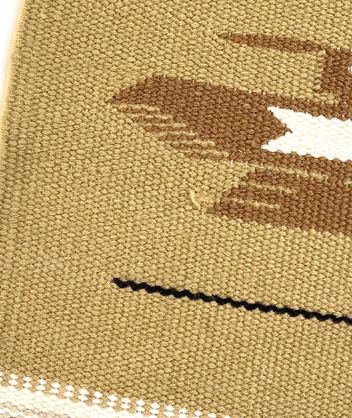 Vintage Chimayo Thunderbird Weaving Handwoven Wool Table Runner Mat Wall Hanging Original Chimayo Blanket Weavers Label Neutral Earth Tone