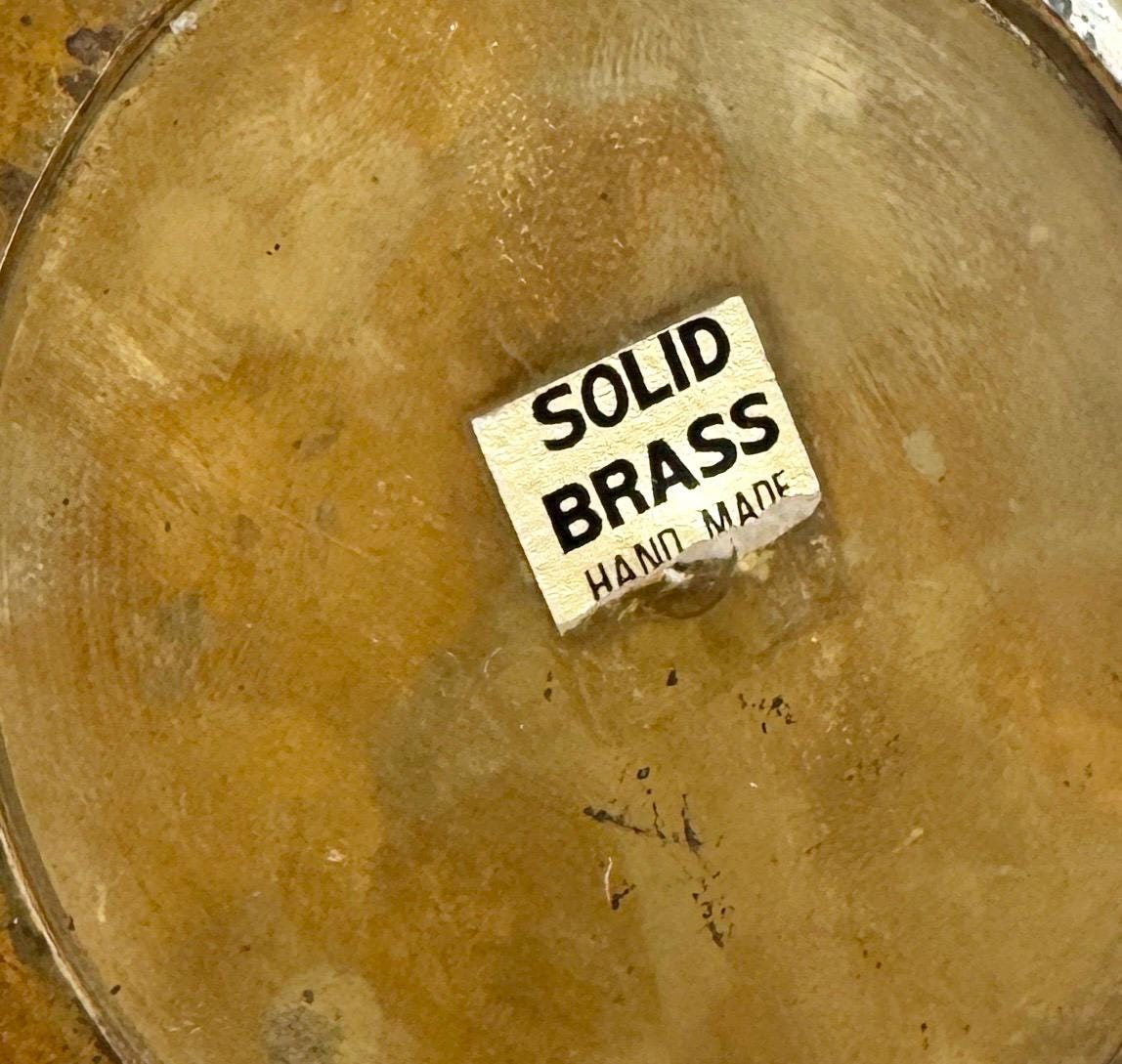 Old "SOLID BRASS / HANDMADE" sticker at base