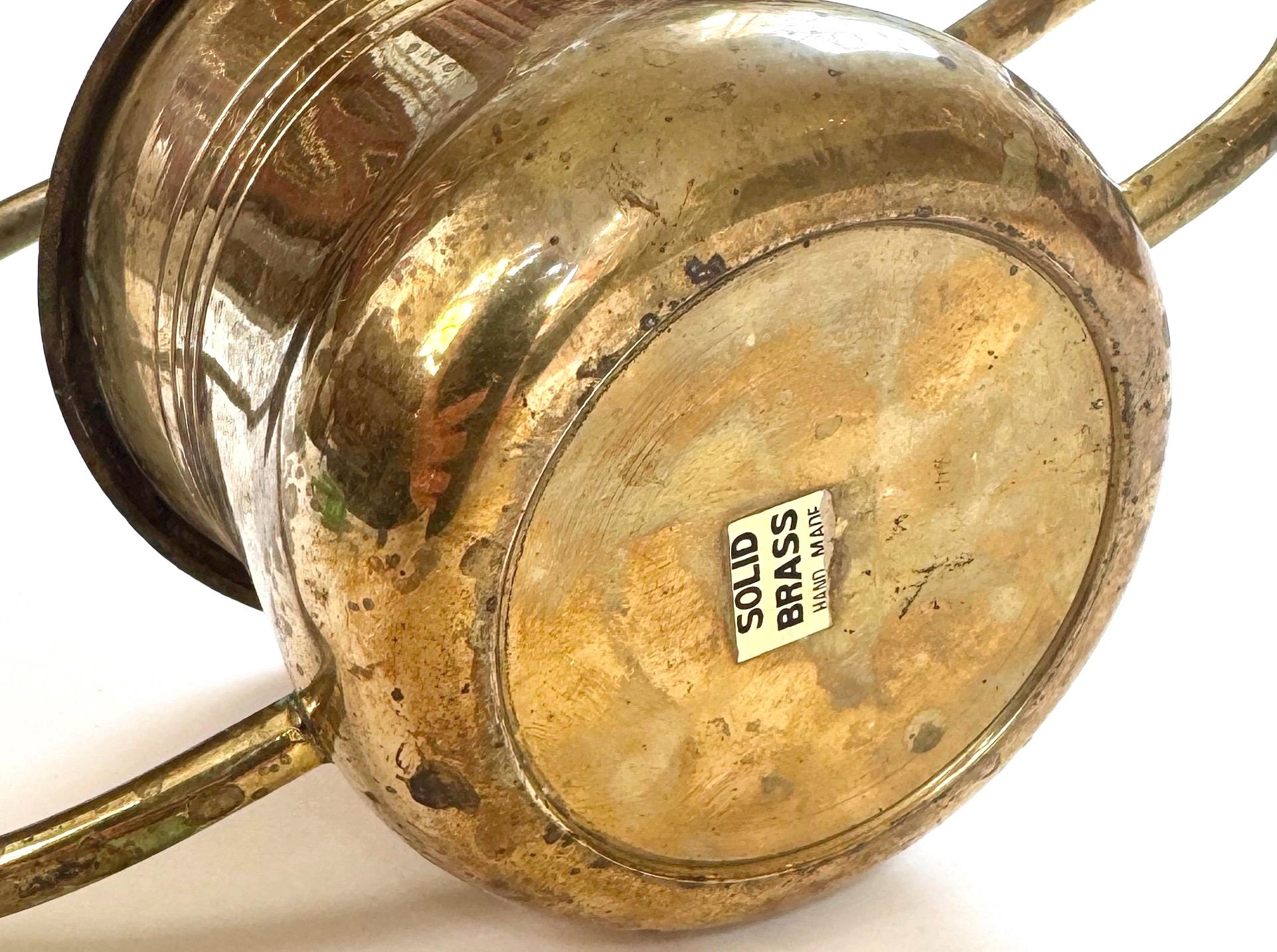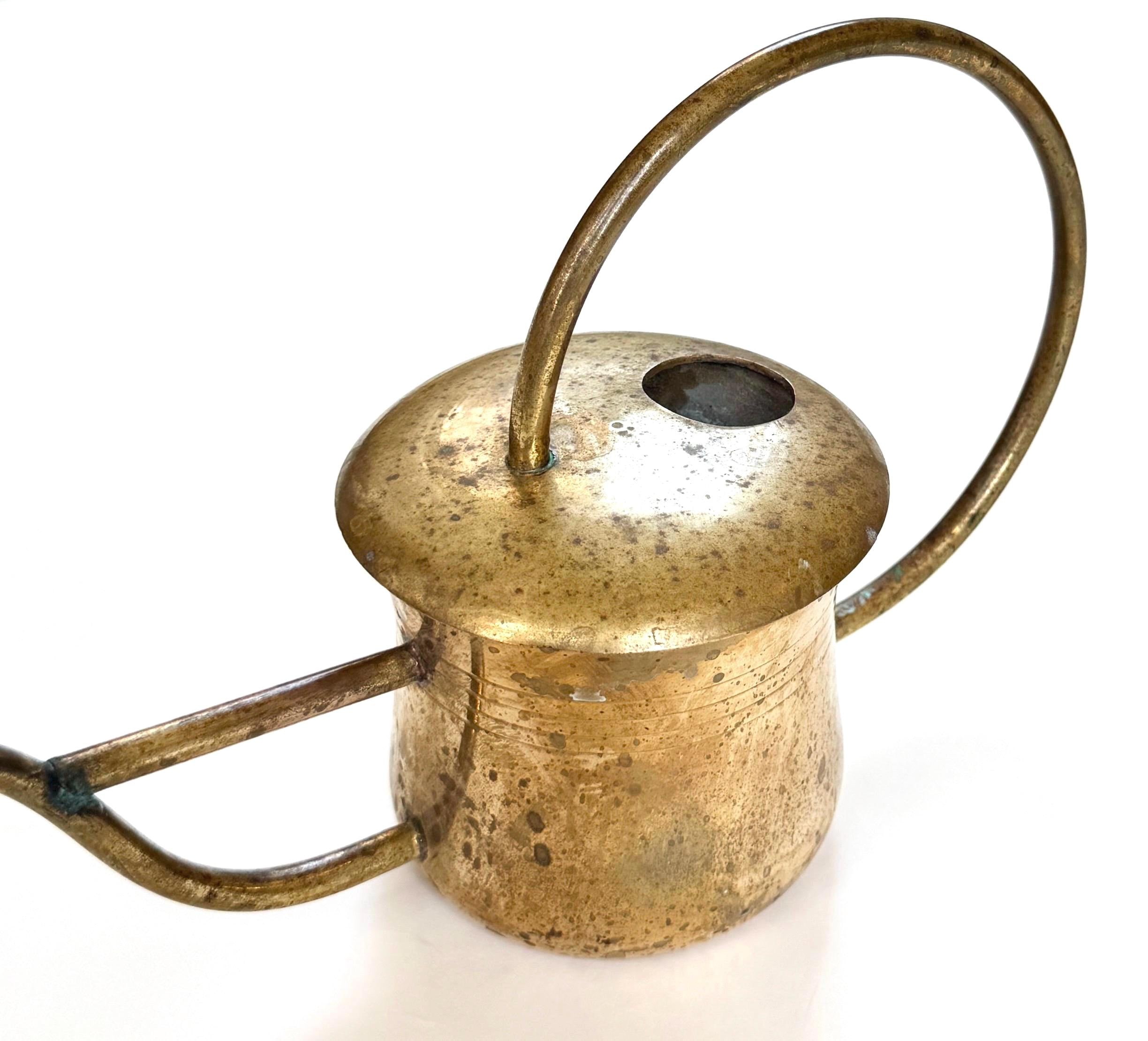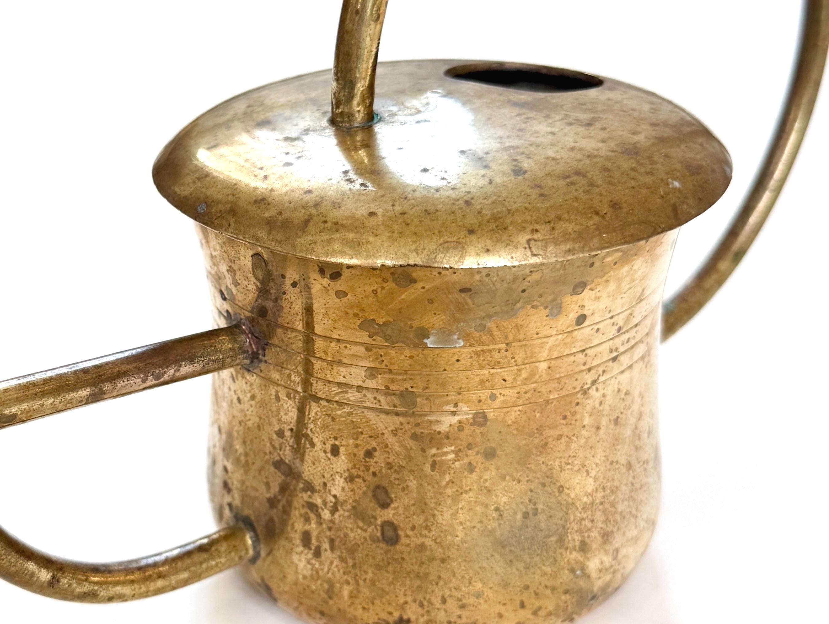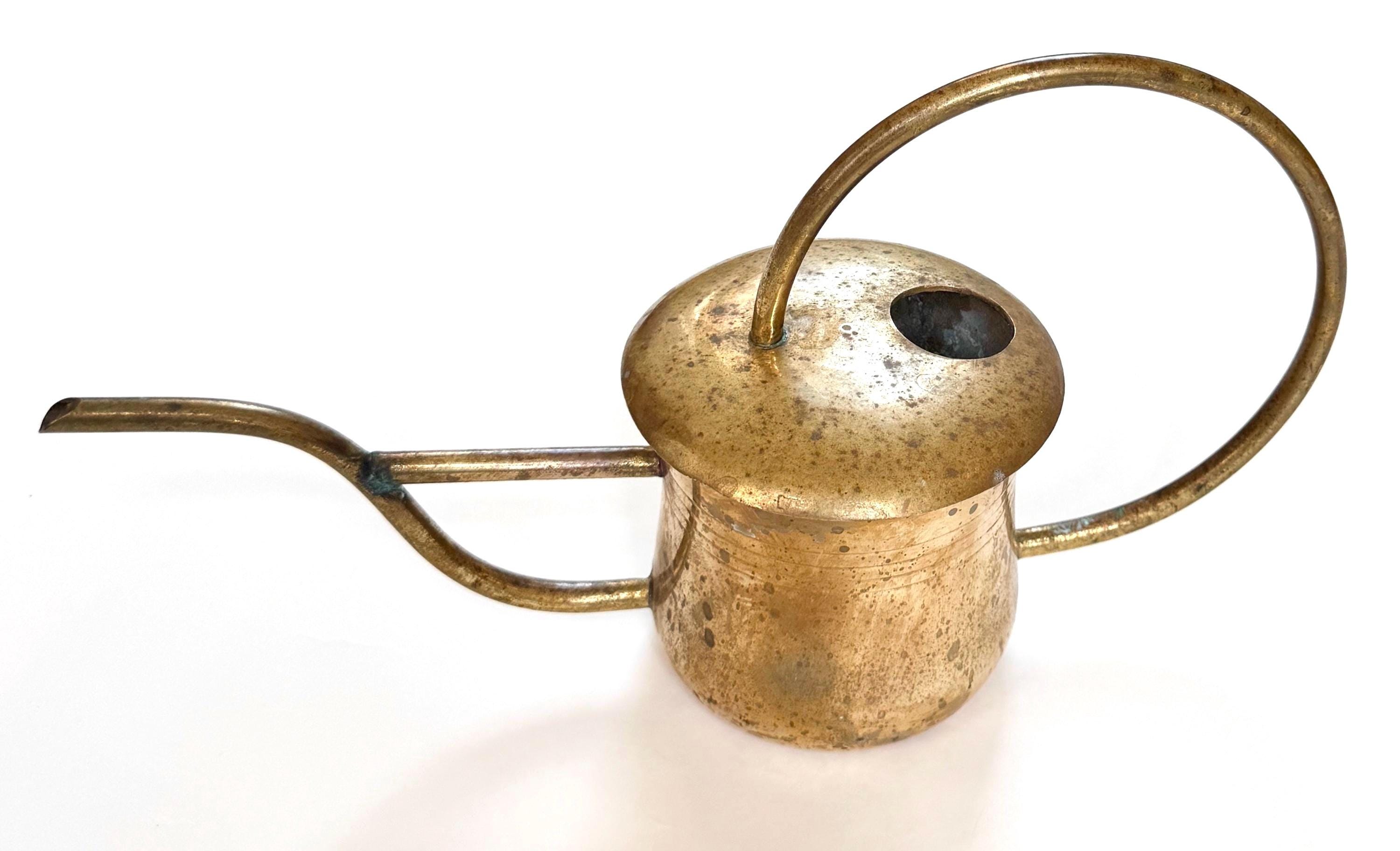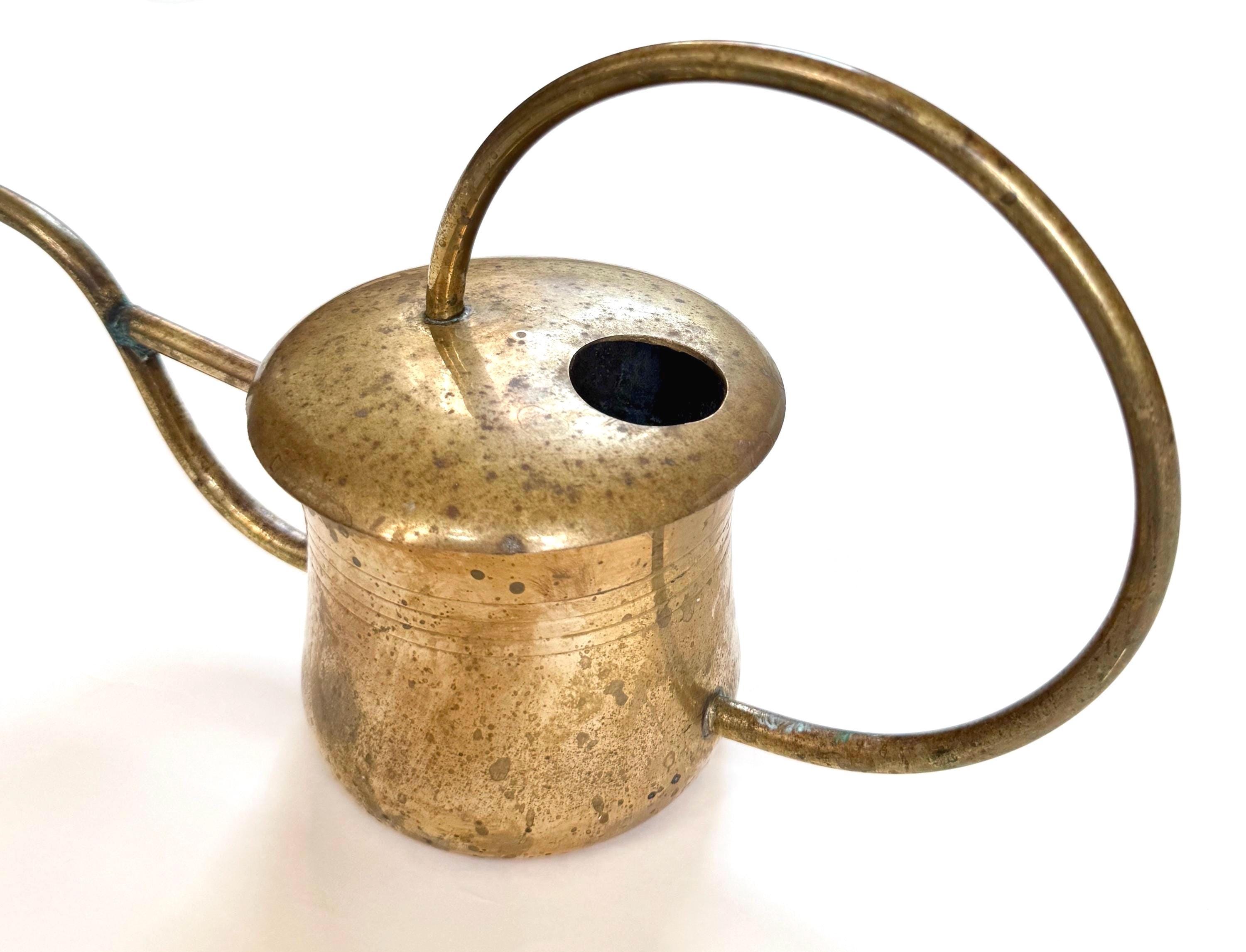 Solid Brass Watering Can Vintage Handmade 60s 70s Long Slim Skinny Spout and Sculptural Round Handle Gift for Gardener