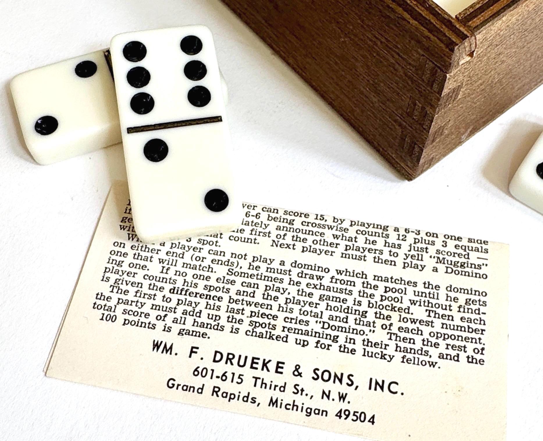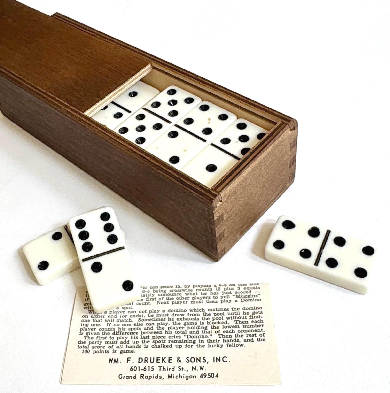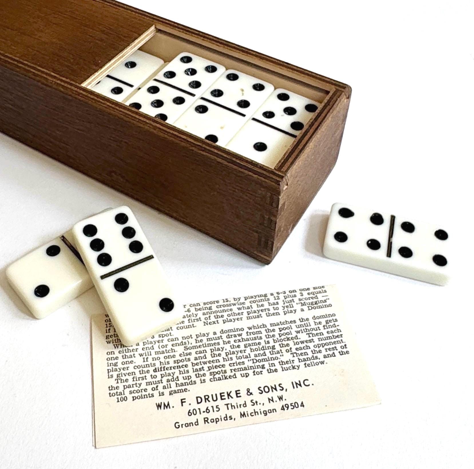 Mid Century Domino Set Vintage WM F. Drueke & Sons Dominos in Original Case Retro Tile Games