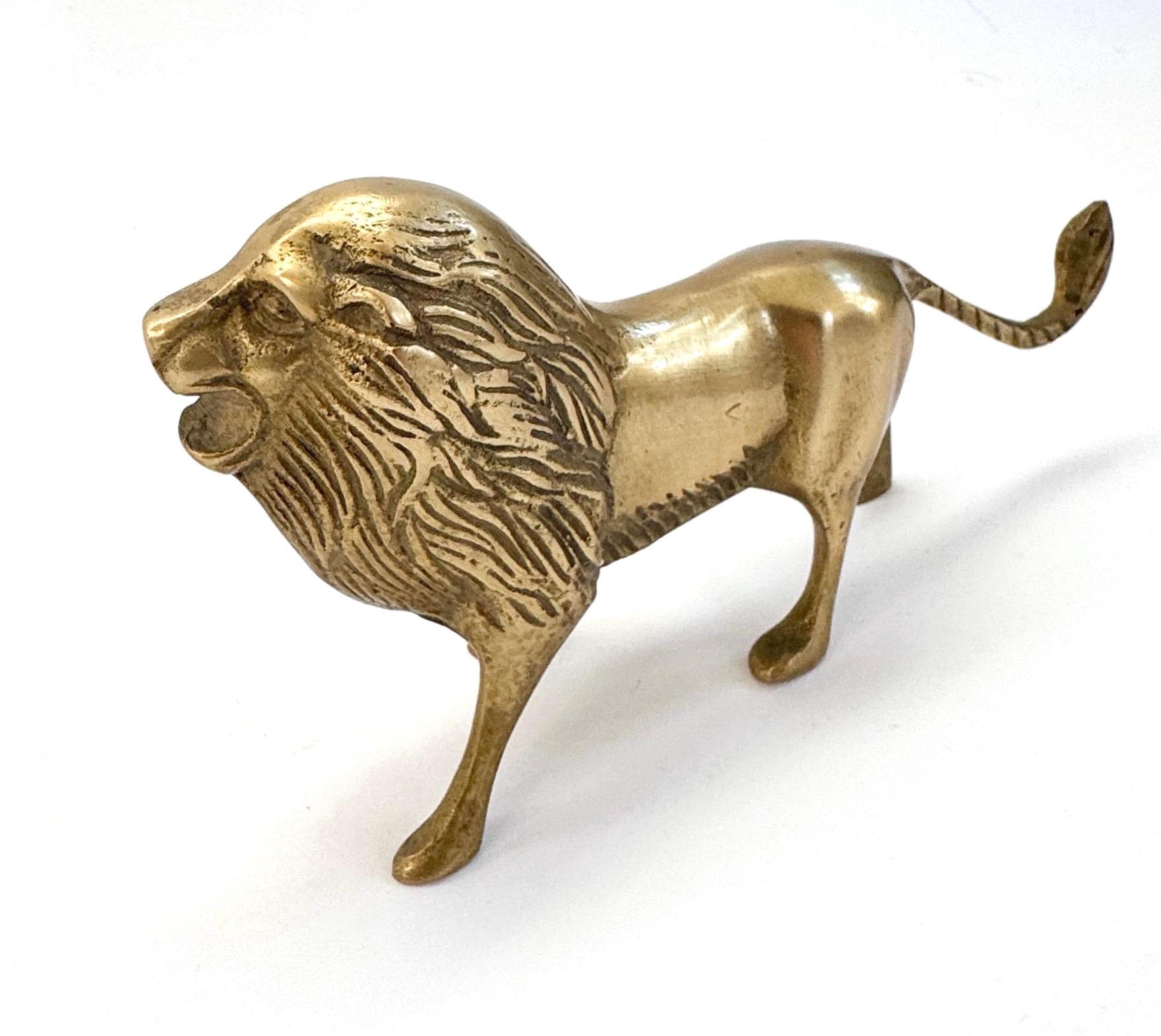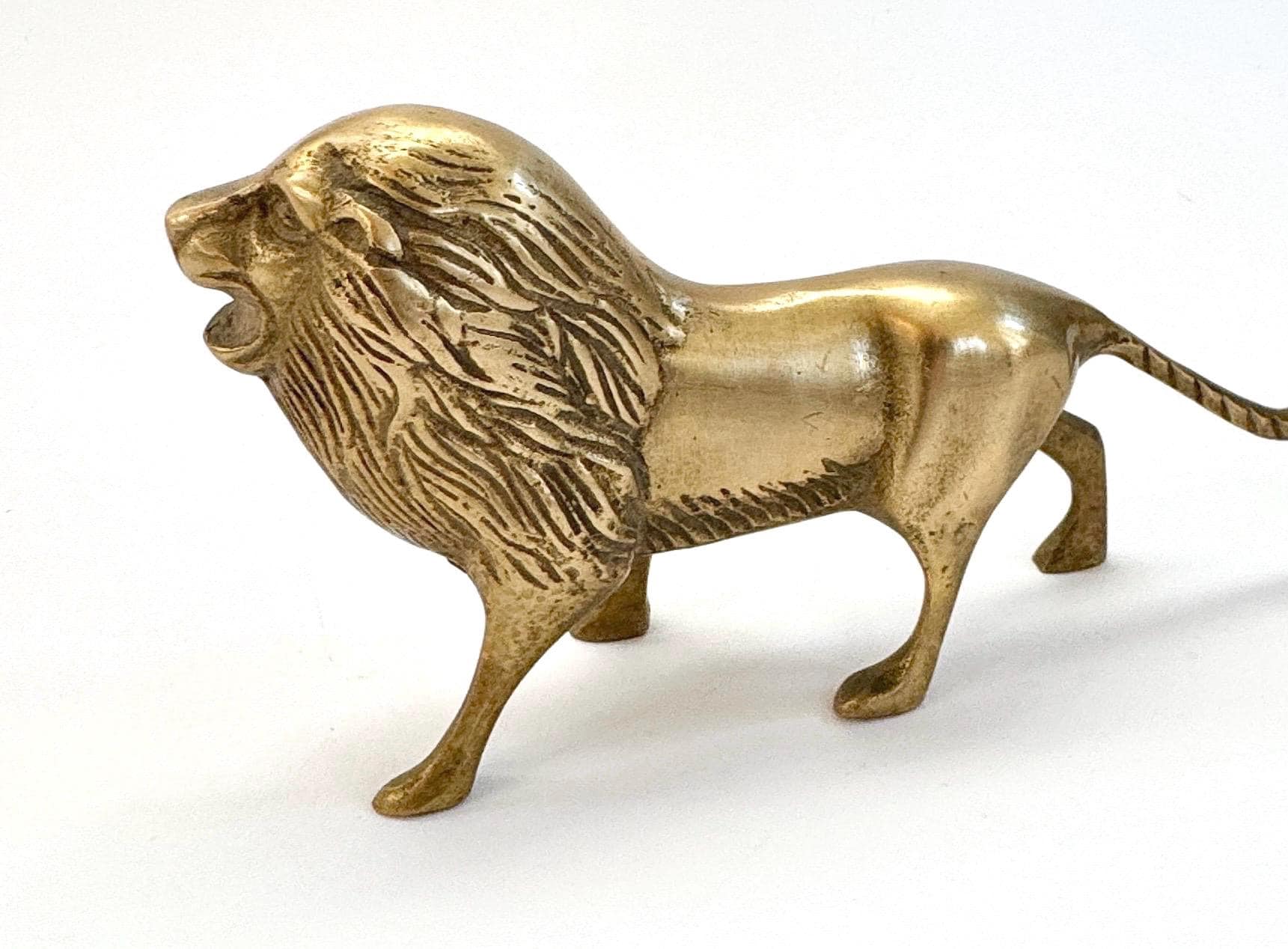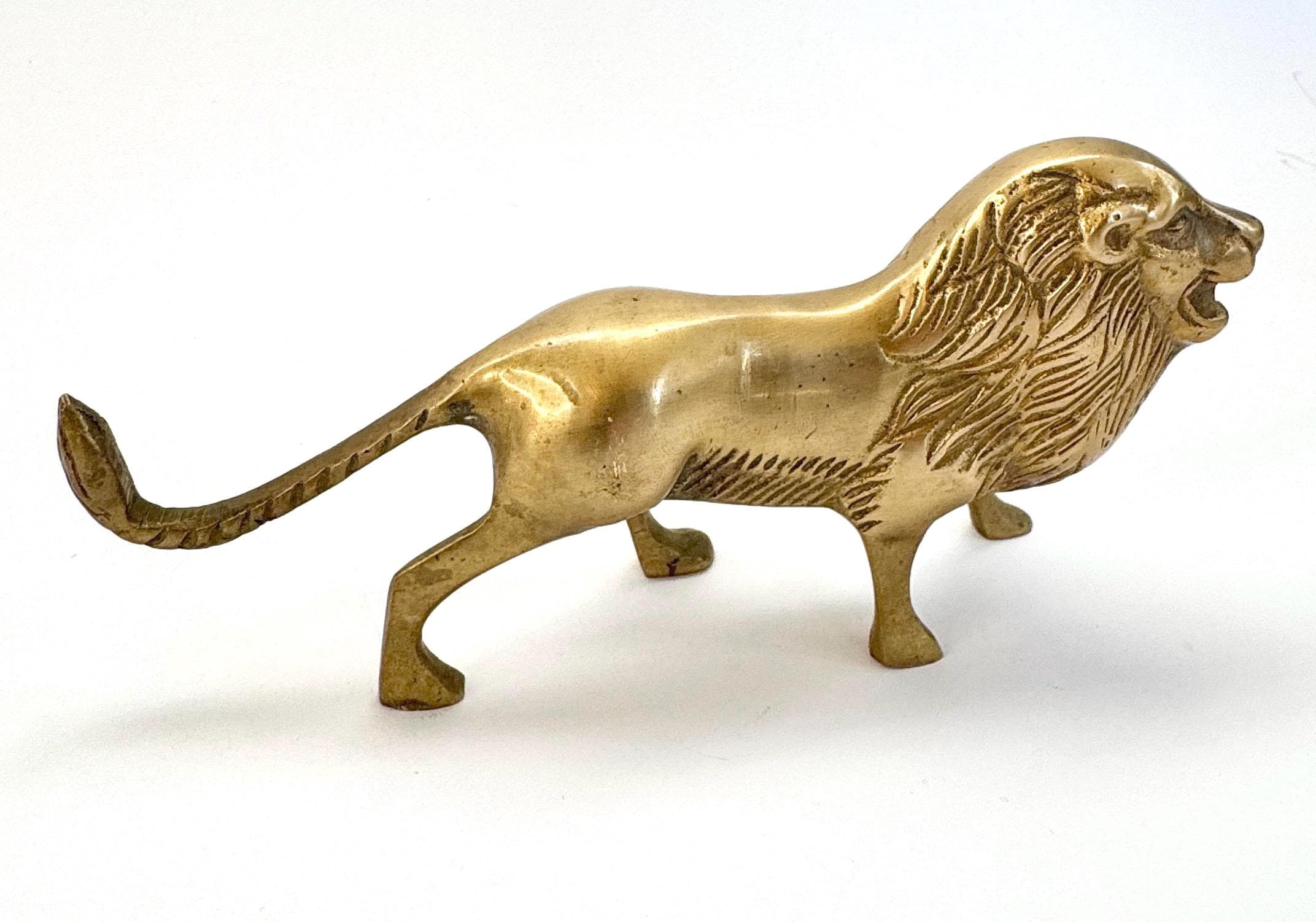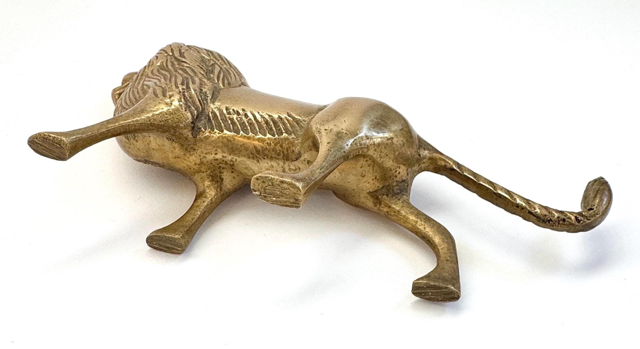 Vintage Brass Lion Figurine Mid Century Feline Animal Figure &"