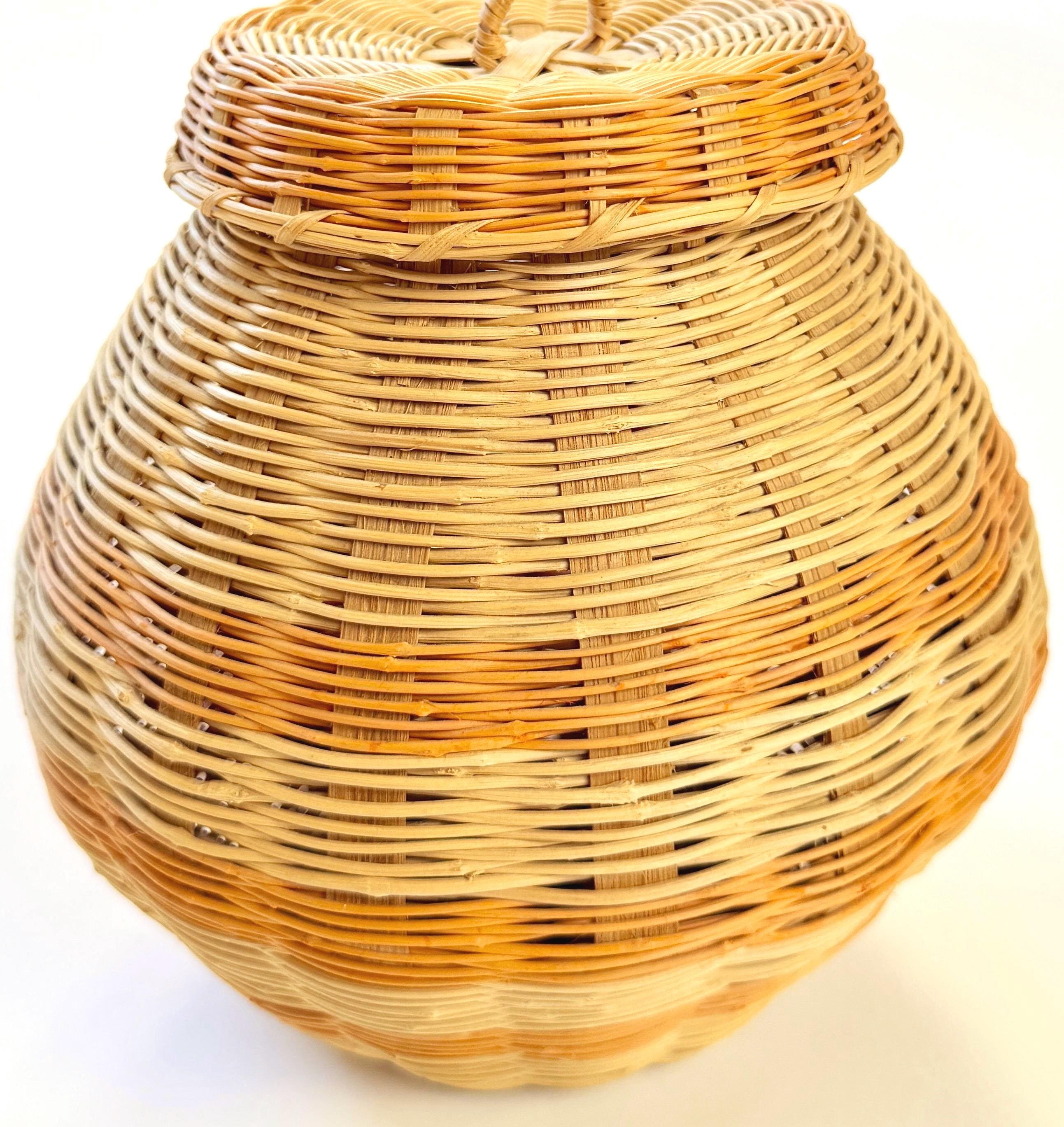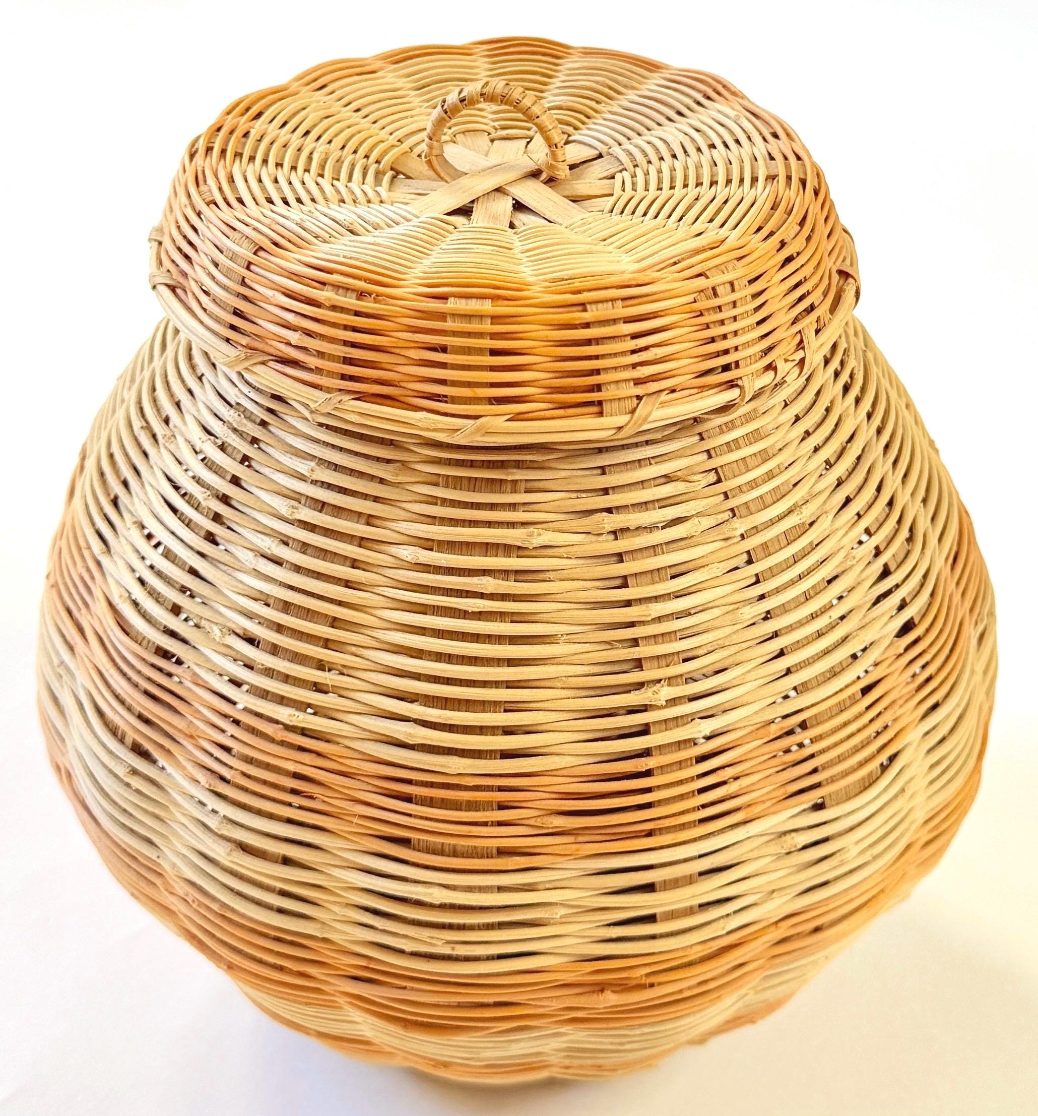 Signed Vintage Cherokee Basket with Lid Letha Cucumber Handwoven Honeysuckle