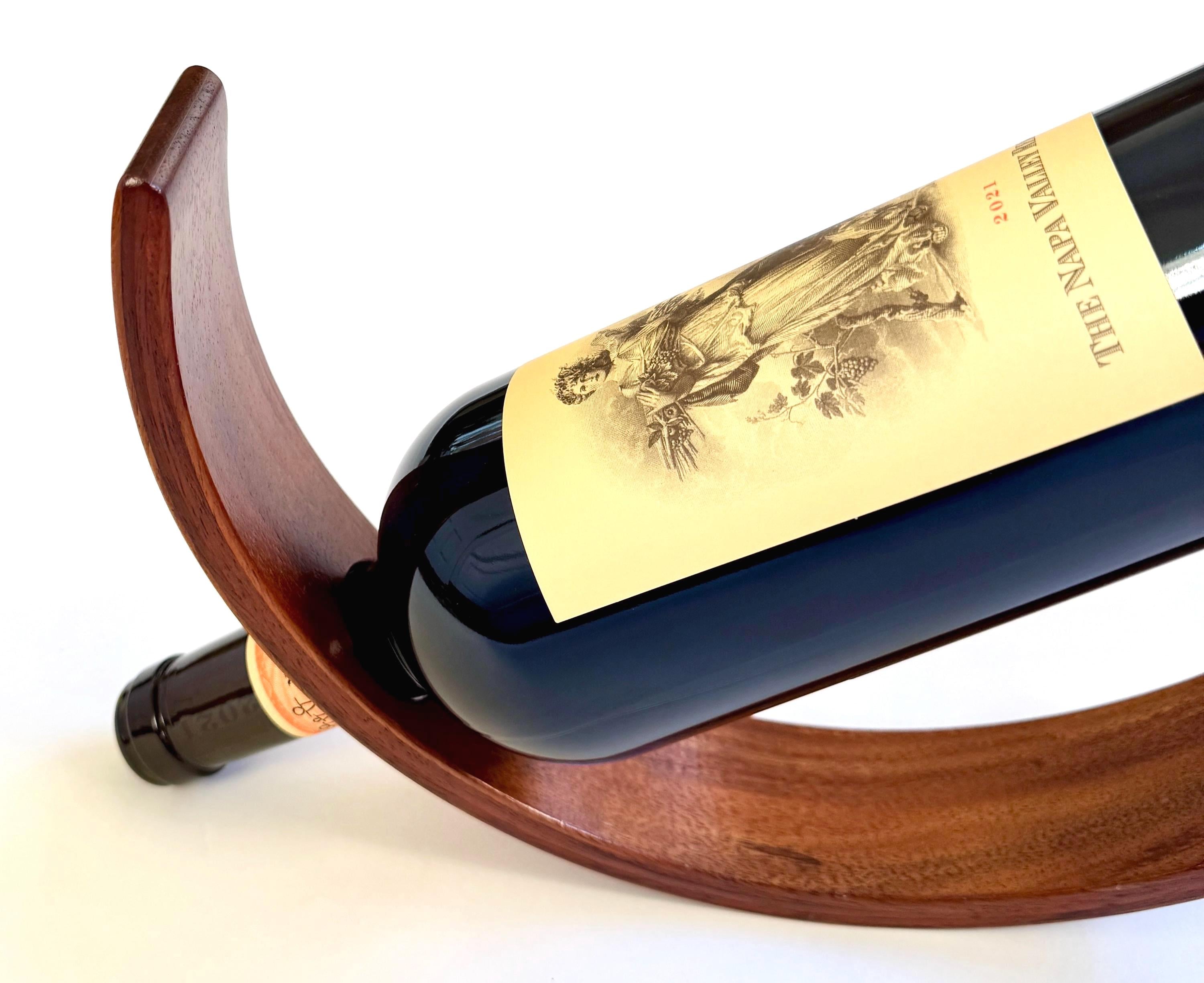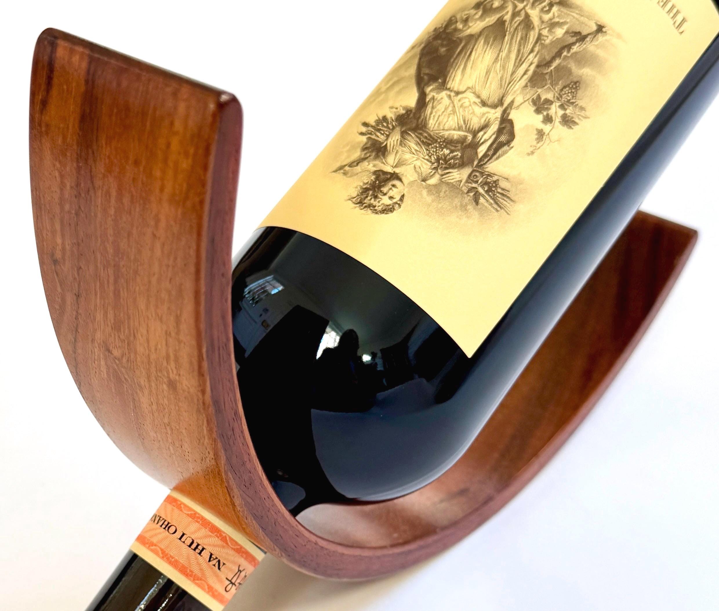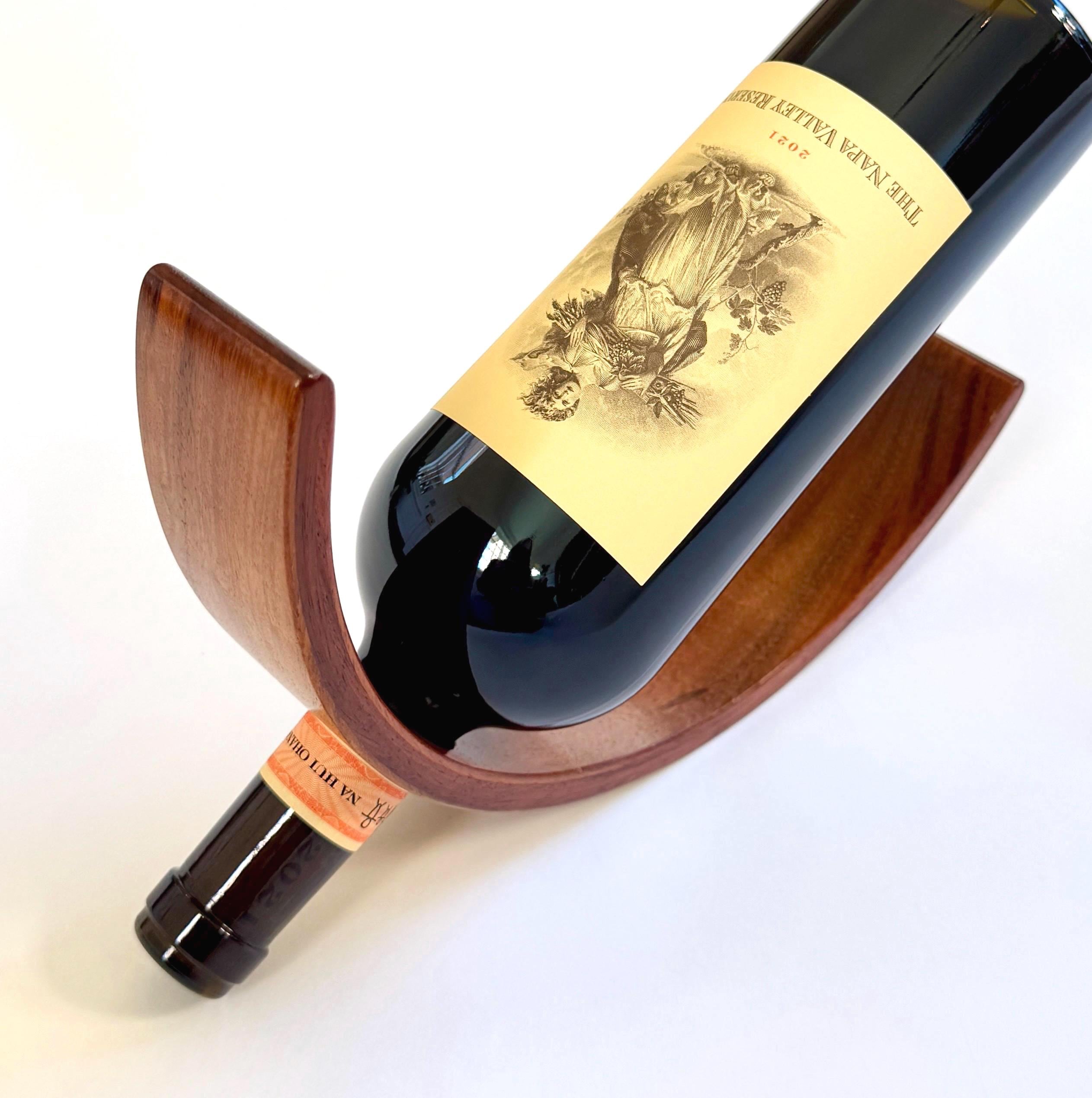 Curved Wood Wine Holder Vintage Sculptural Minimalist Smooth Semicircle Wine Bottle Stand