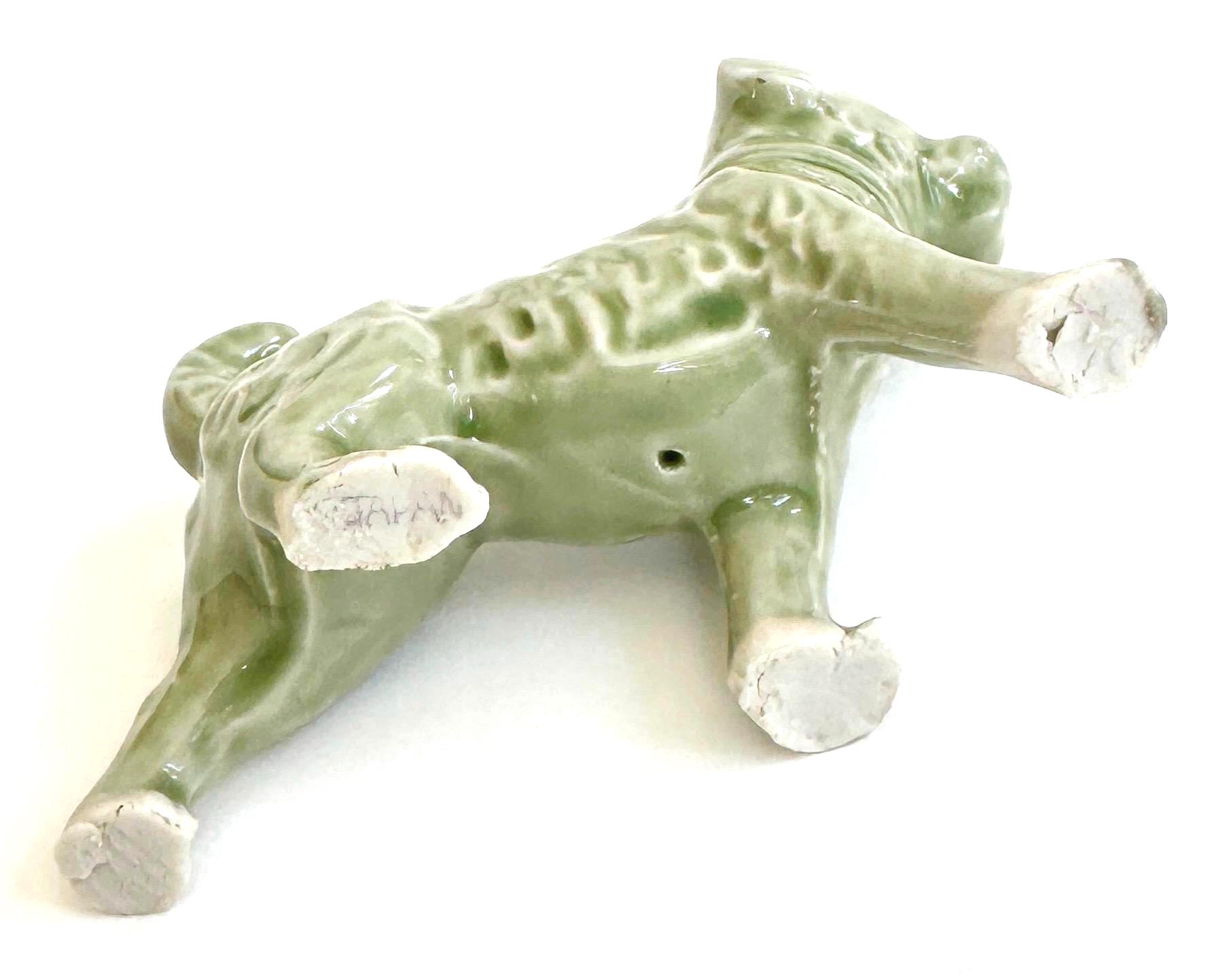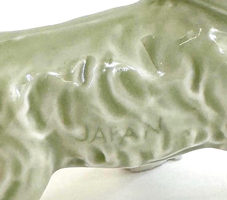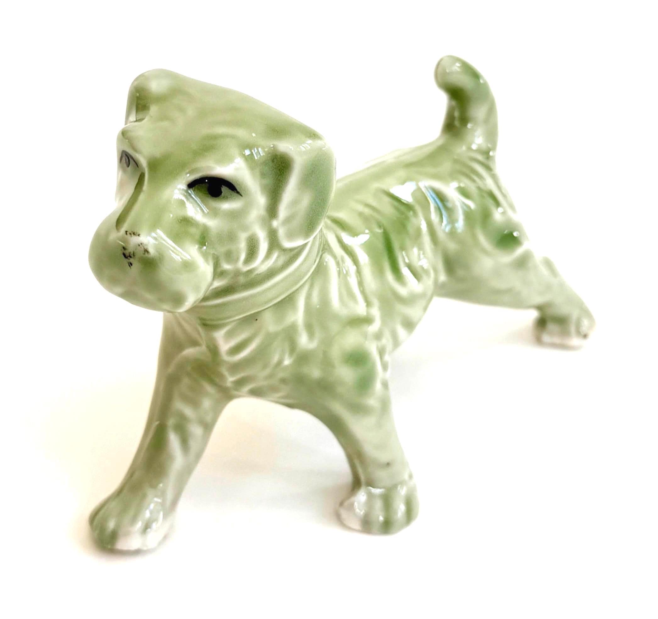 Green Celadon Dog Figurine Vintage Mid Century Glazed Ceramic Retriever Hunting Dog Made in Japan