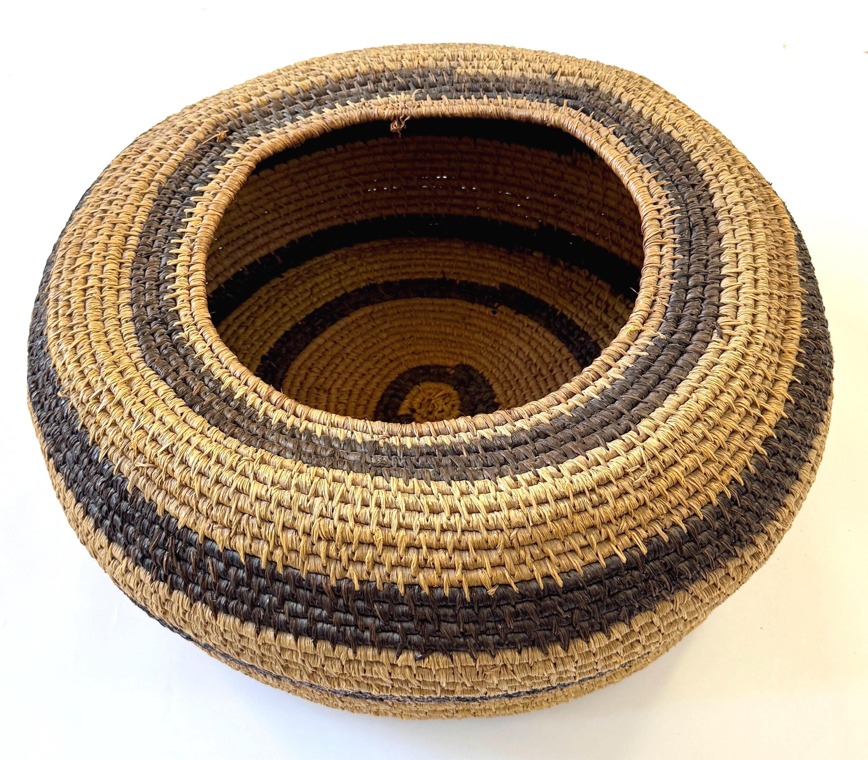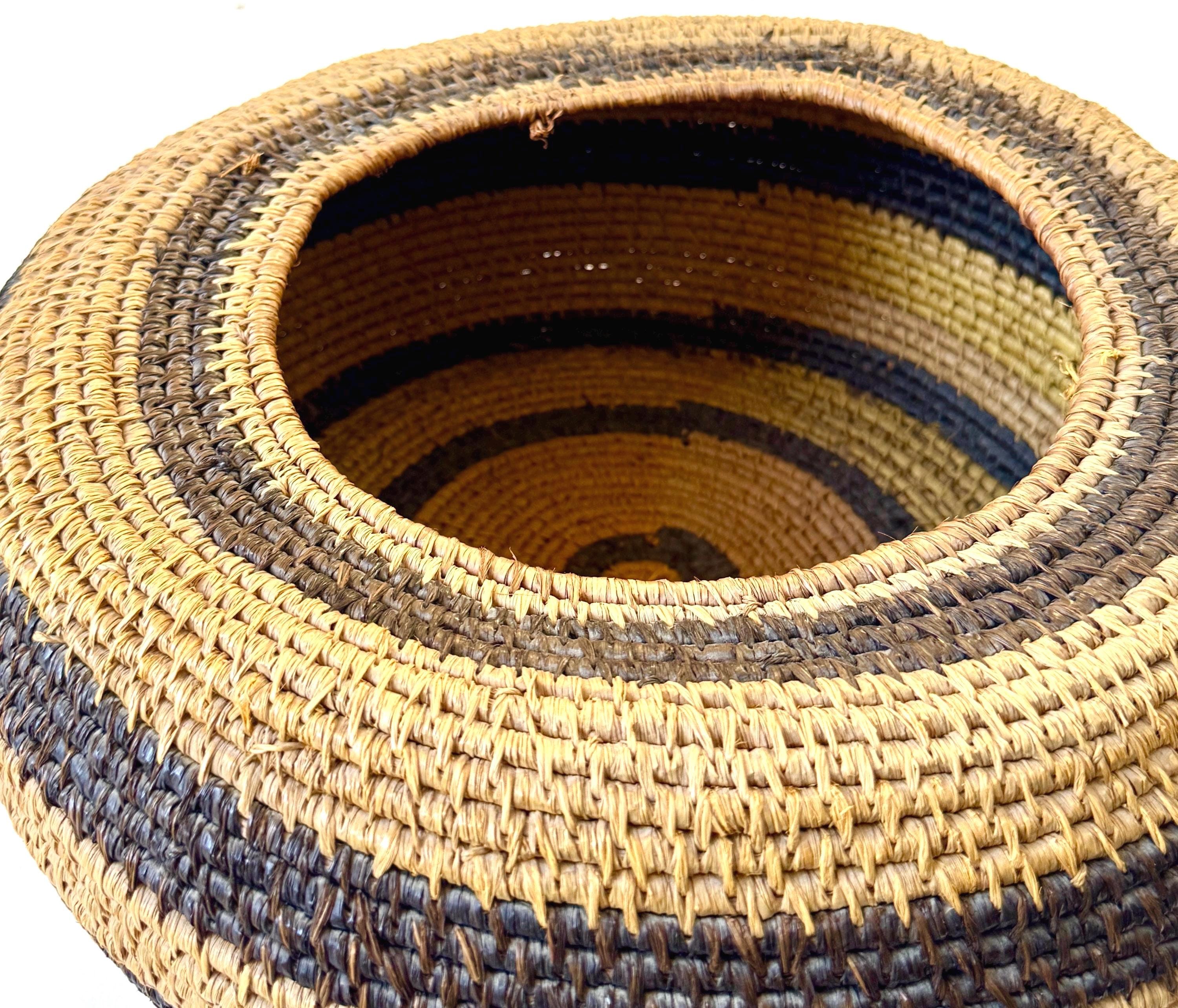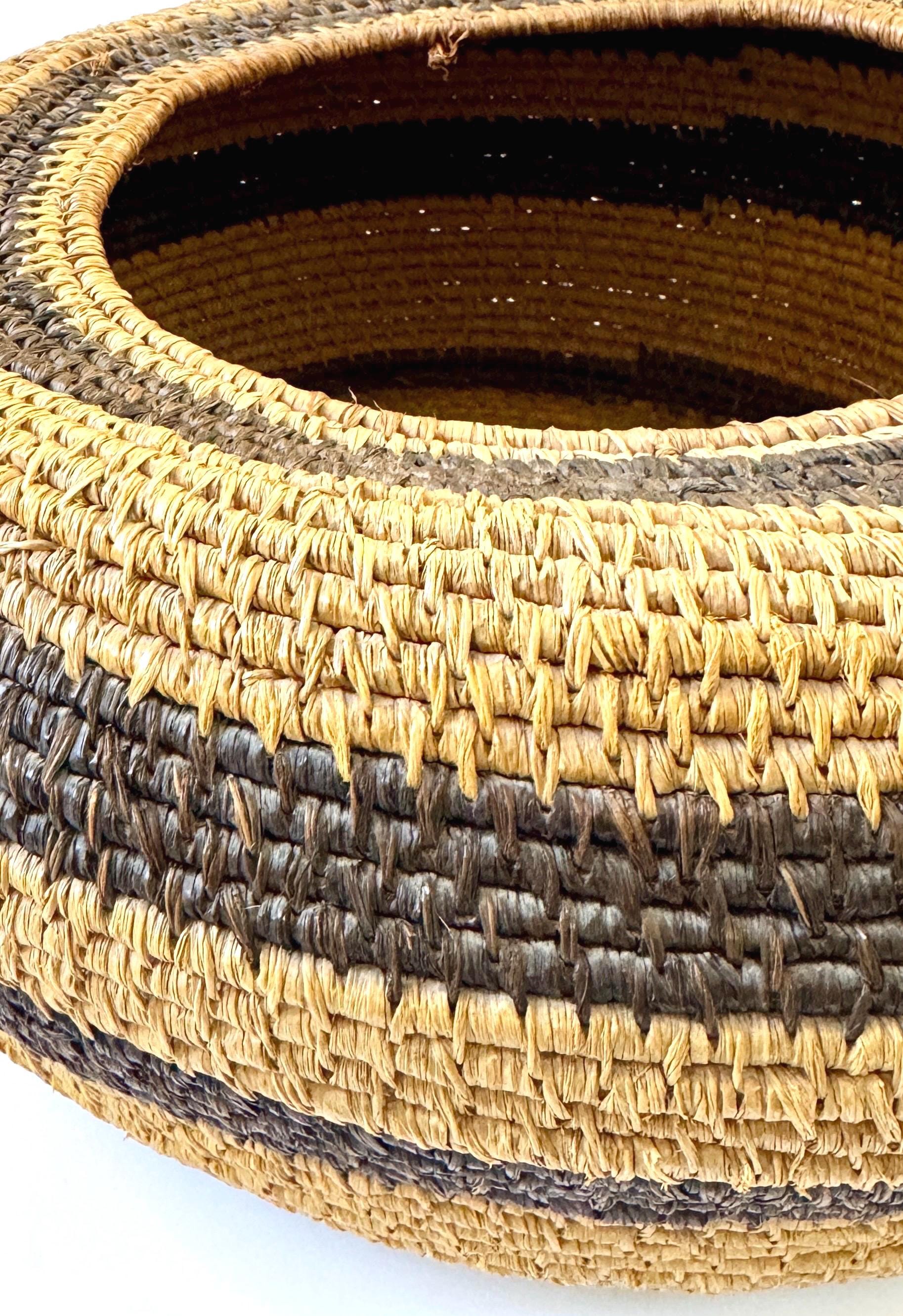Large well-crafted vintage artisan handwoven basket bowl