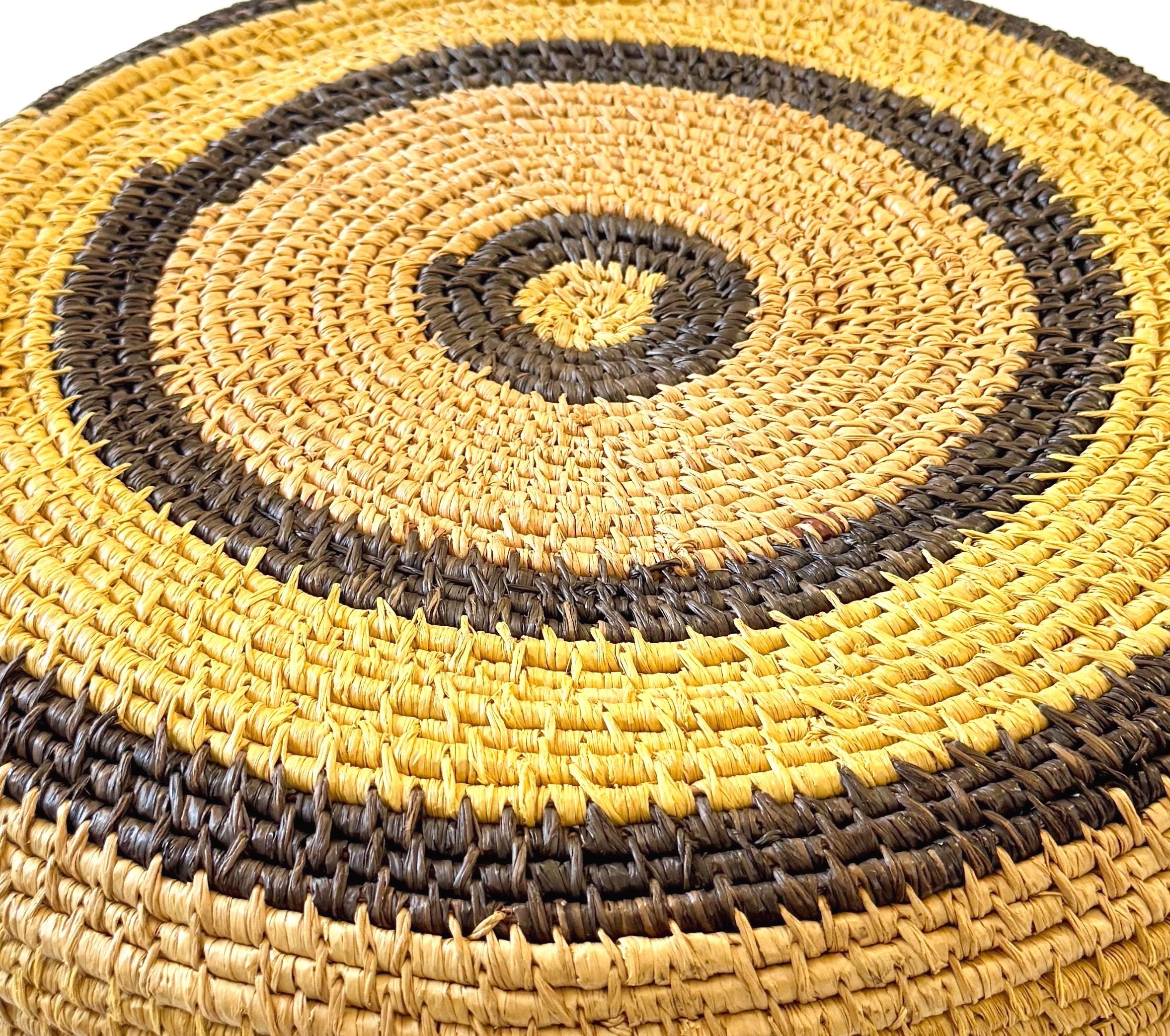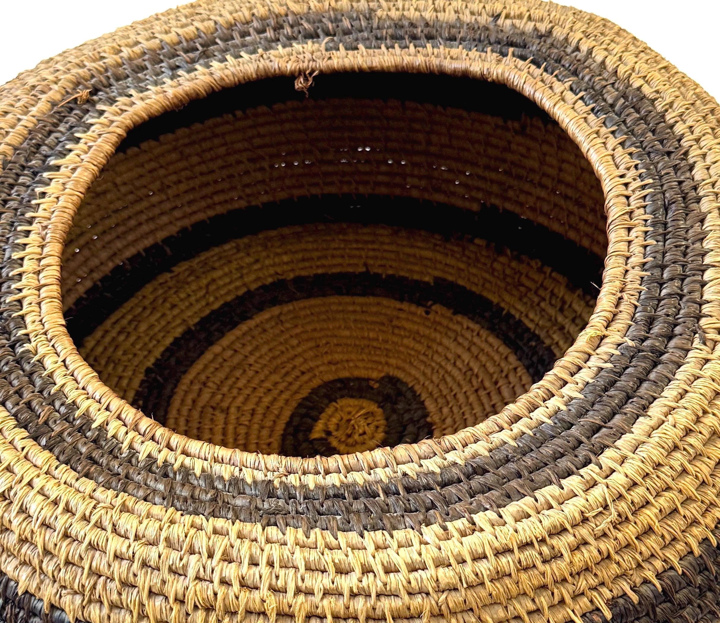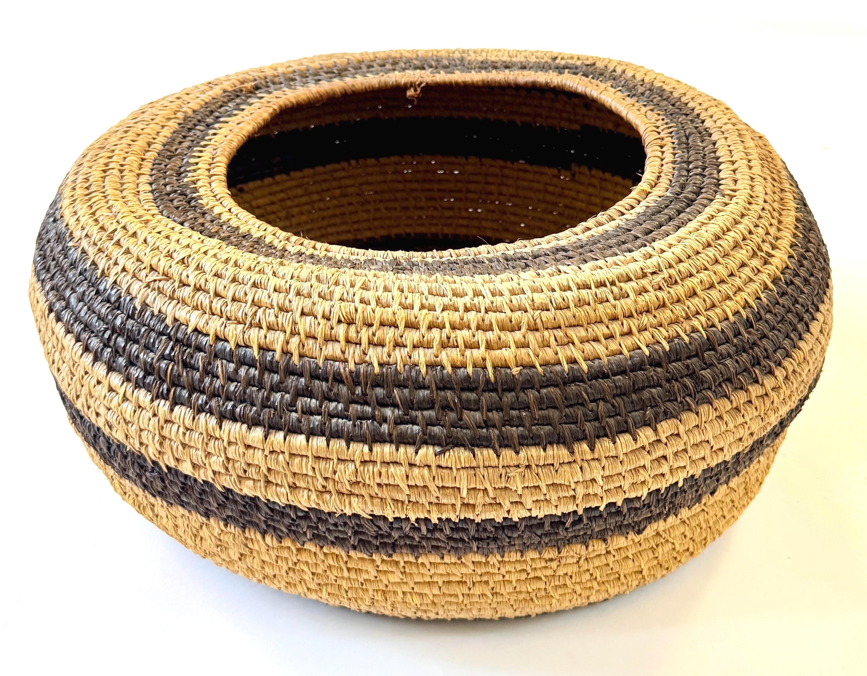 Large well-crafted vintage artisan handwoven basket bowl