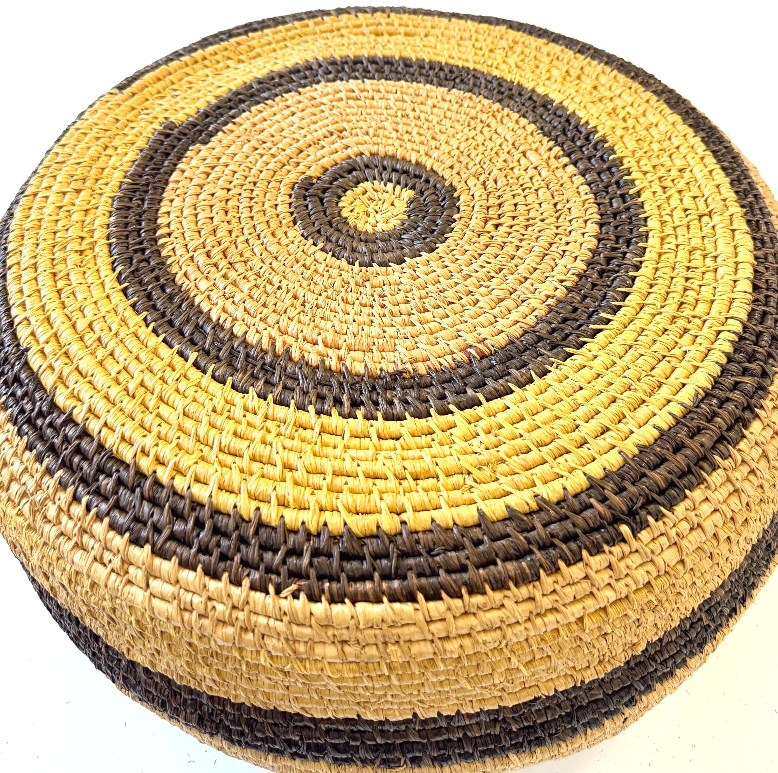 Large 17" Round Basket Bowl Vintage Artisan Handwoven Sturdy Basket Neutral Earth Tone
