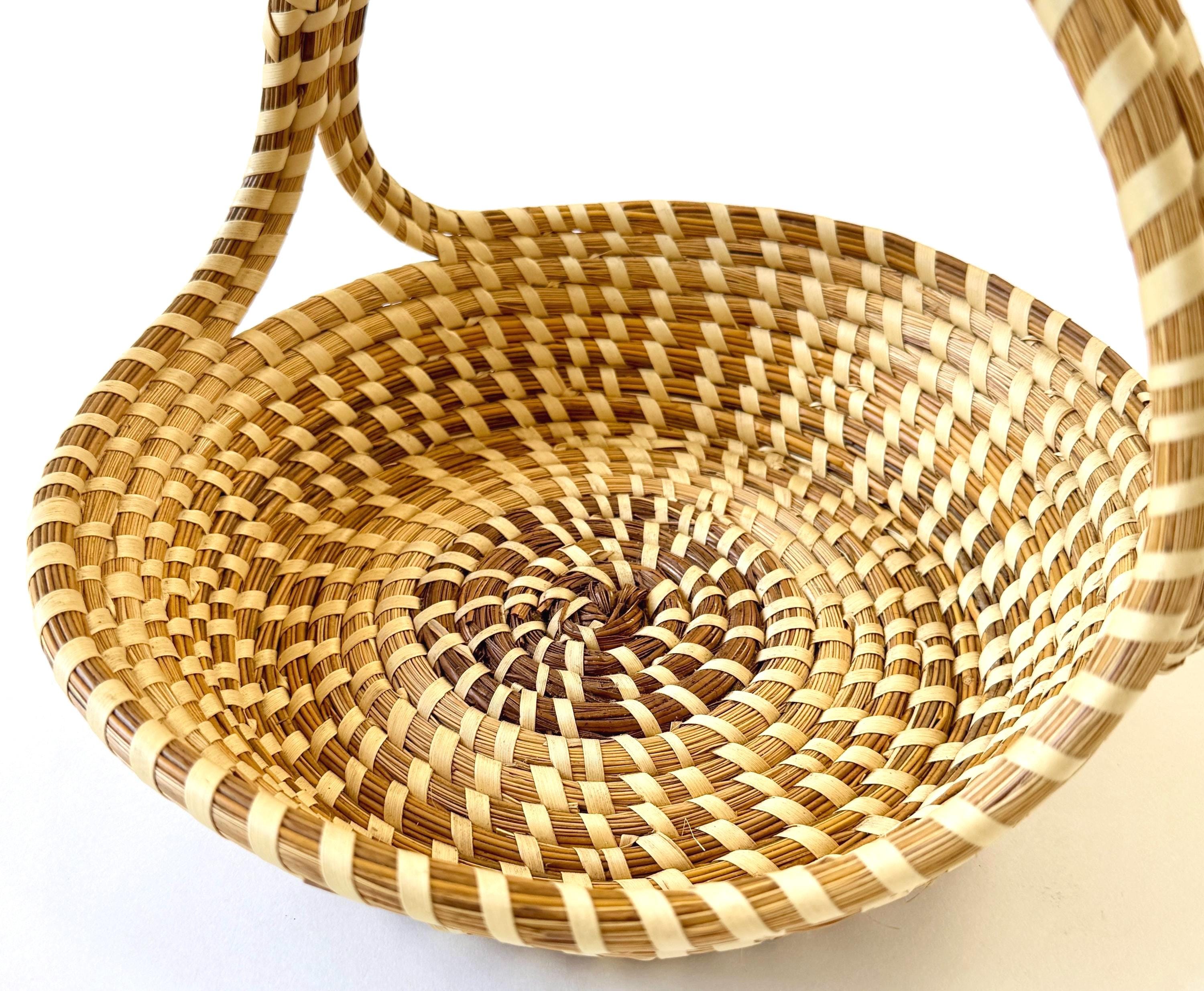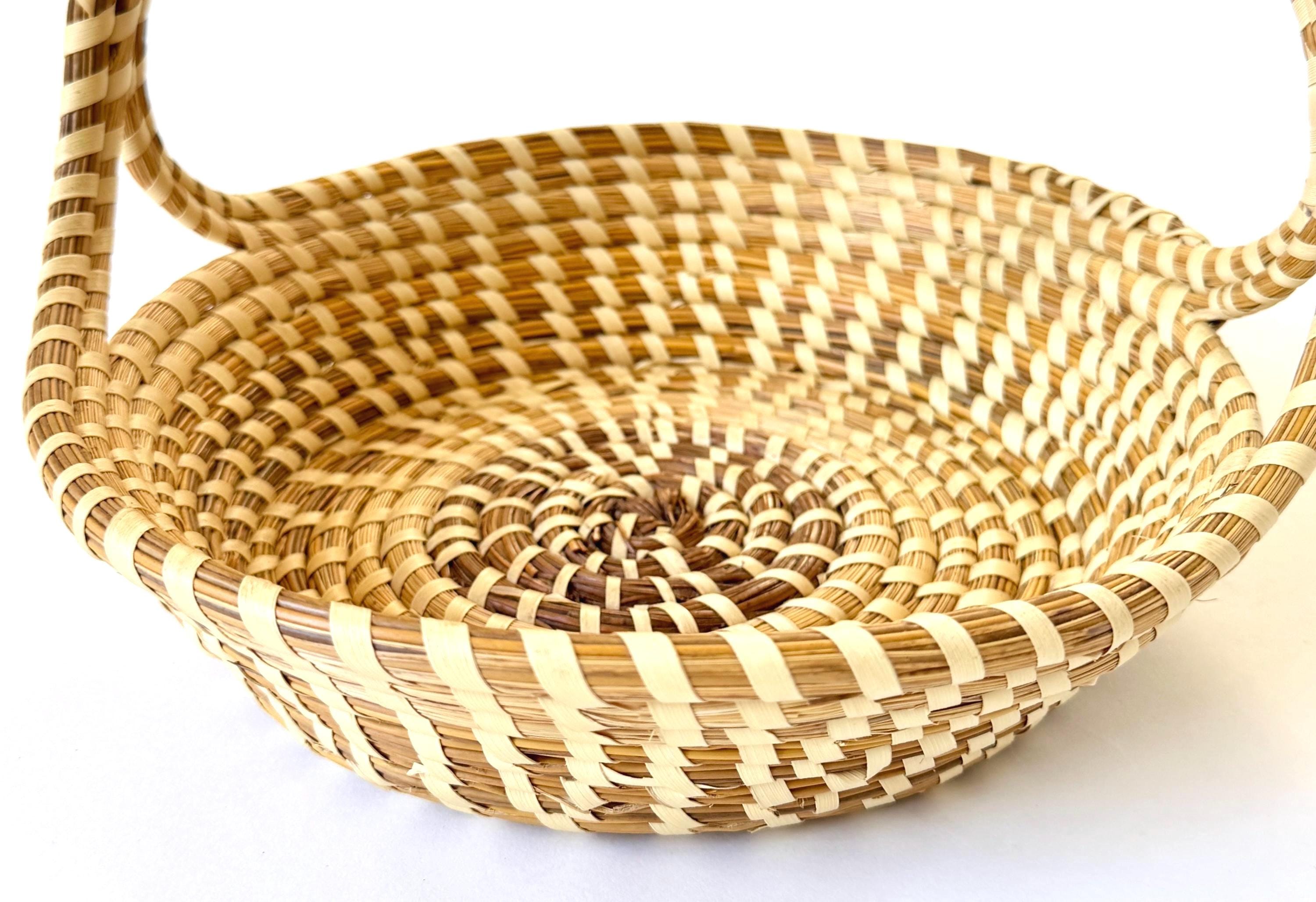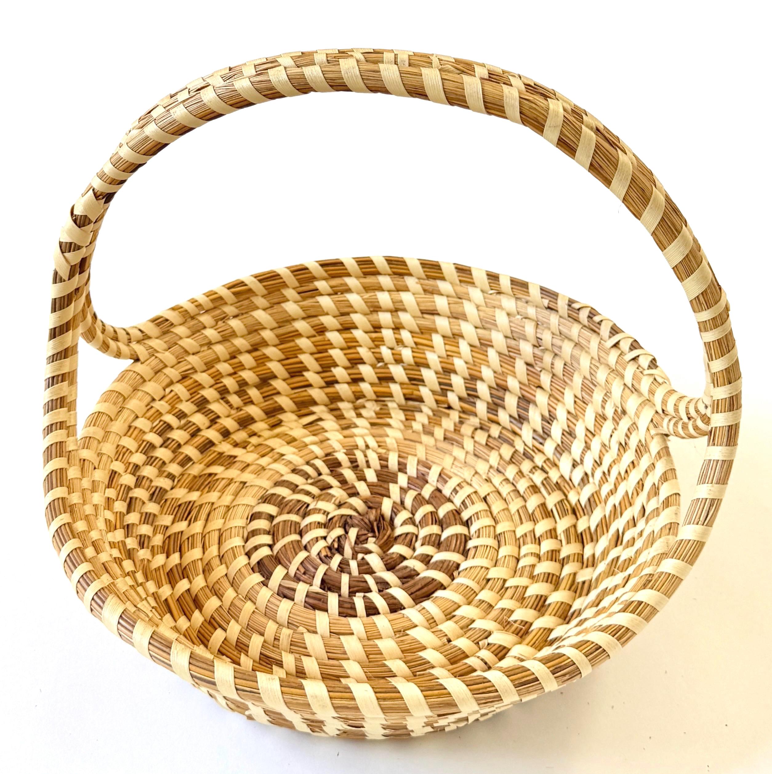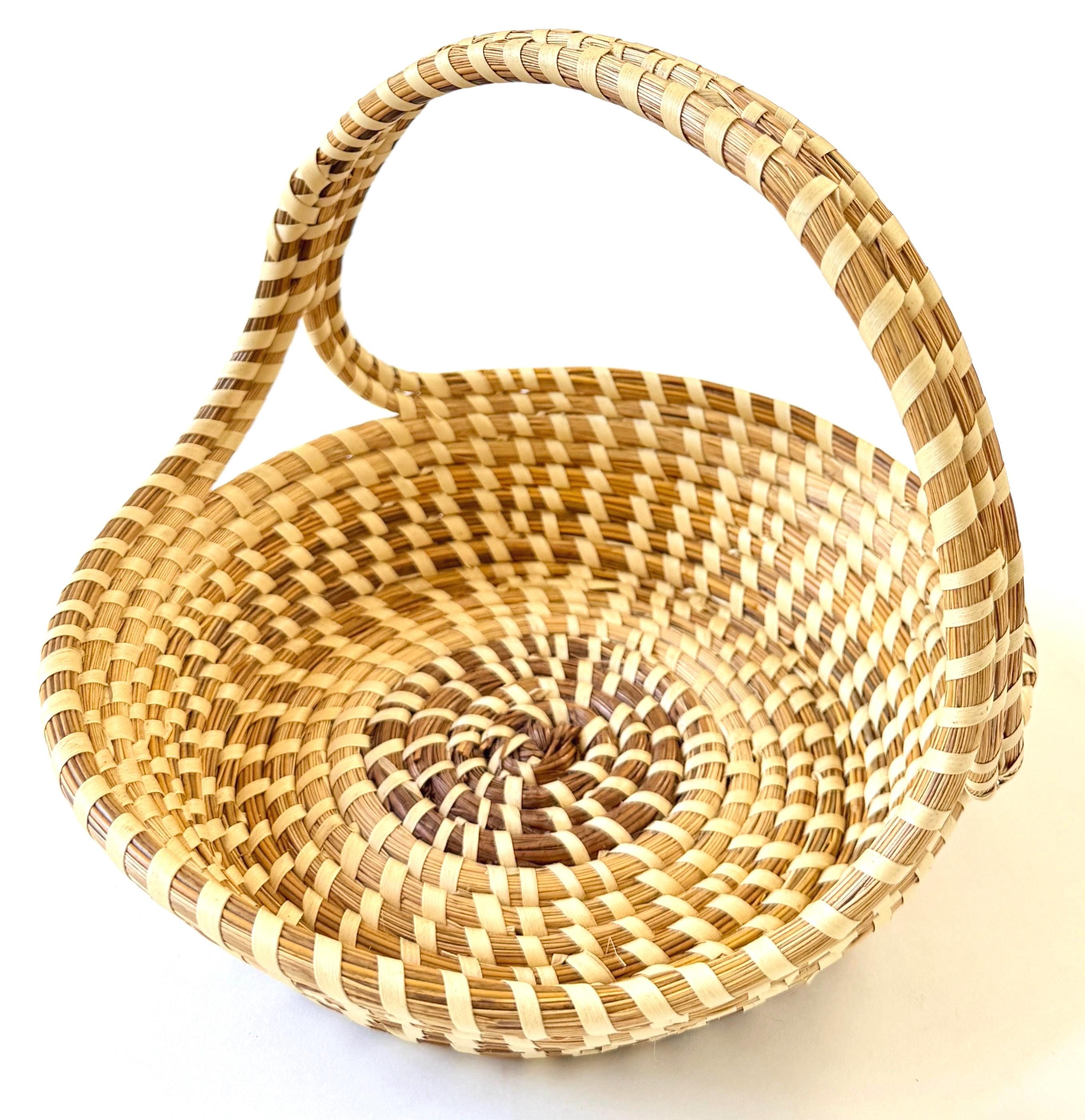 Vintage Charleston Sweetgrass Basket with Handle Coastal American Gullah Folk Art