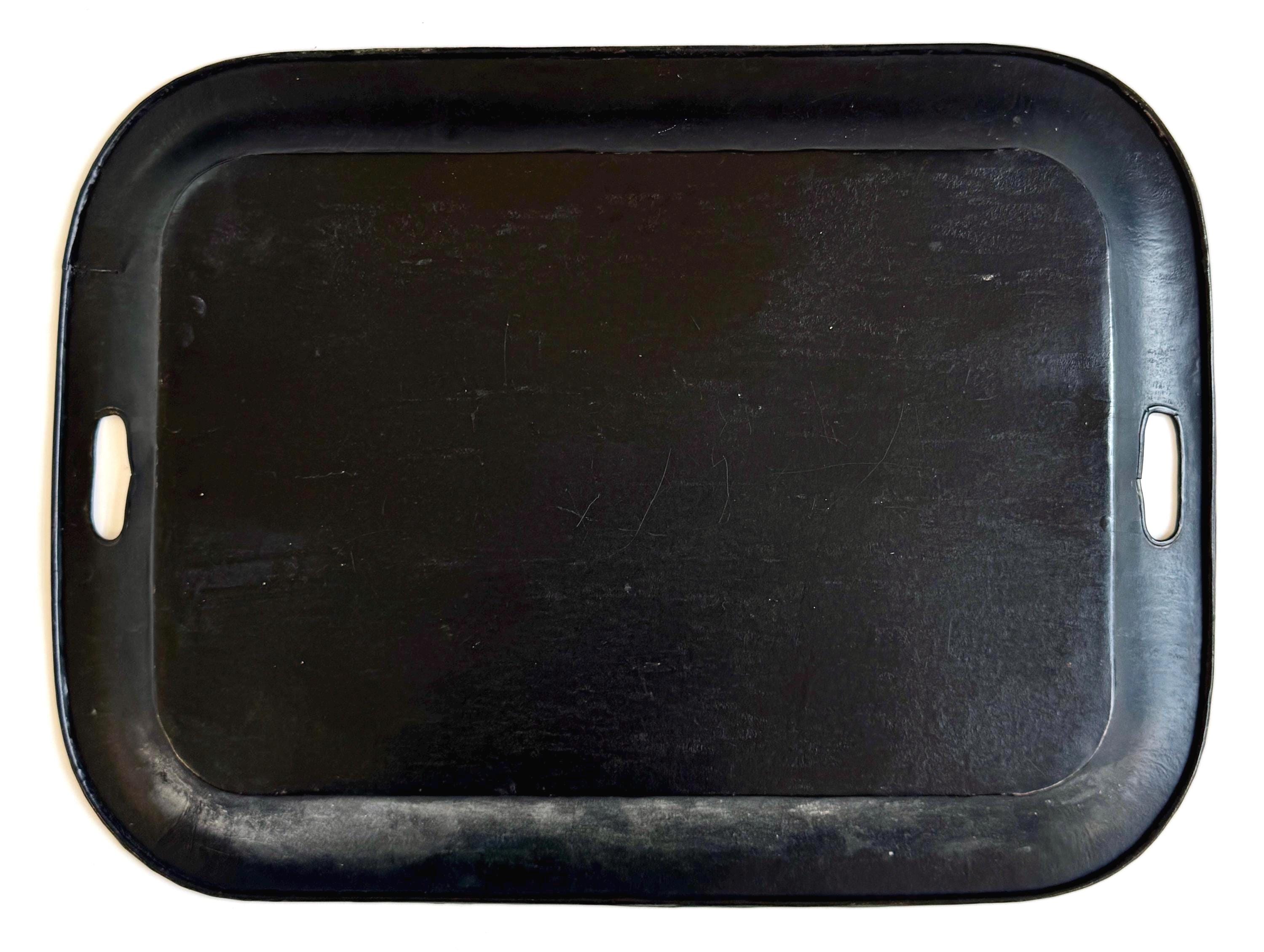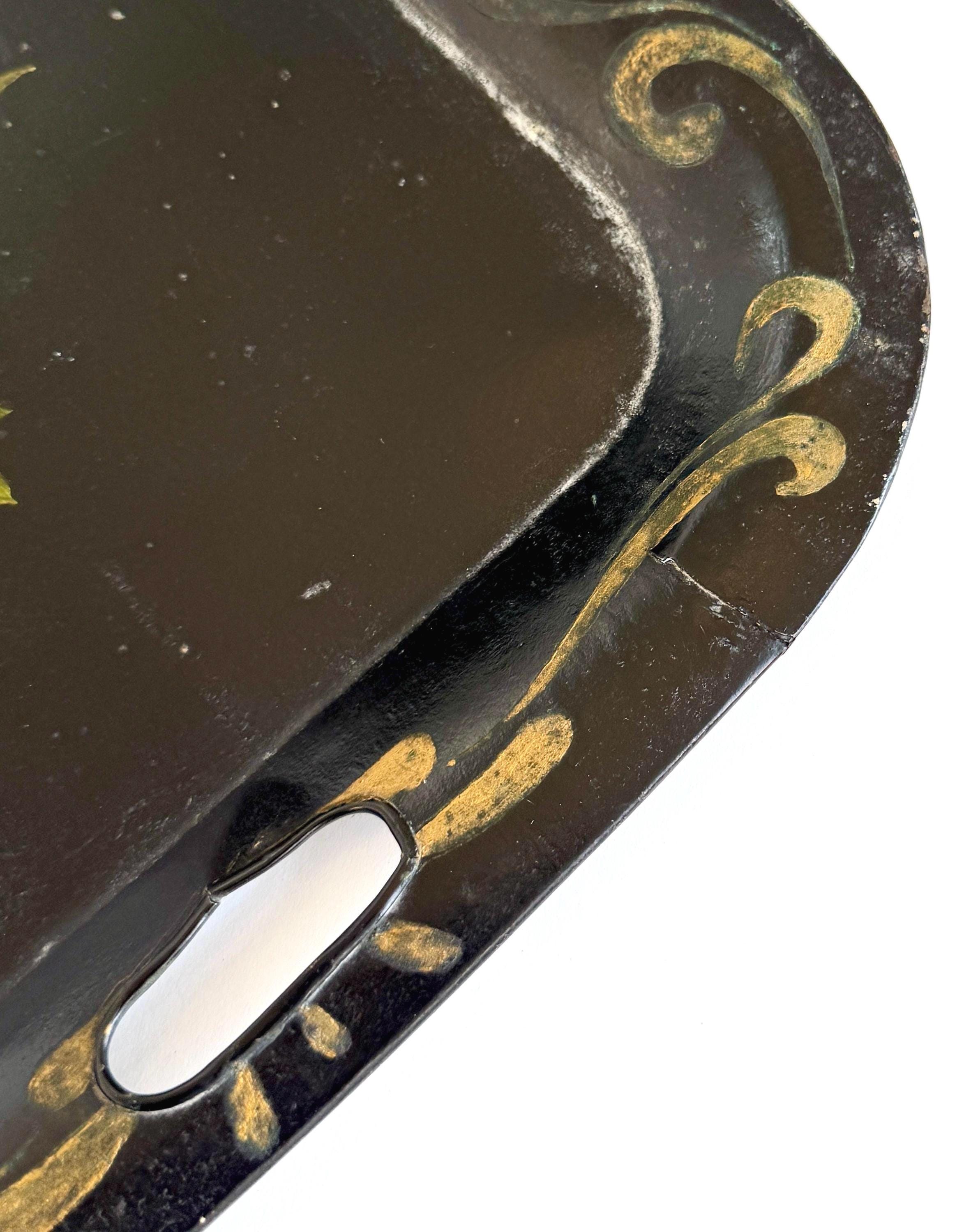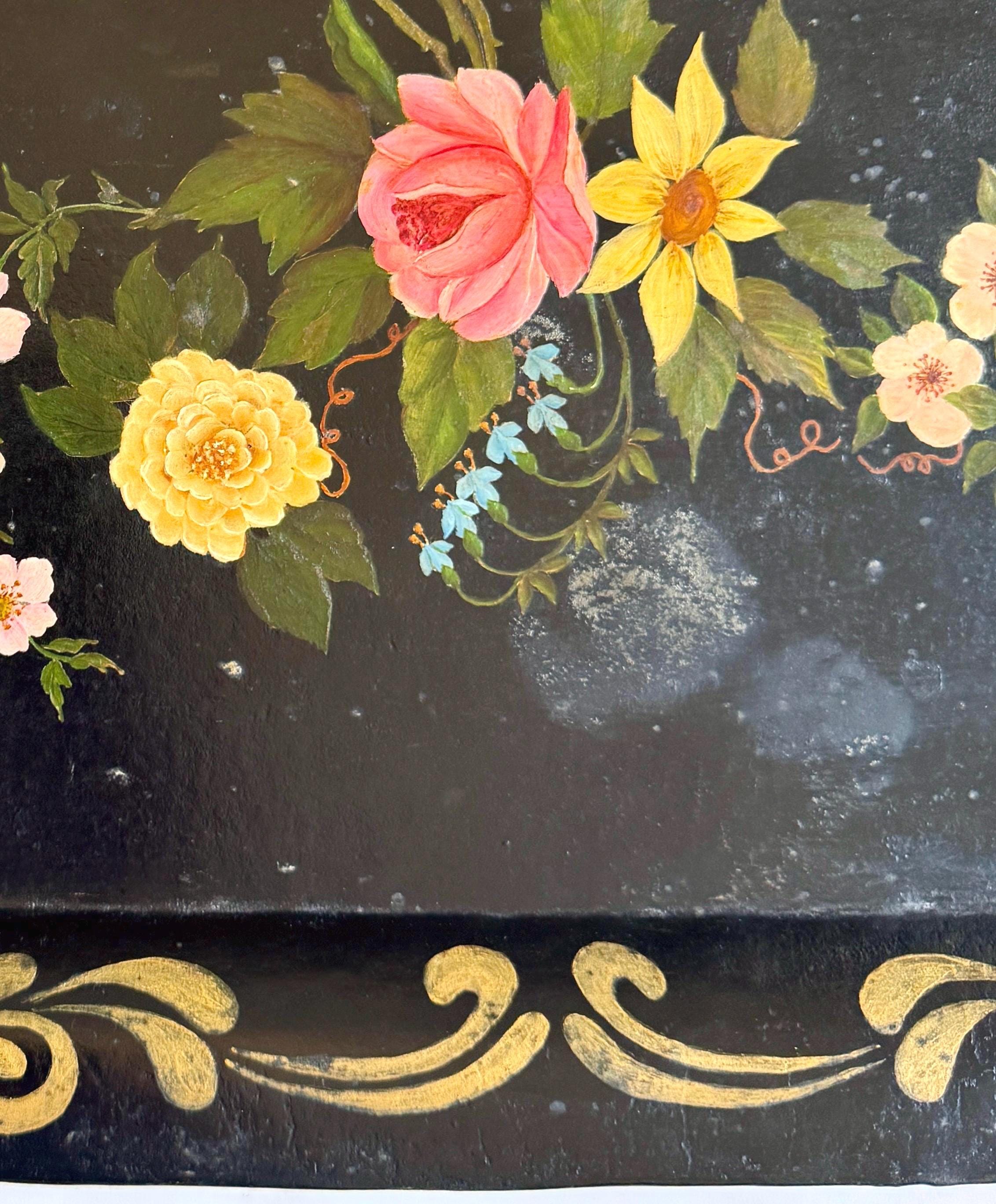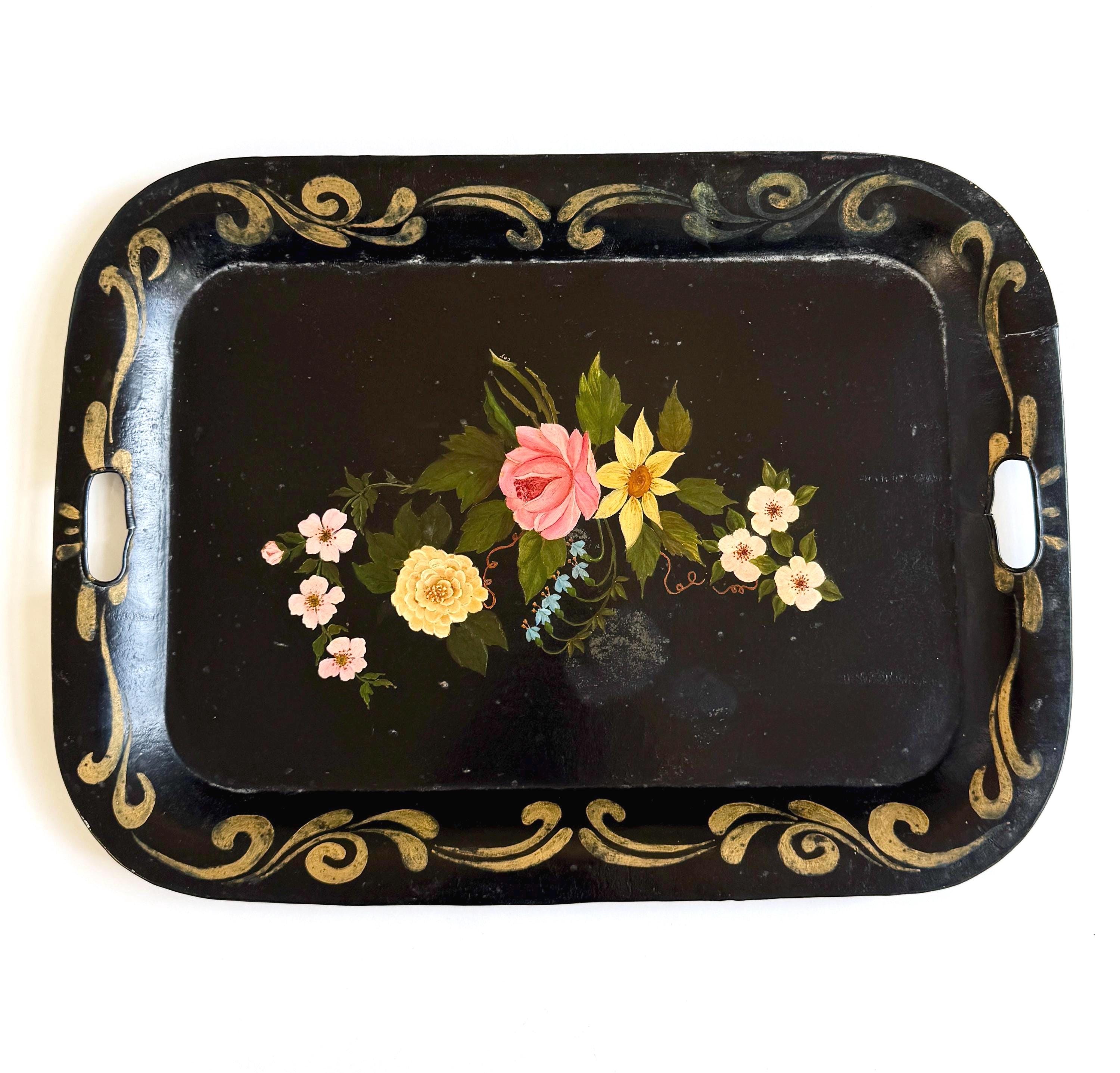 Large Hand Painted Floral Decorative Serving Tray Black Metal Rectangle French Farmhouse Cottage Core