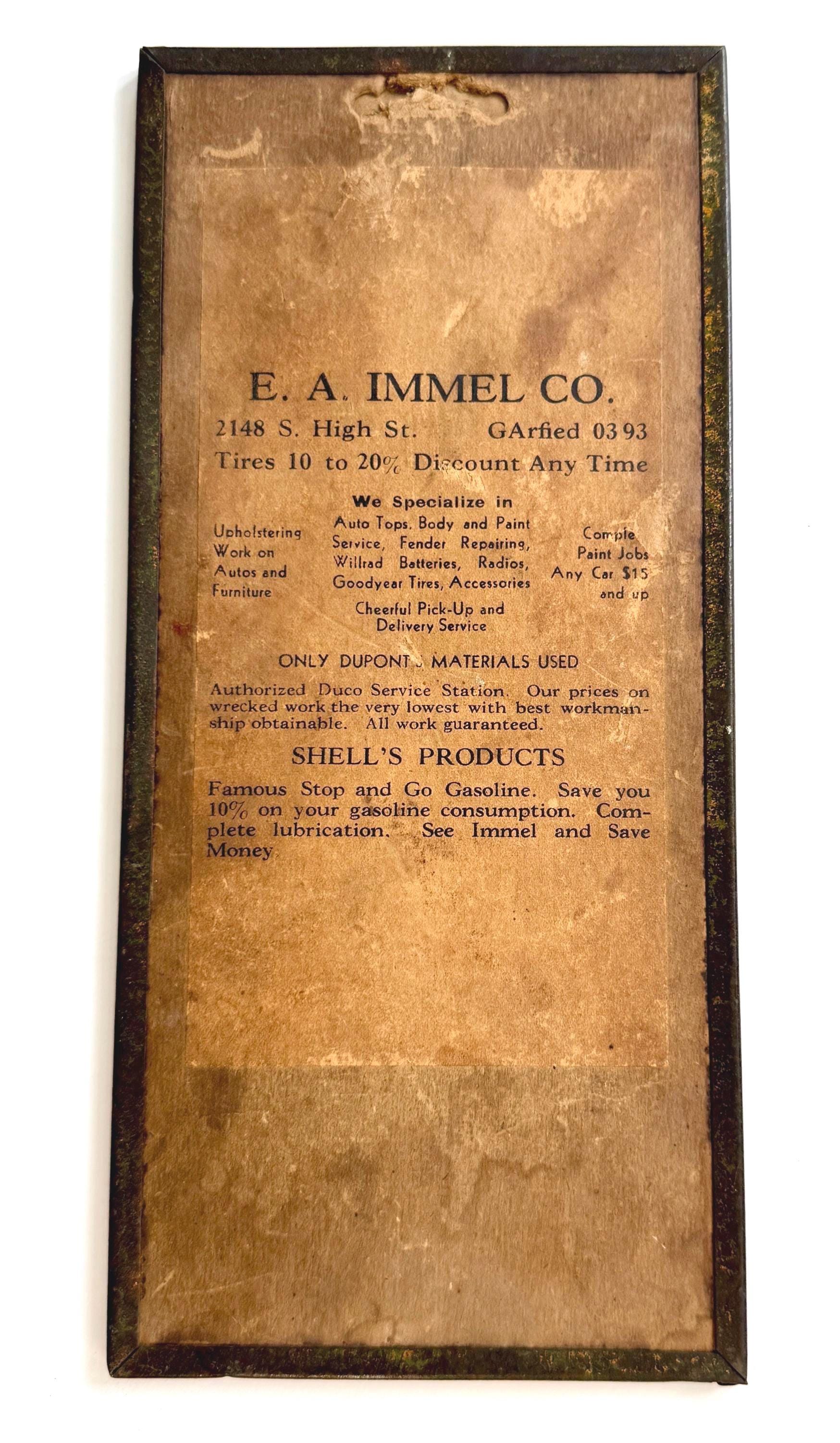 Circa 1930's/40's and likely used as an advertising piece for E.A. Immel Co.