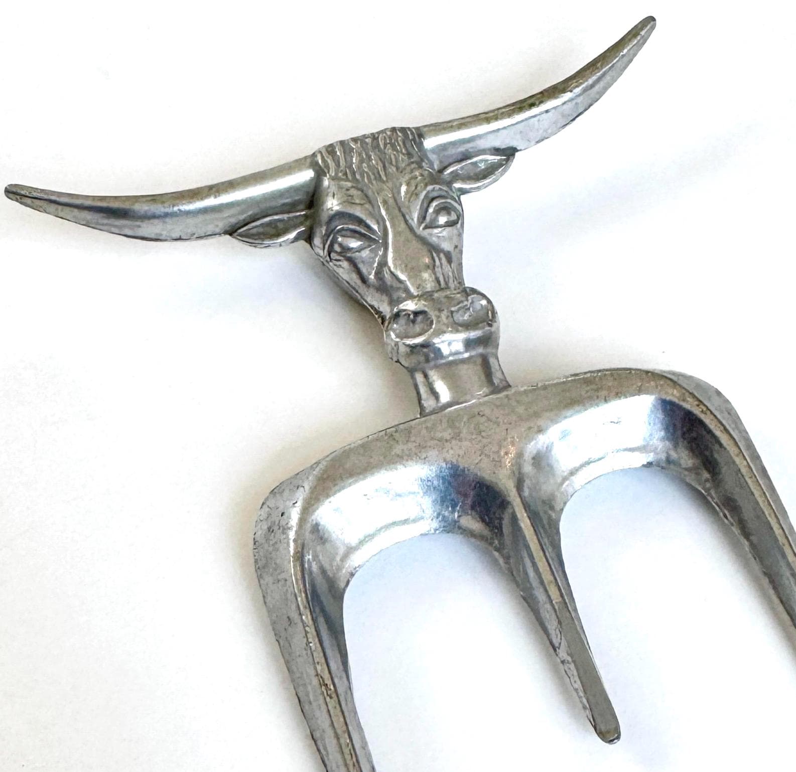 Vintage aluminum longhorn steerhead meat fork