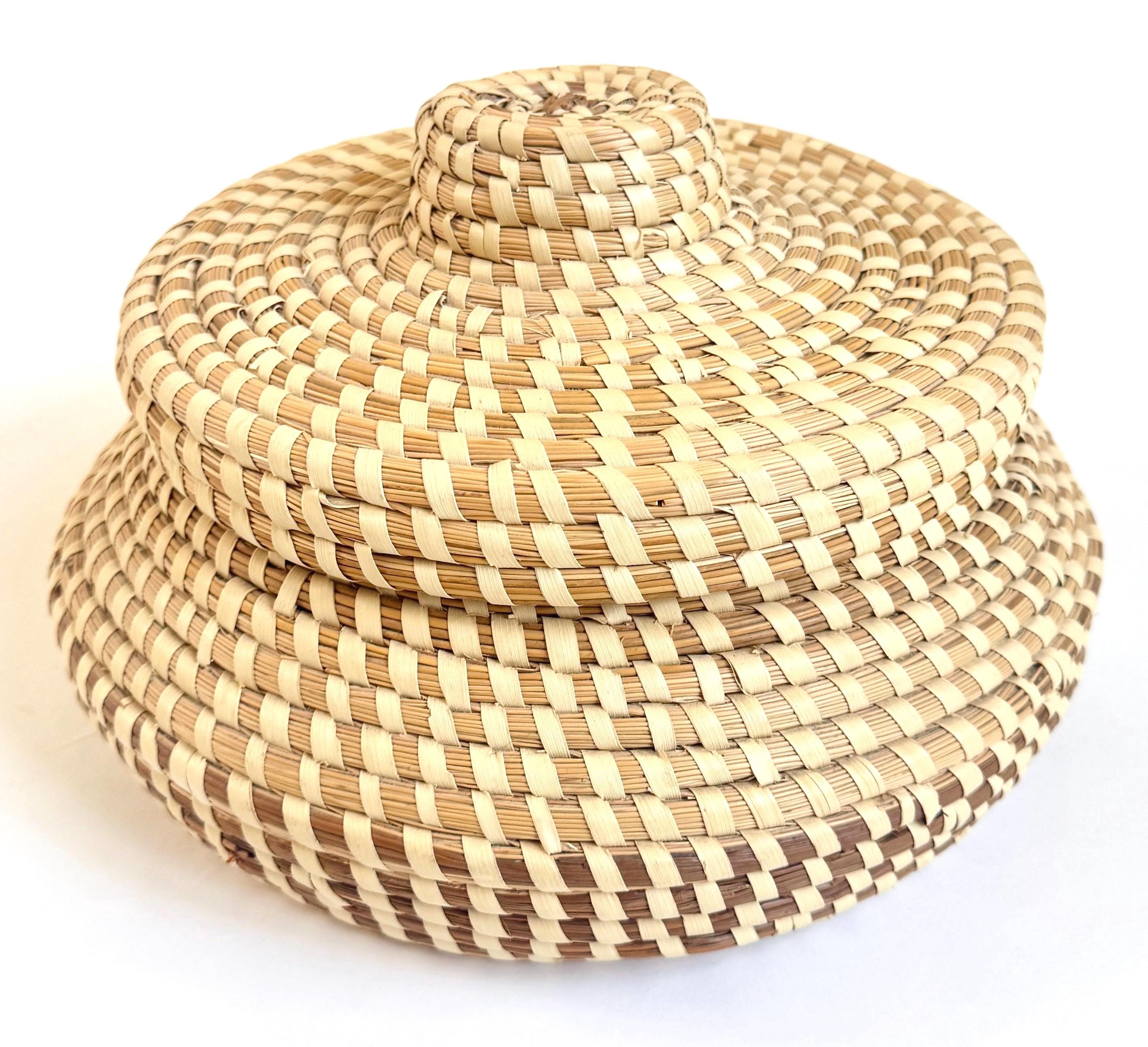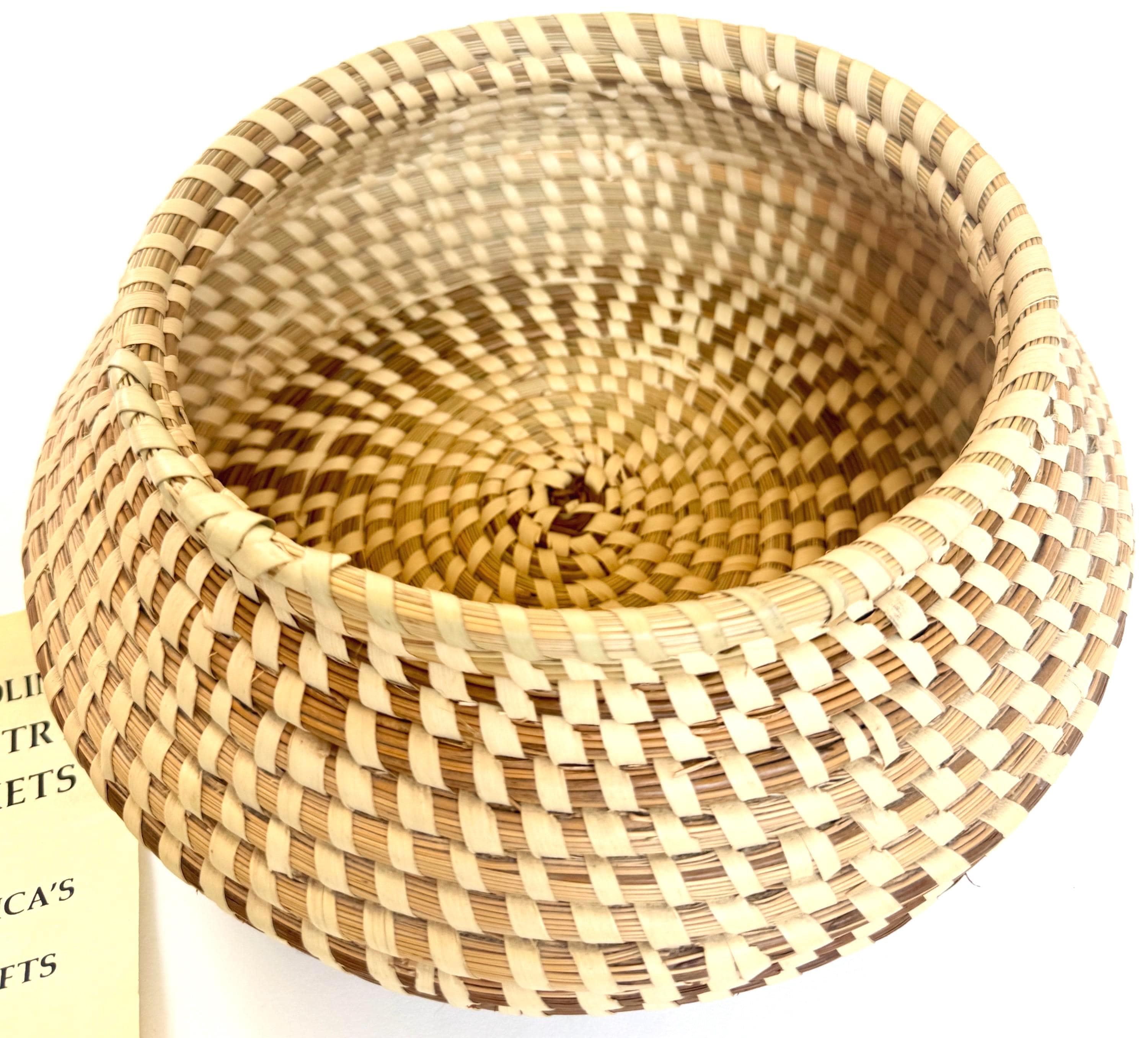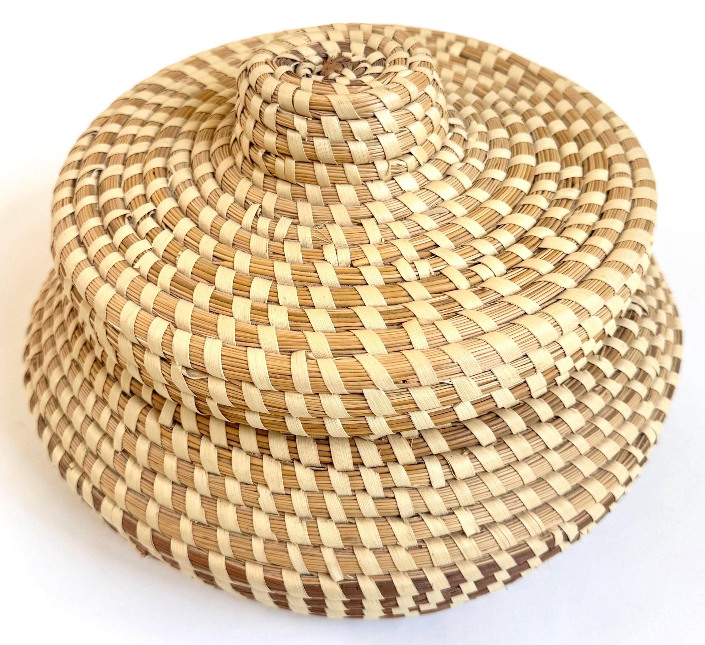 Finely woven vintage Charleston Gullah lidded basket with original paperwork